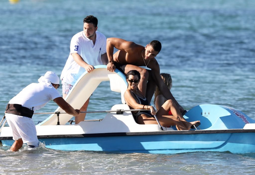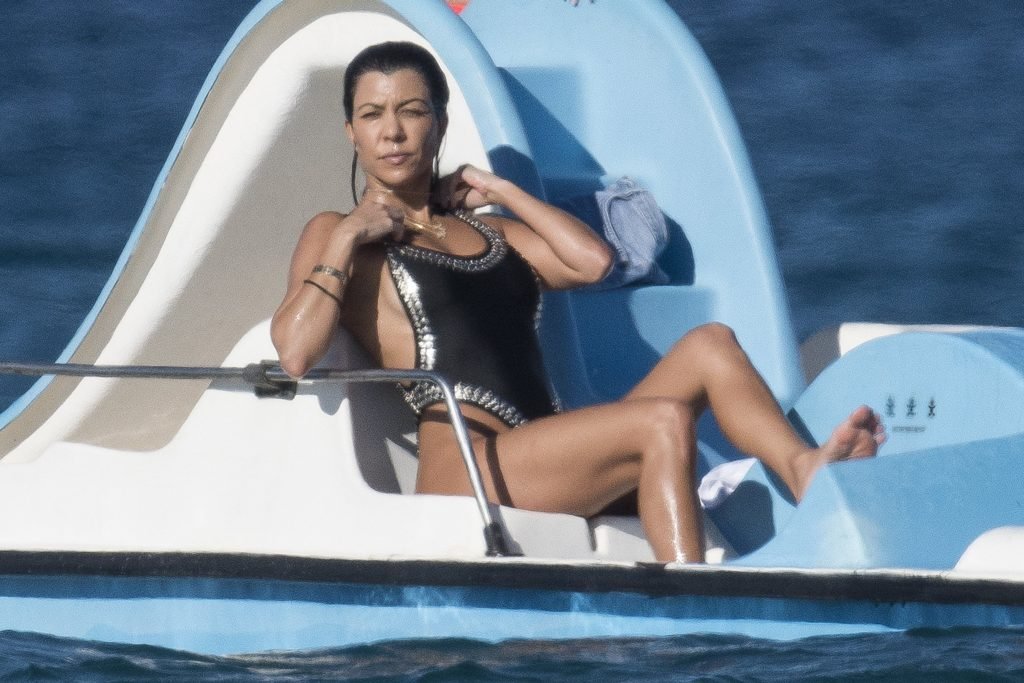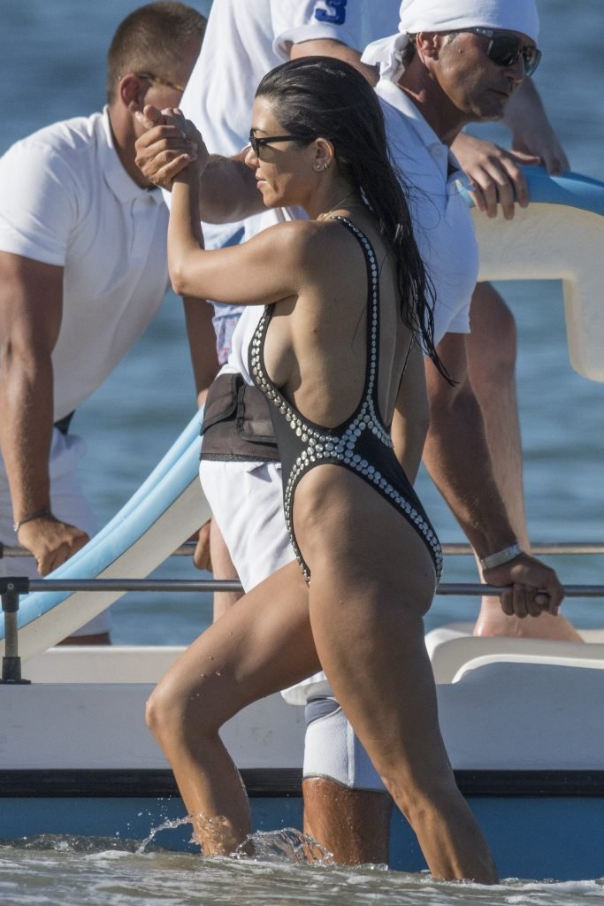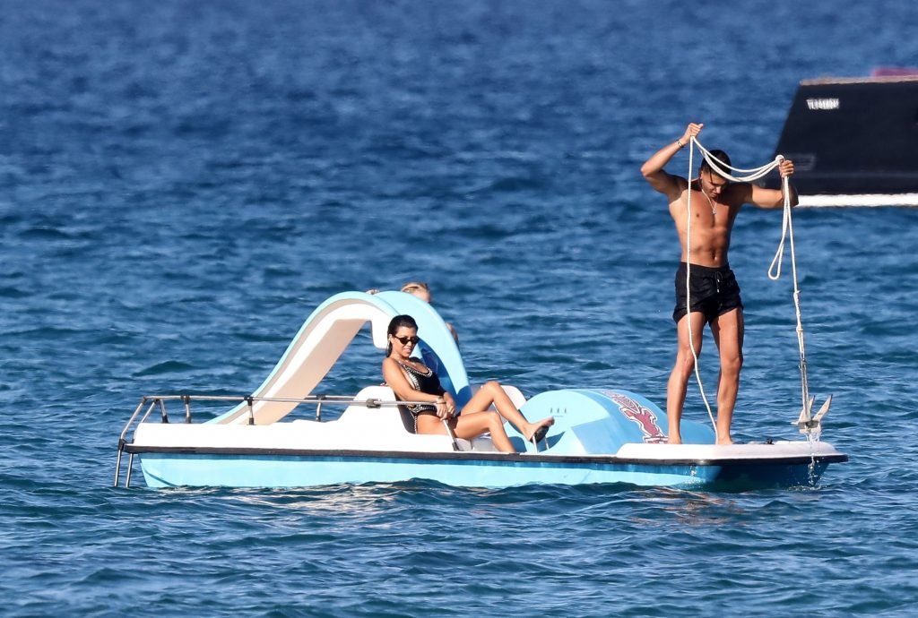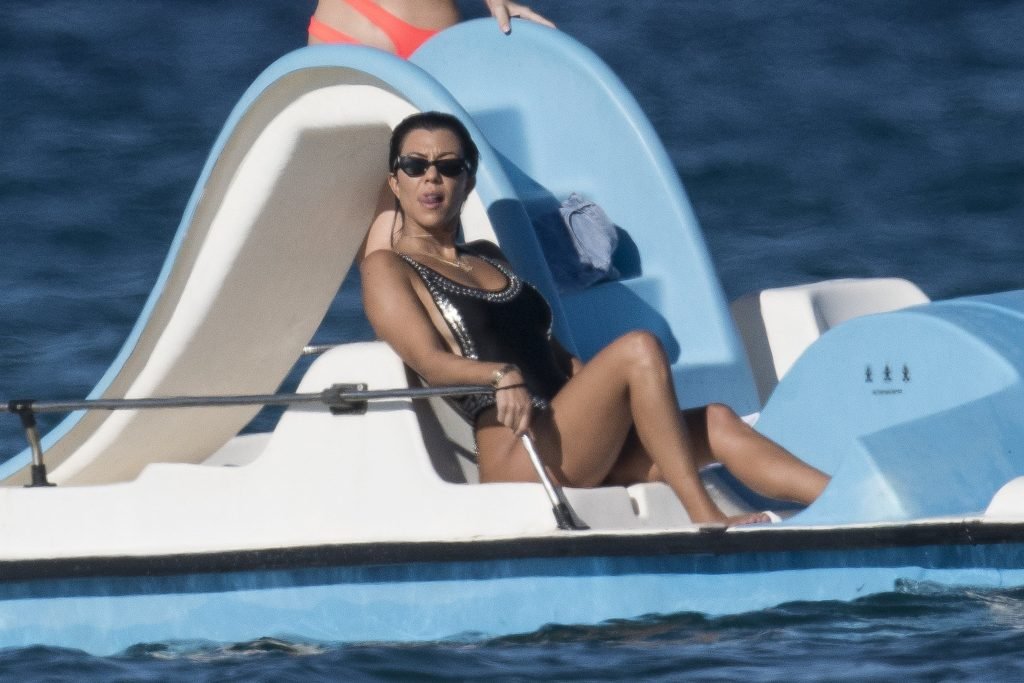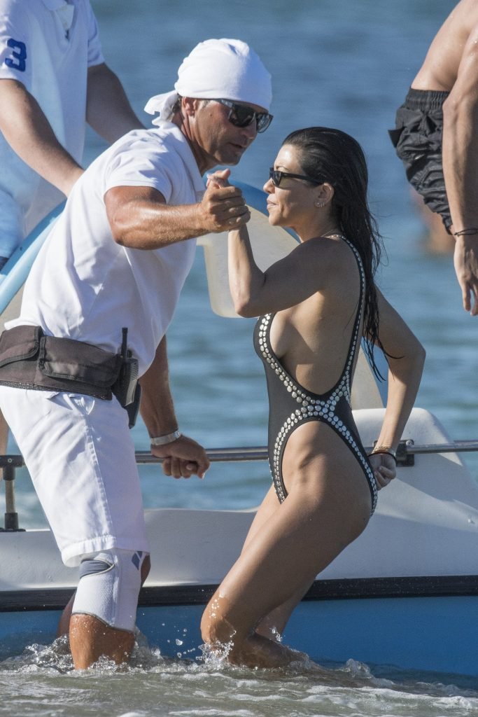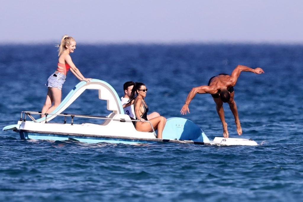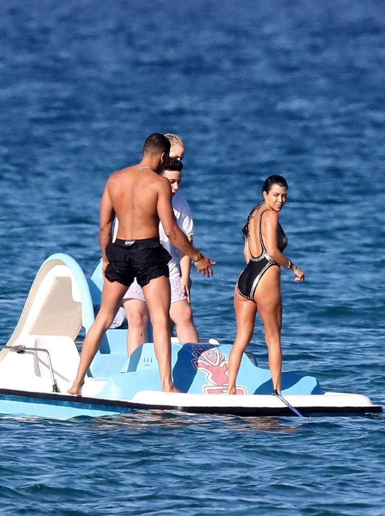 Kourtney Kardashian profite d’une journée sur un catamaran avec des amis à Saint-Tropez, France, 07/03/2017. Kourtney Mary Kardashian est une star américaine de la télévision, mannequin, socialite, femme d’affaires Âge – 38.