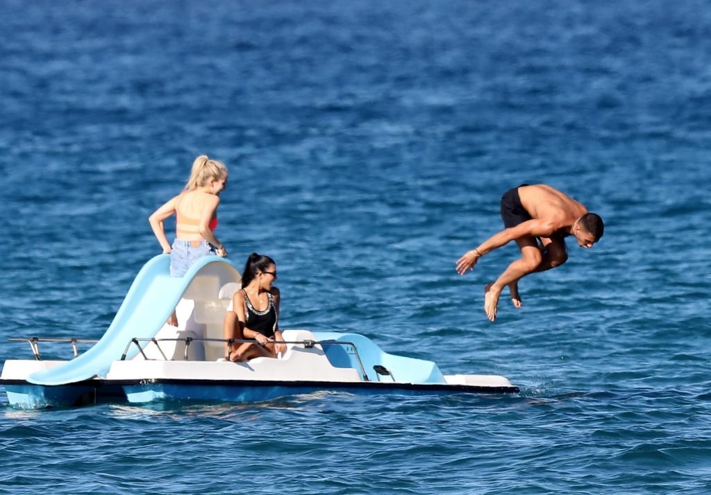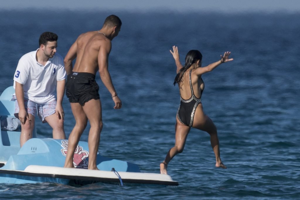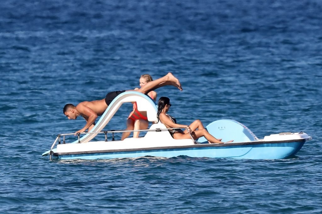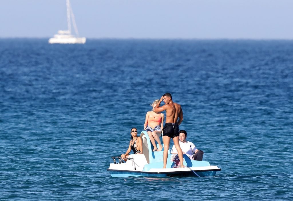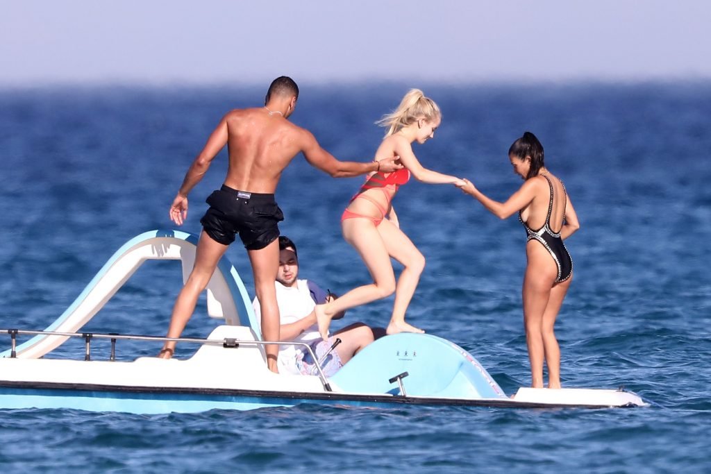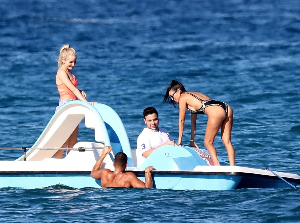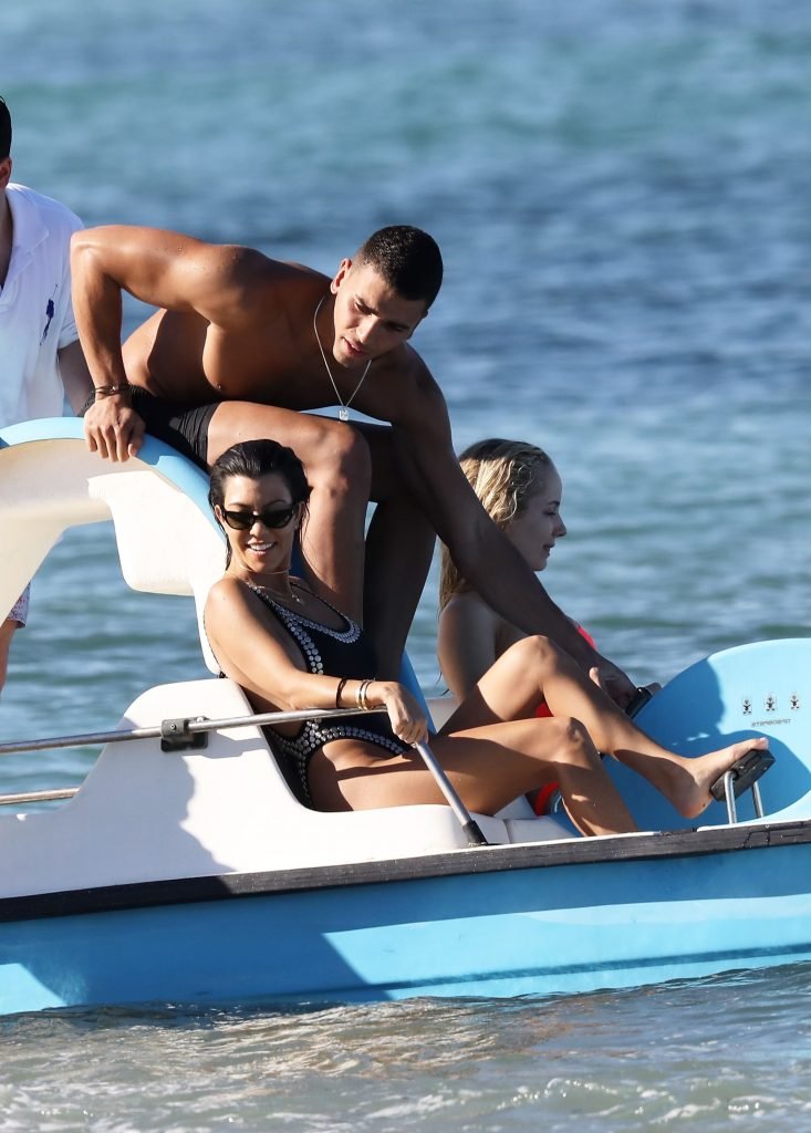 Kourtney Kardashian profite d’une journée sur un catamaran avec des amis à Saint-Tropez, France, 07/03/2017. Kourtney Mary Kardashian est une star américaine de la télévision, mannequin, socialite, femme d’affaires Âge – 38.