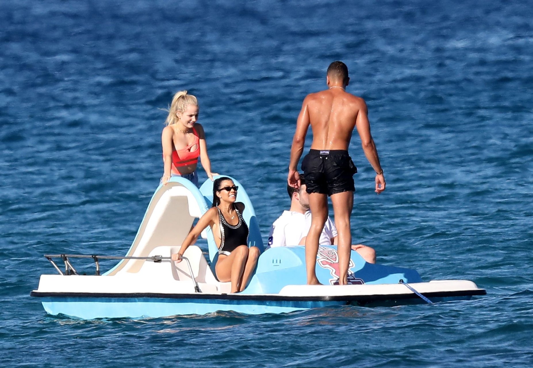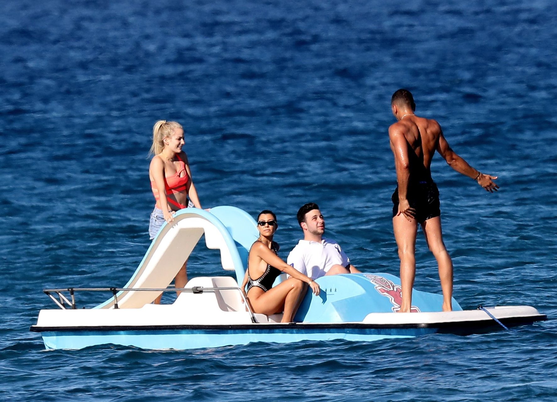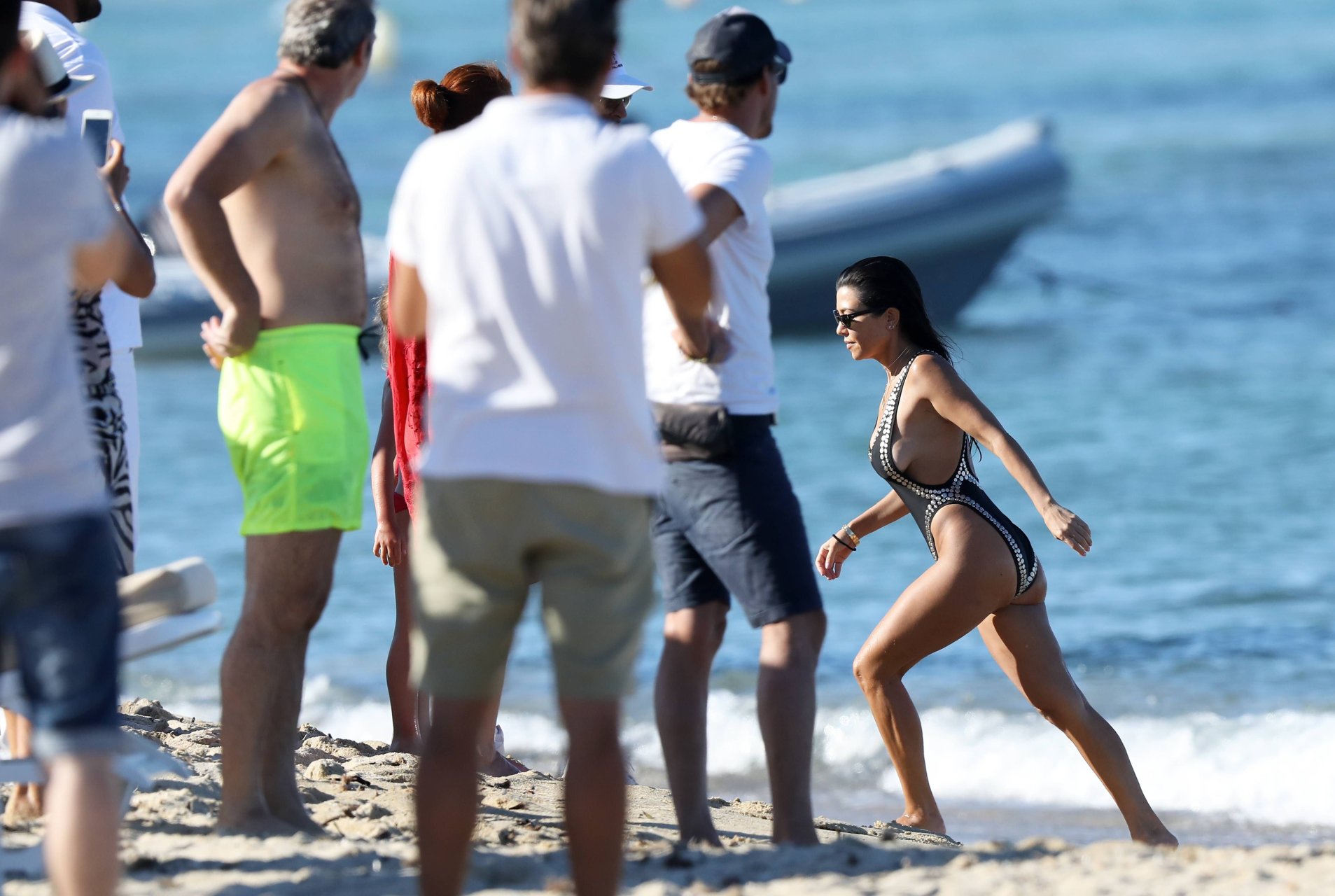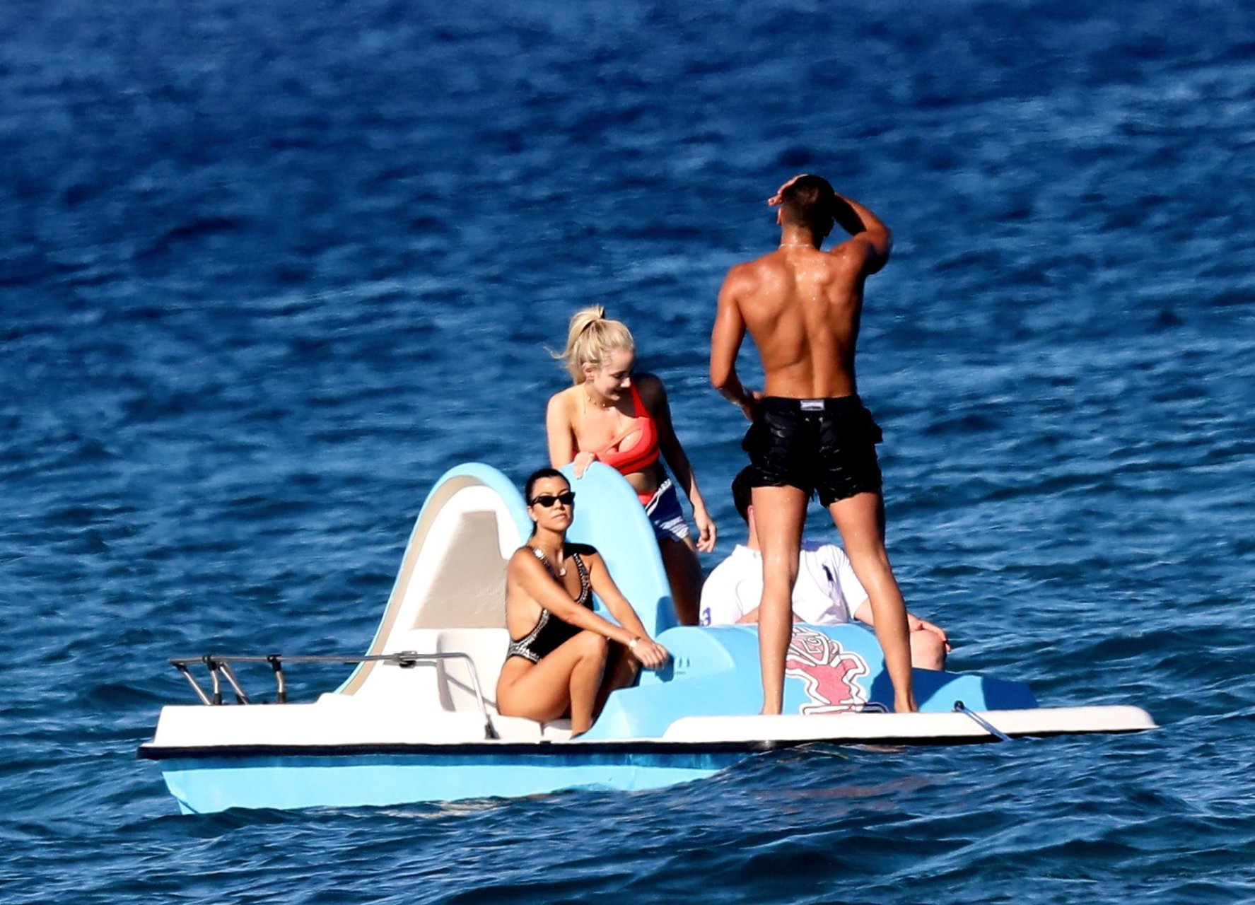 Kourtney Kardashian profite d’une journée sur un catamaran avec des amis à Saint-Tropez, France, 07/03/2017. Kourtney Mary Kardashian est une star américaine de la télévision, mannequin, socialite, femme d’affaires Âge – 38.