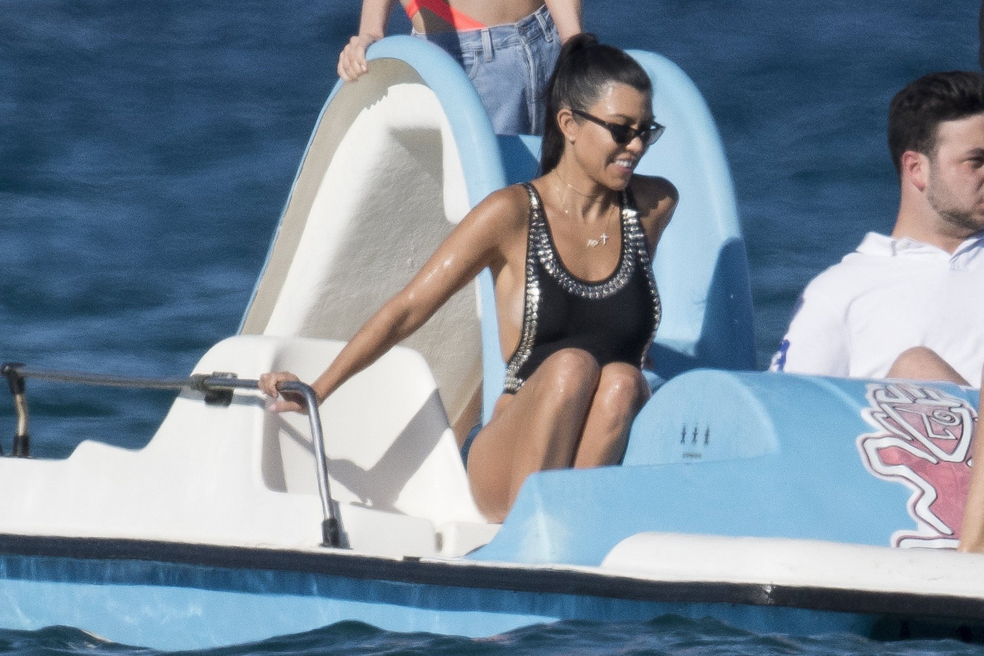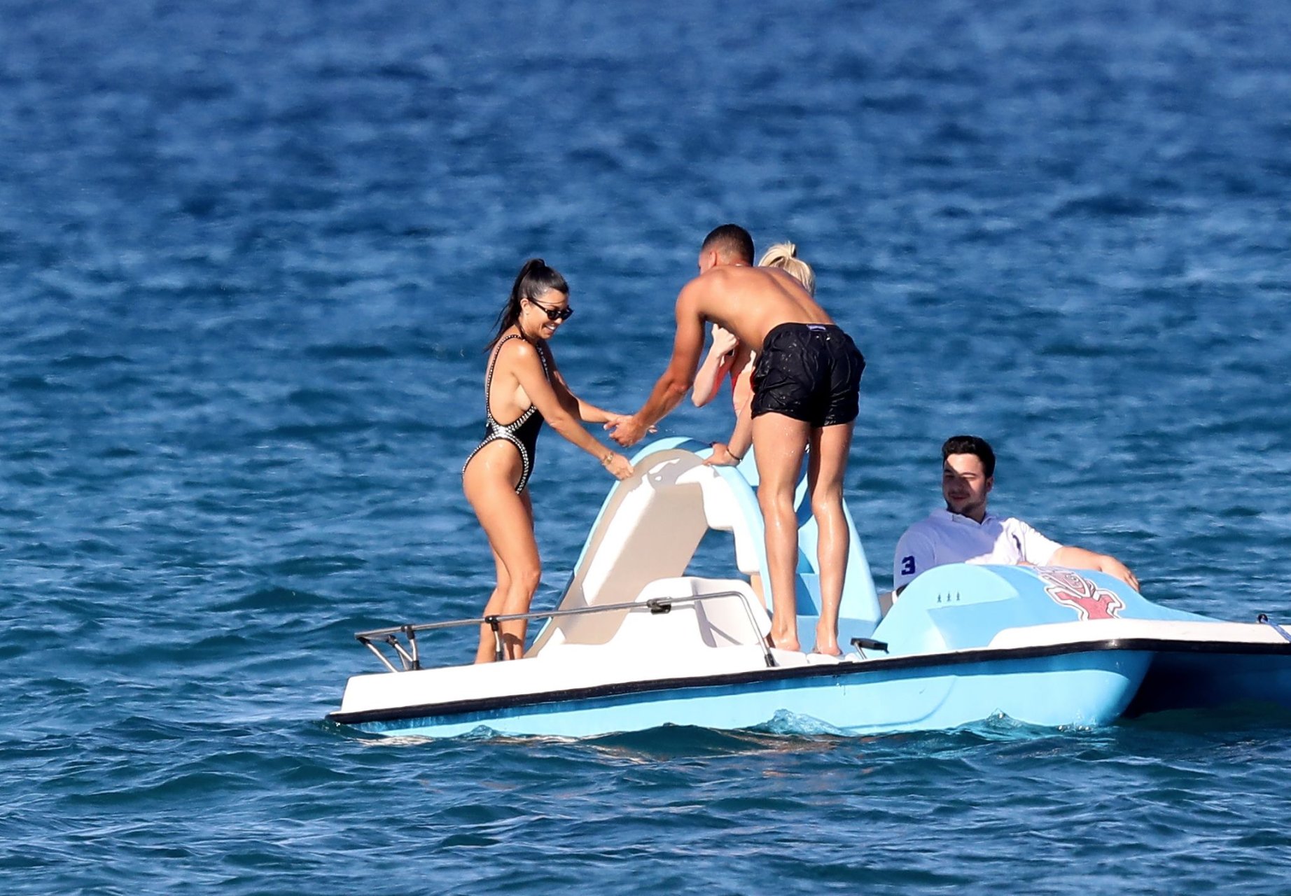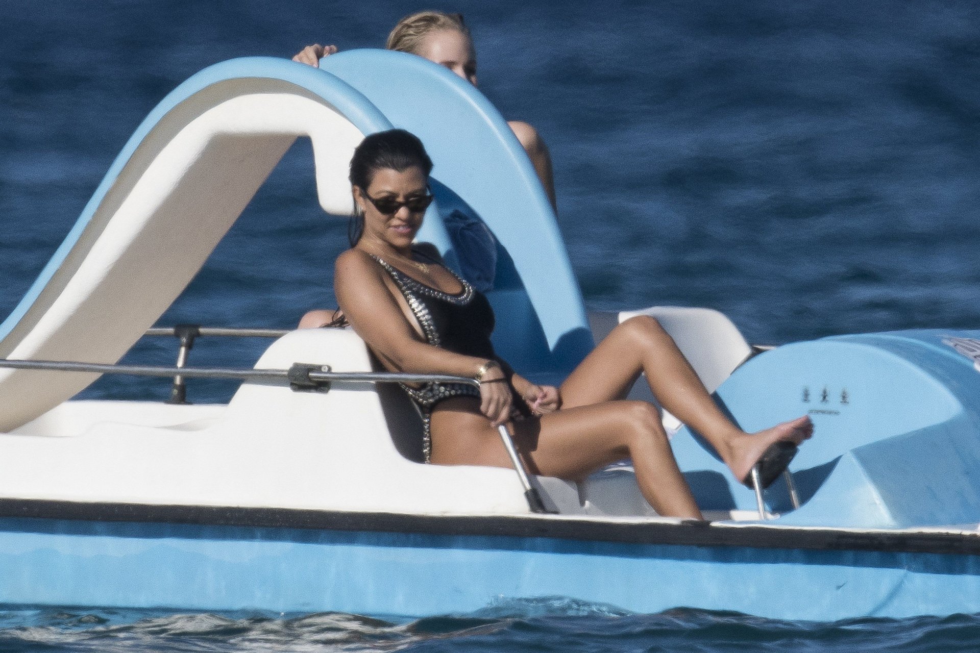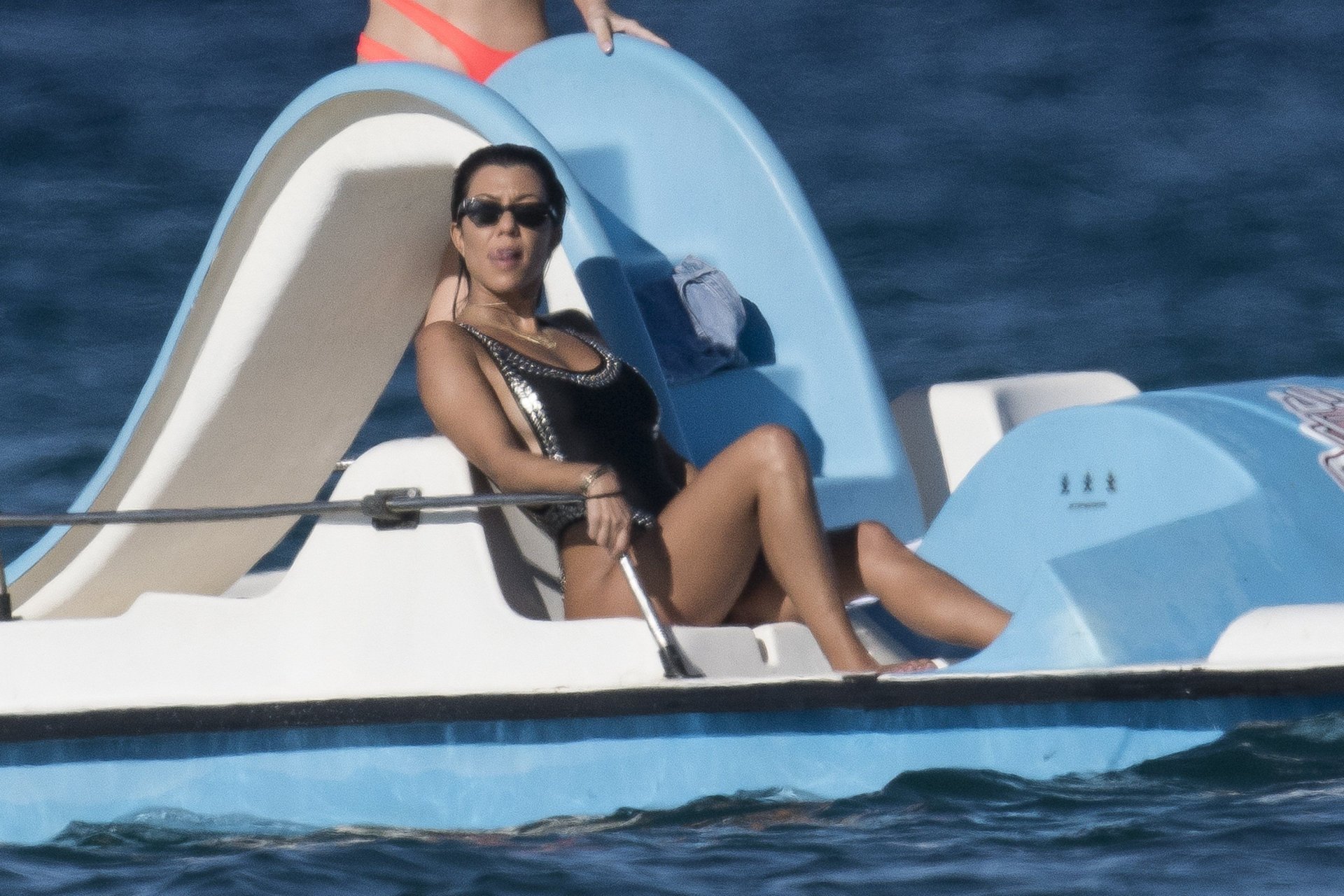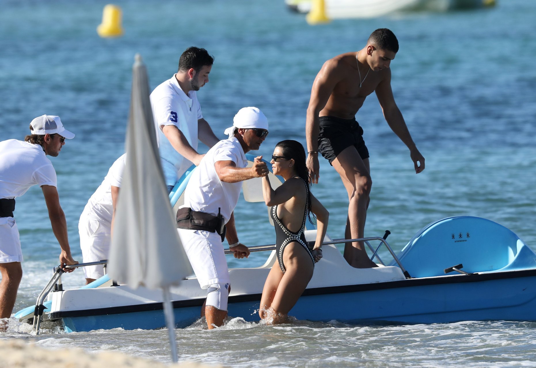 Kourtney Kardashian profite d’une journée sur un catamaran avec des amis à Saint-Tropez, France, 07/03/2017. Kourtney Mary Kardashian est une star américaine de la télévision, mannequin, socialite, femme d’affaires Âge – 38.