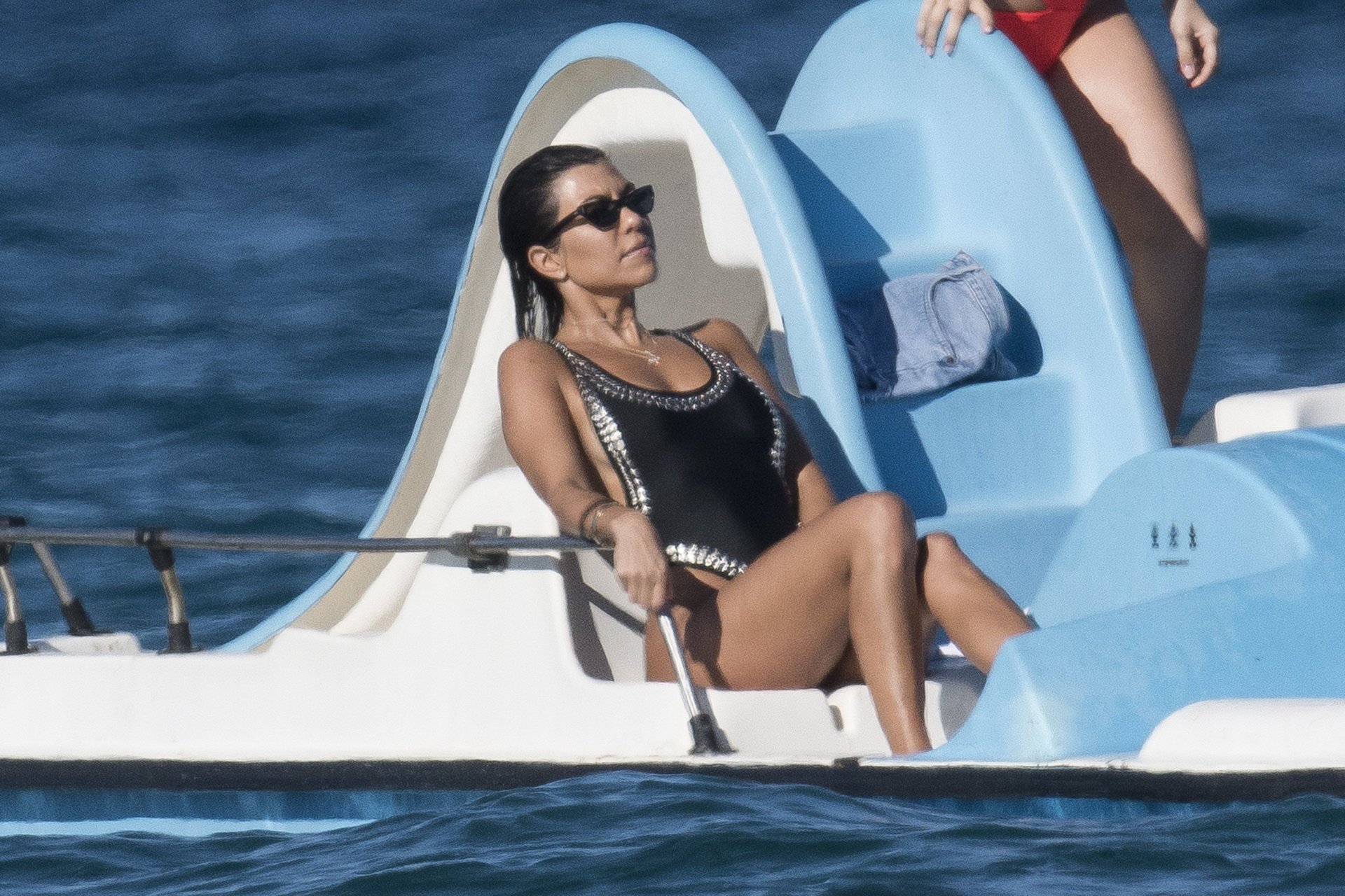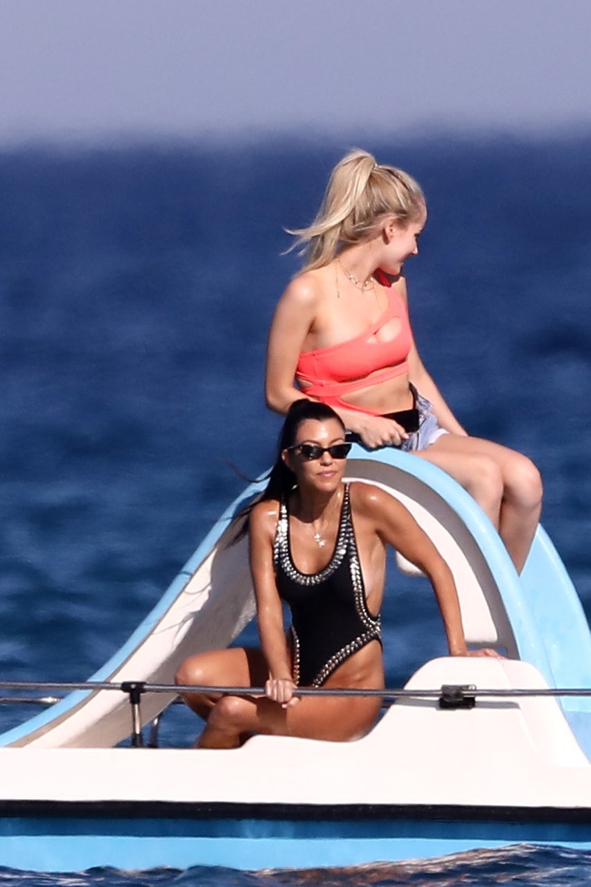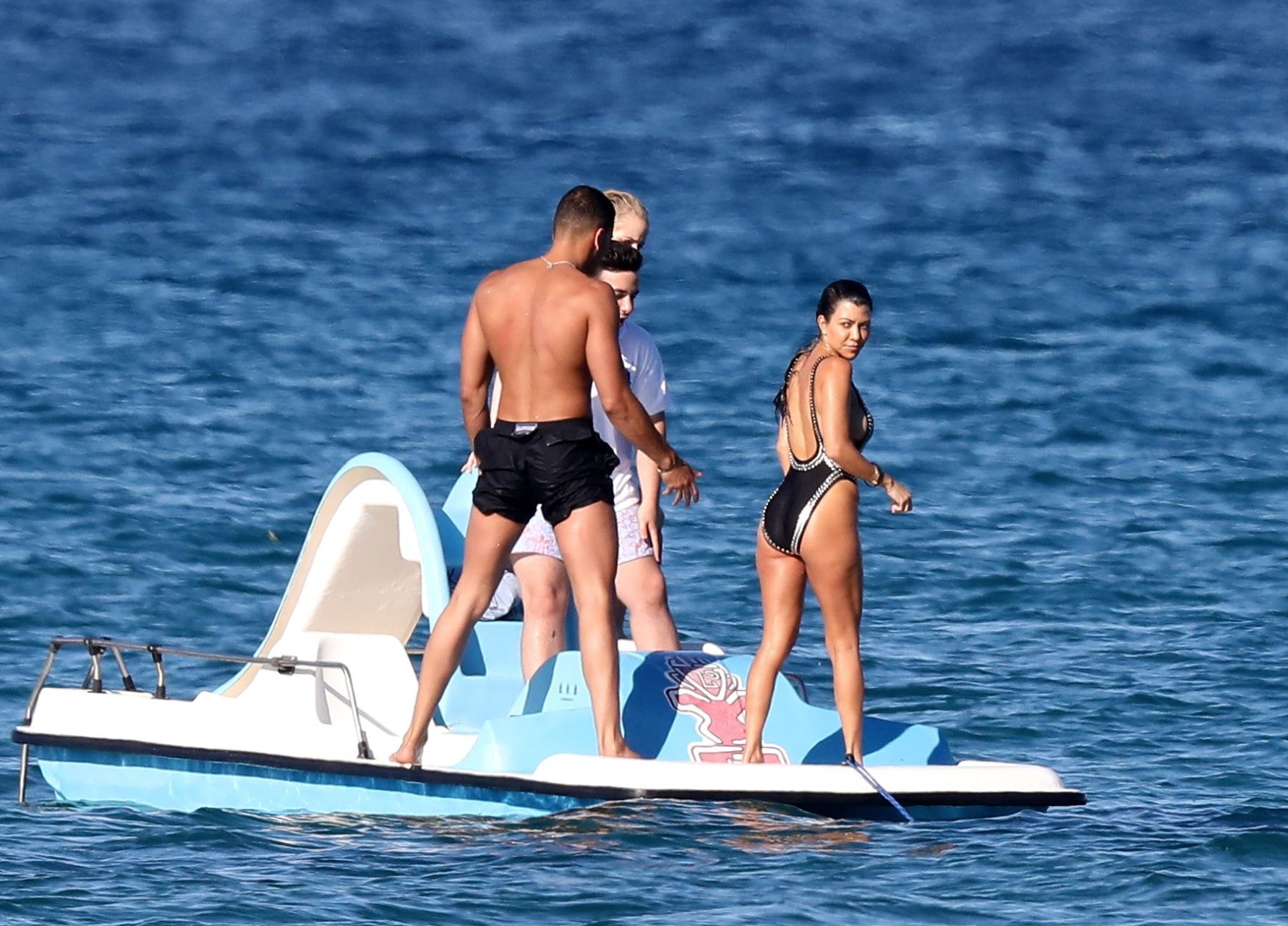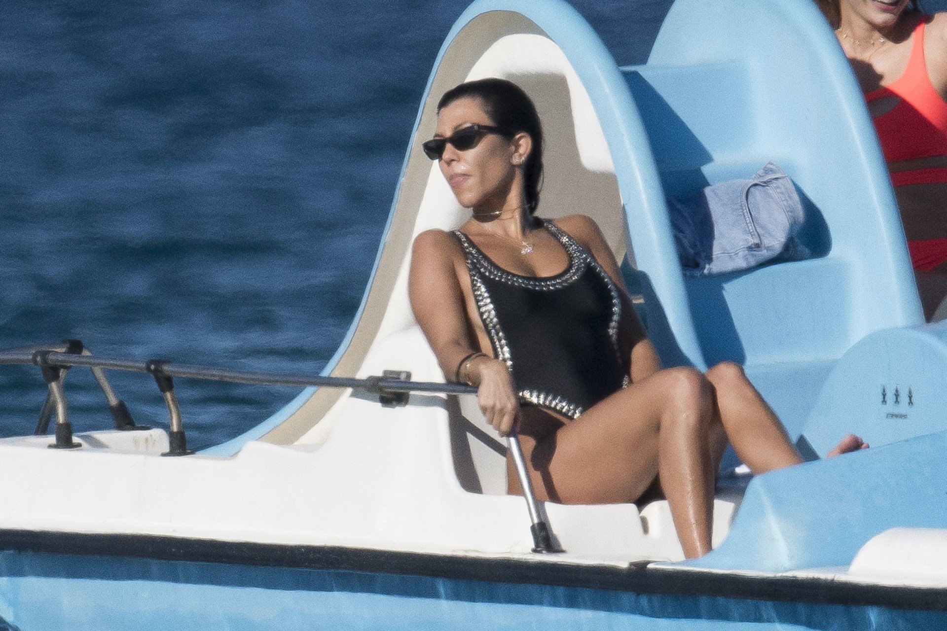 Kourtney Kardashian profite d’une journée sur un catamaran avec des amis à Saint-Tropez, France, 07/03/2017. Kourtney Mary Kardashian est une star américaine de la télévision, mannequin, socialite, femme d’affaires Âge – 38.