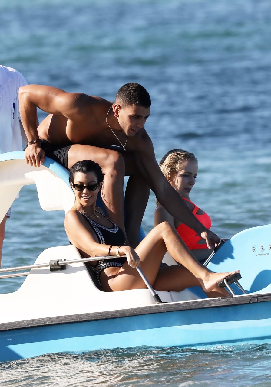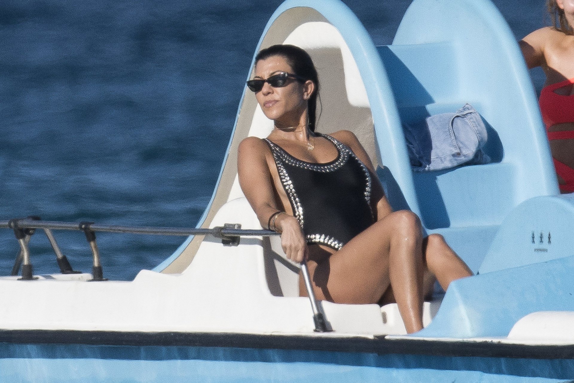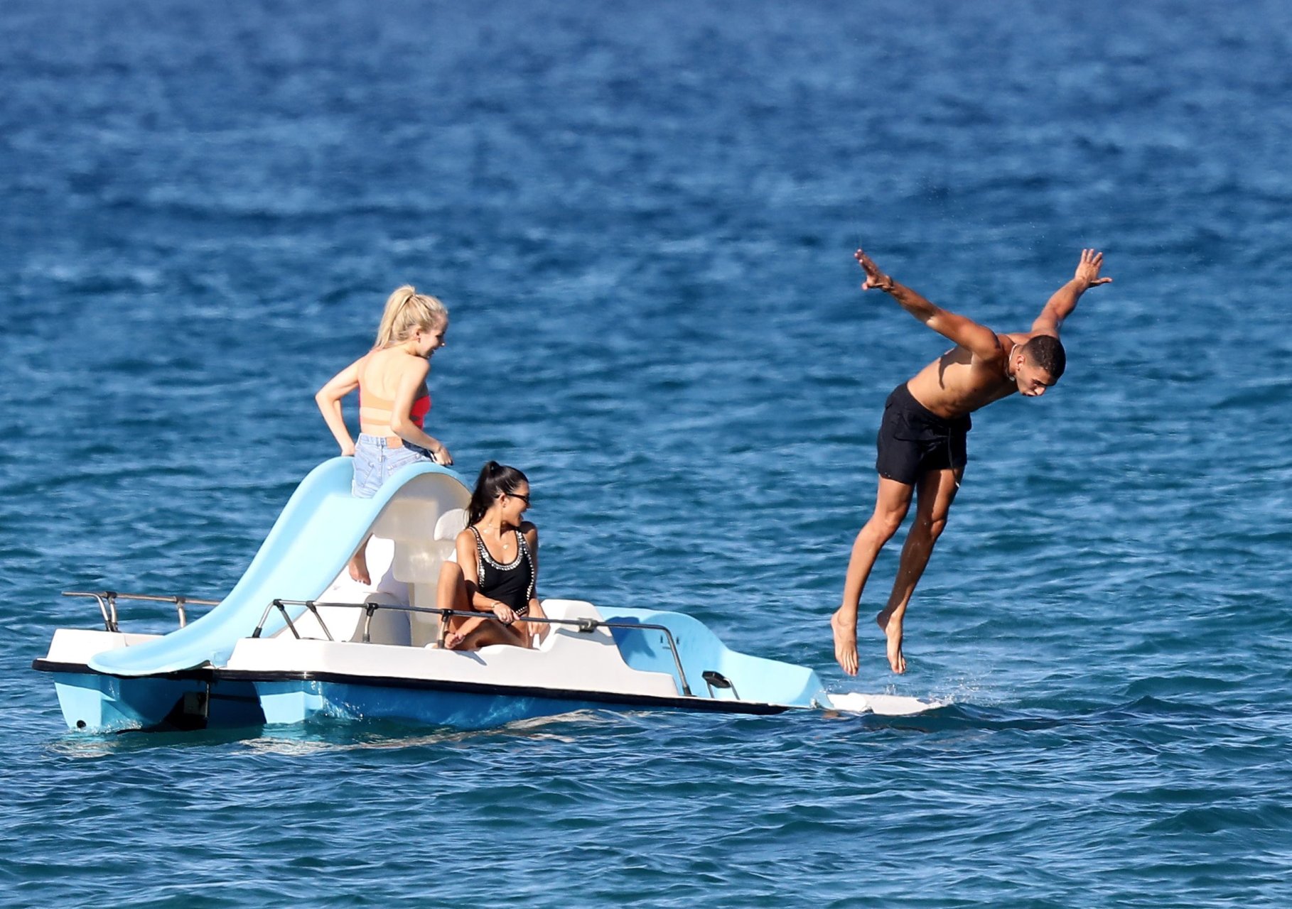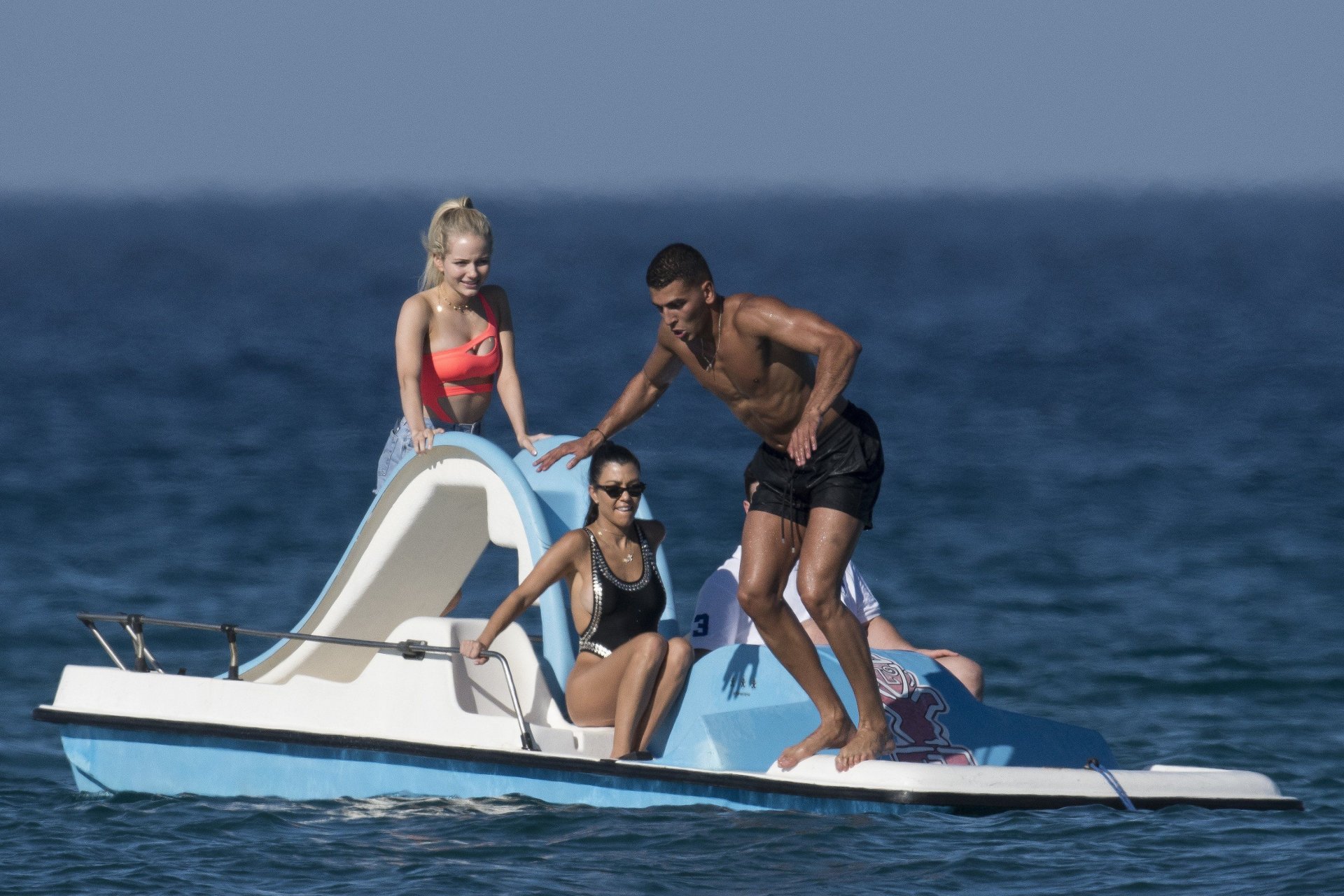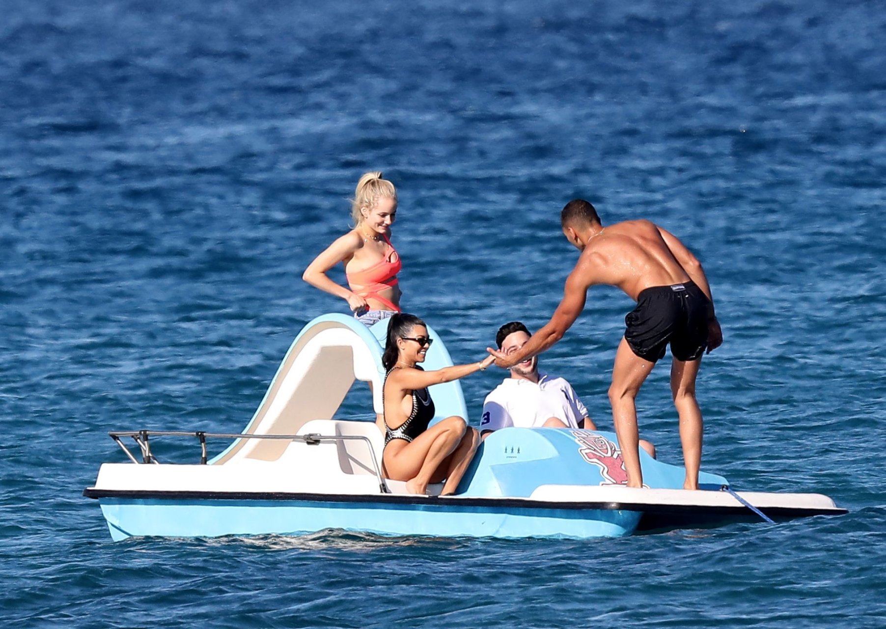 Kourtney Kardashian profite d’une journée sur un catamaran avec des amis à Saint-Tropez, France, 07/03/2017. Kourtney Mary Kardashian est une star américaine de la télévision, mannequin, socialite, femme d’affaires Âge – 38.