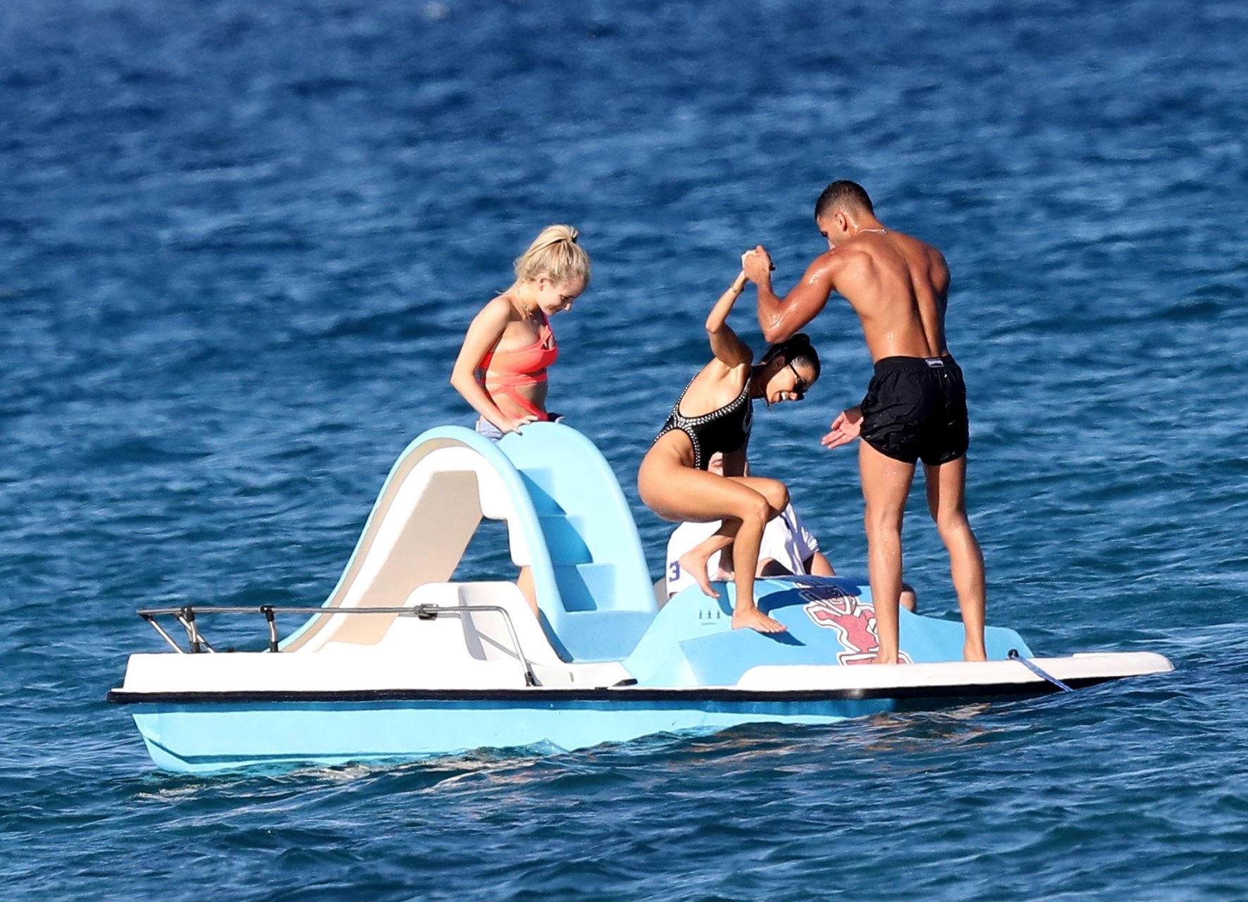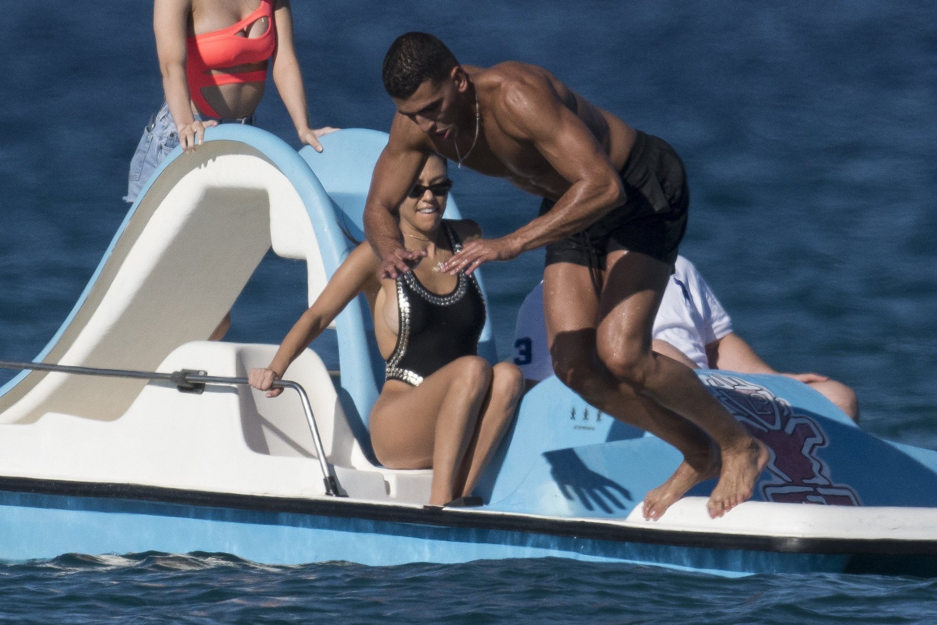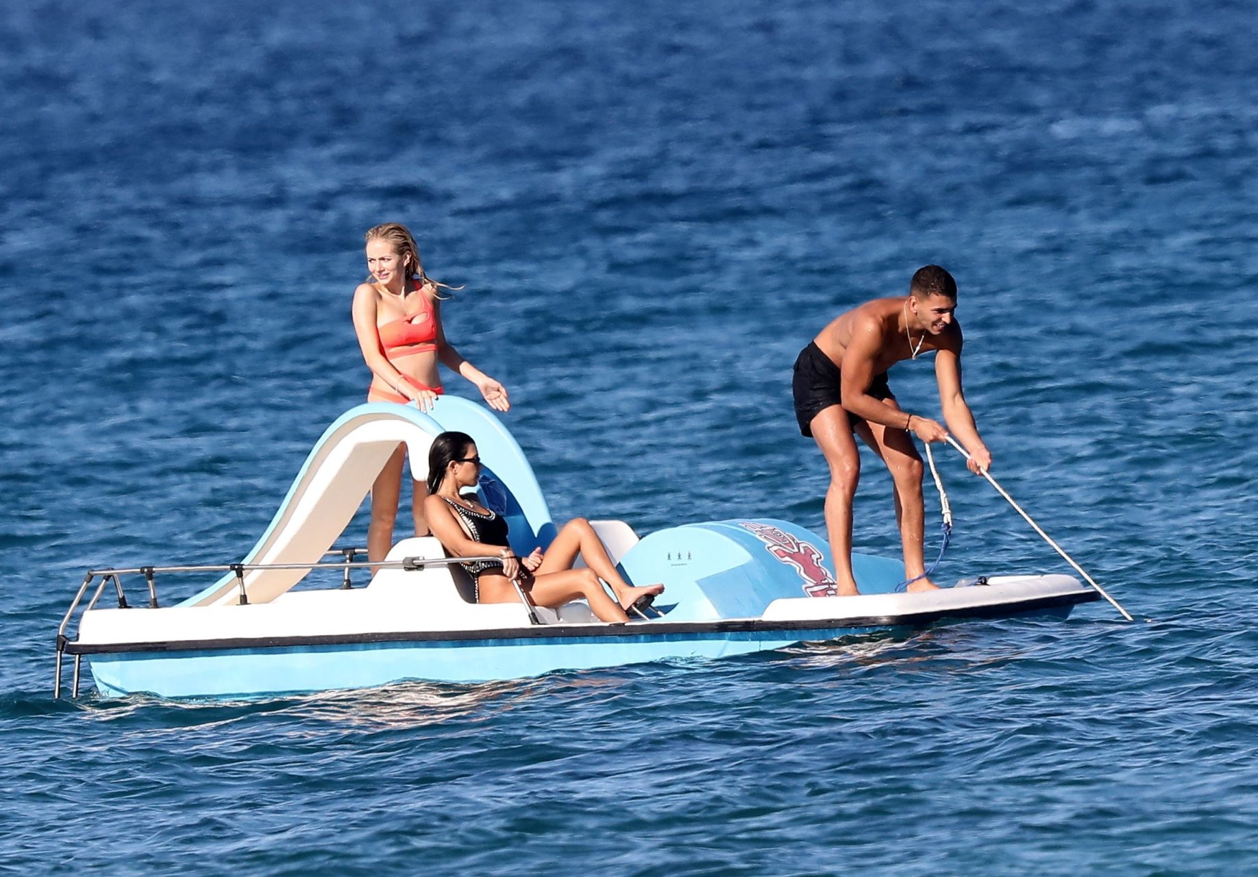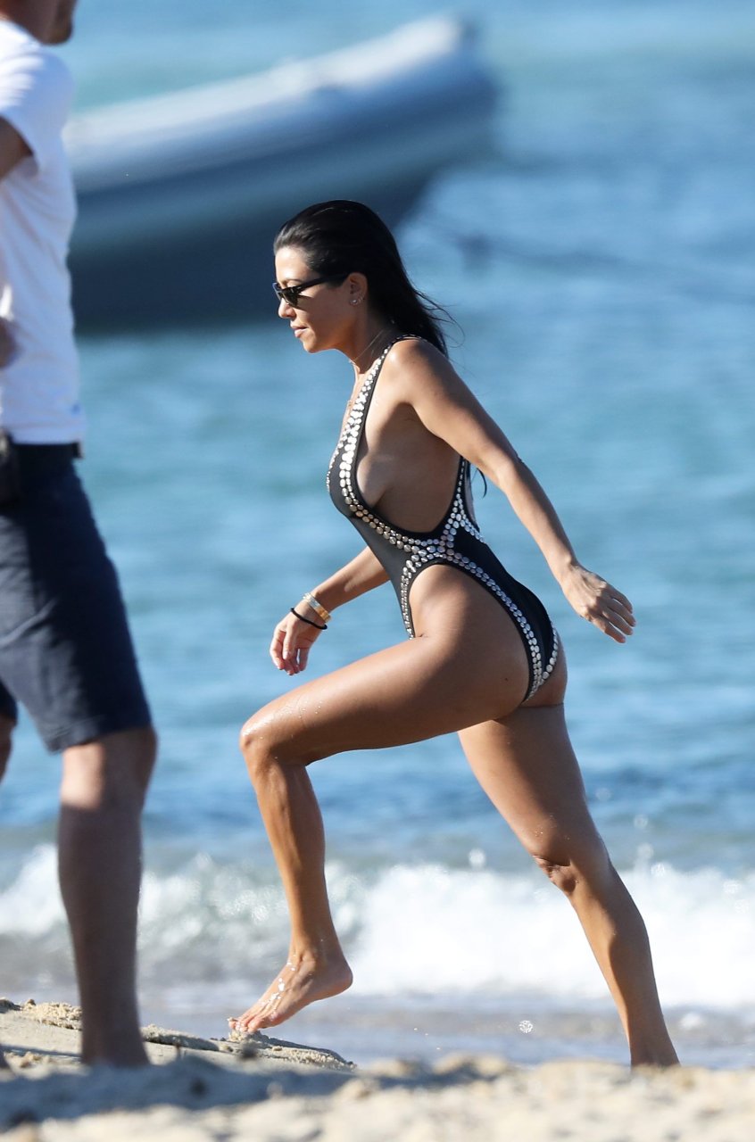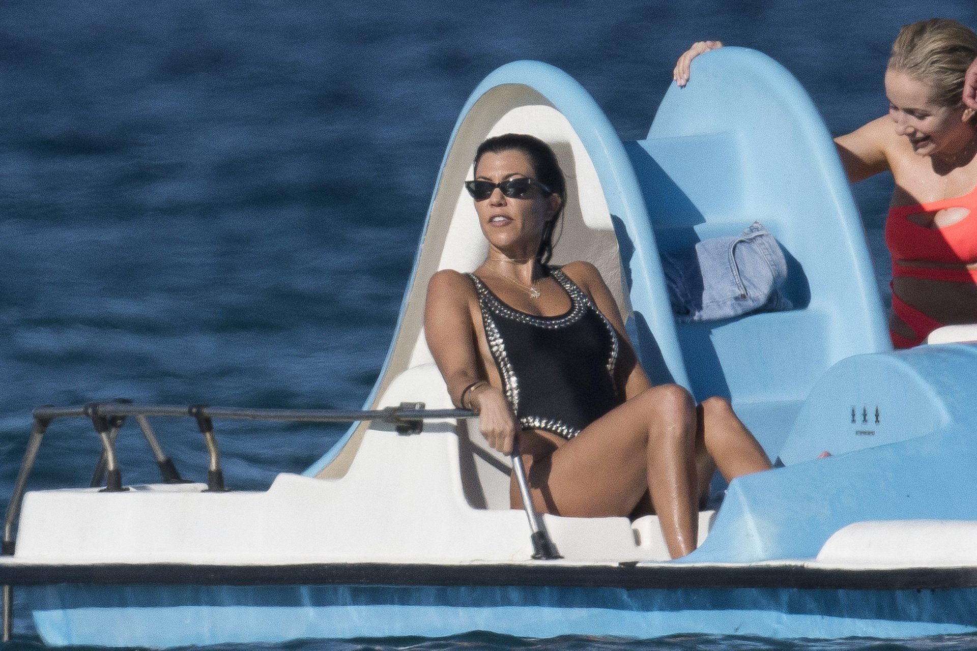 Kourtney Kardashian profite d’une journée sur un catamaran avec des amis à Saint-Tropez, France, 07/03/2017. Kourtney Mary Kardashian est une star américaine de la télévision, mannequin, socialite, femme d’affaires Âge – 38.