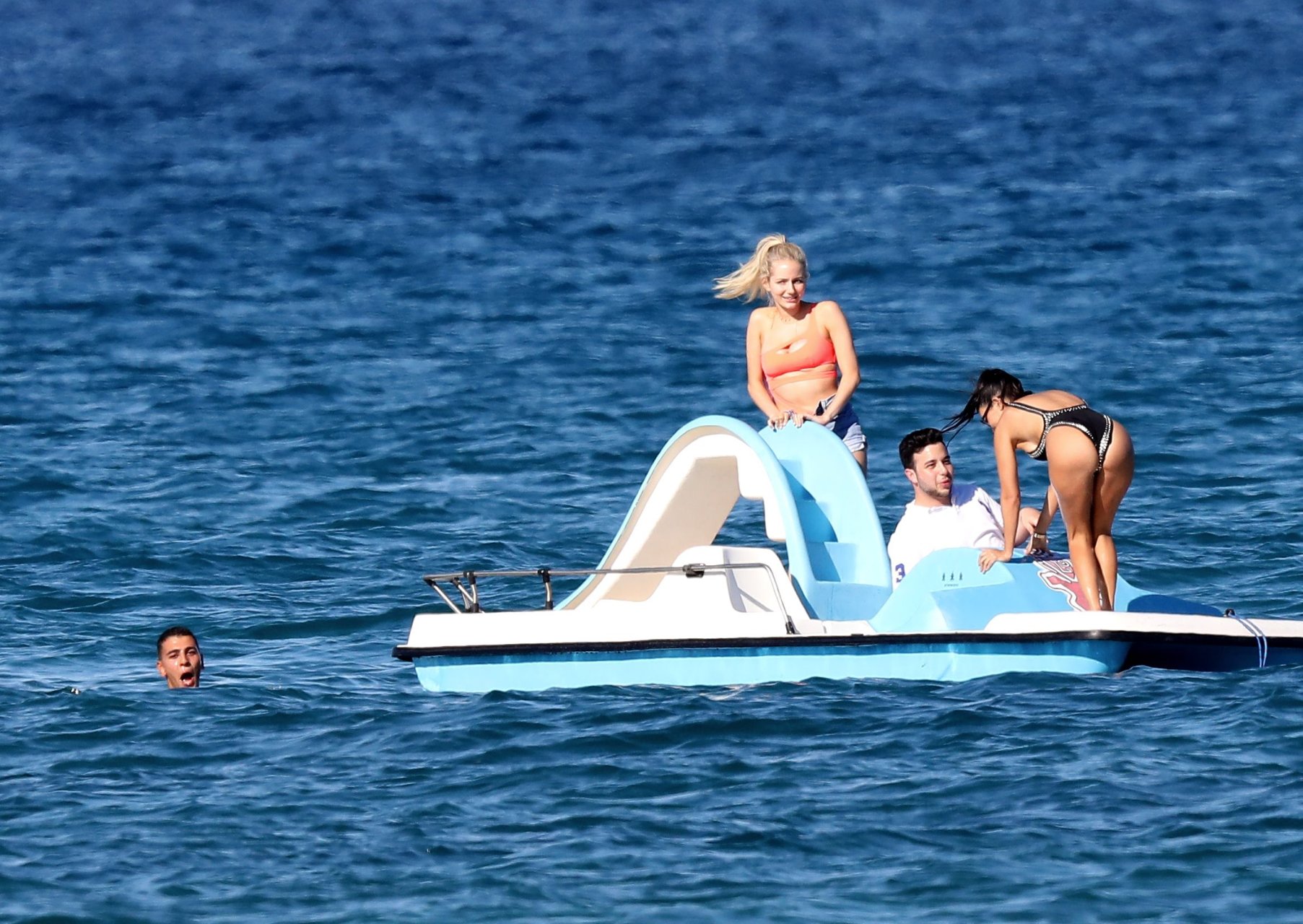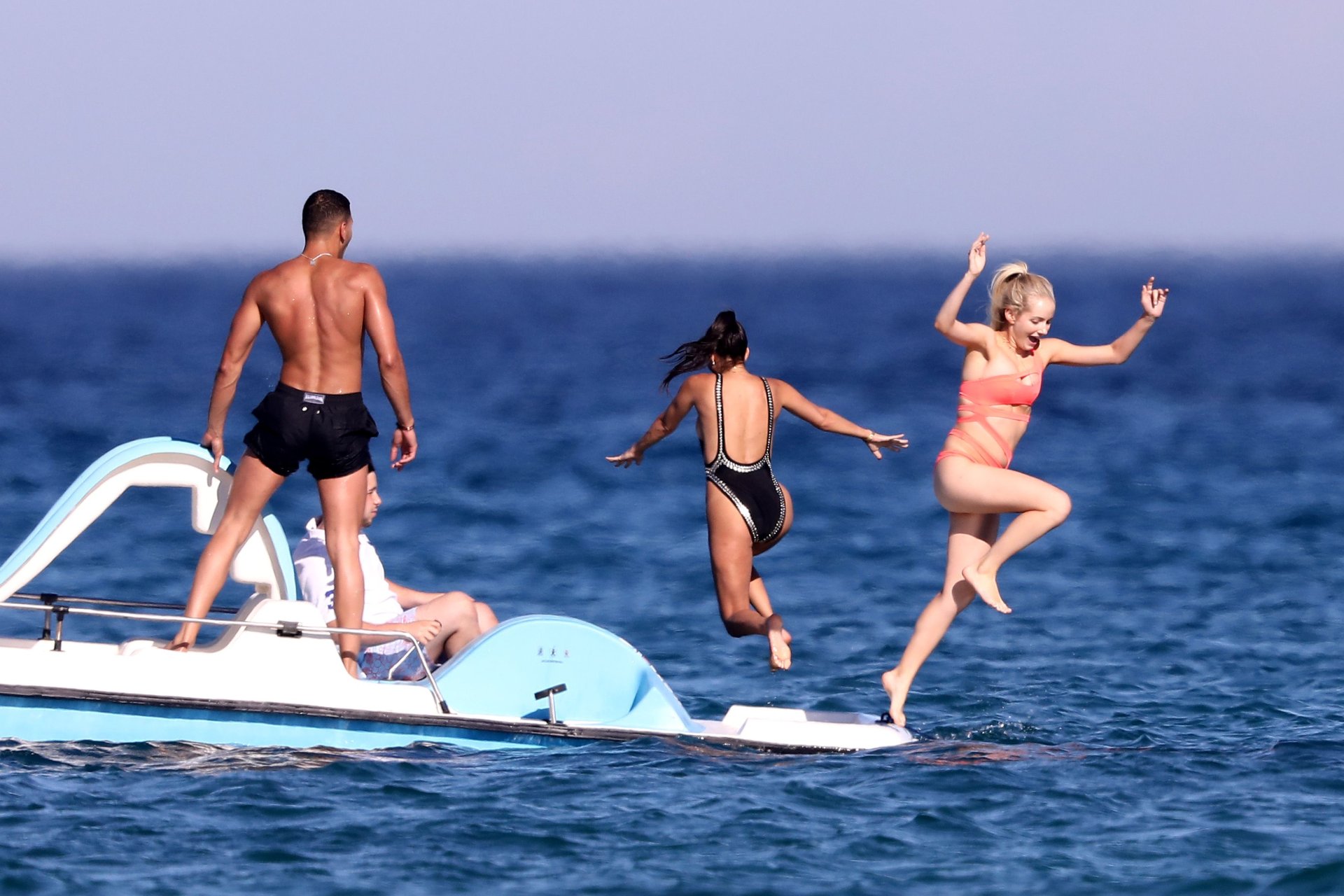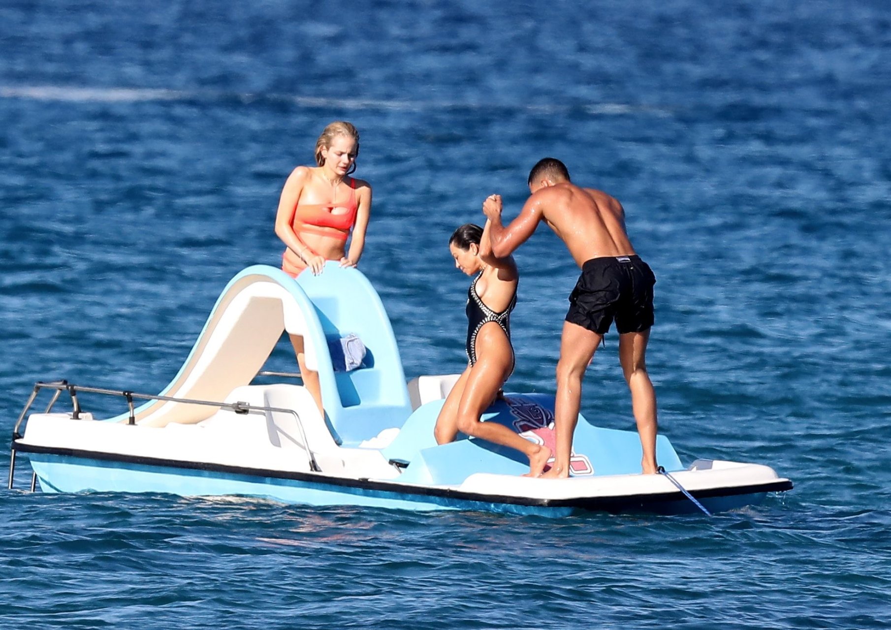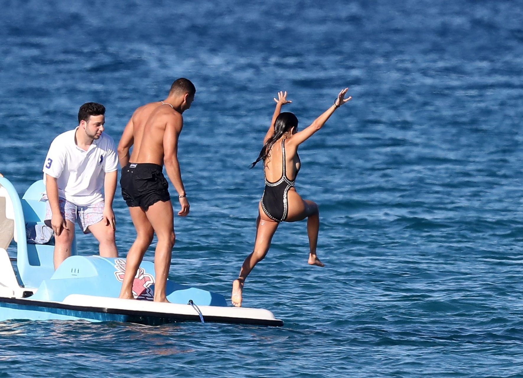 Kourtney Kardashian profite d’une journée sur un catamaran avec des amis à Saint-Tropez, France, 07/03/2017. Kourtney Mary Kardashian est une star américaine de la télévision, mannequin, socialite, femme d’affaires Âge – 38.