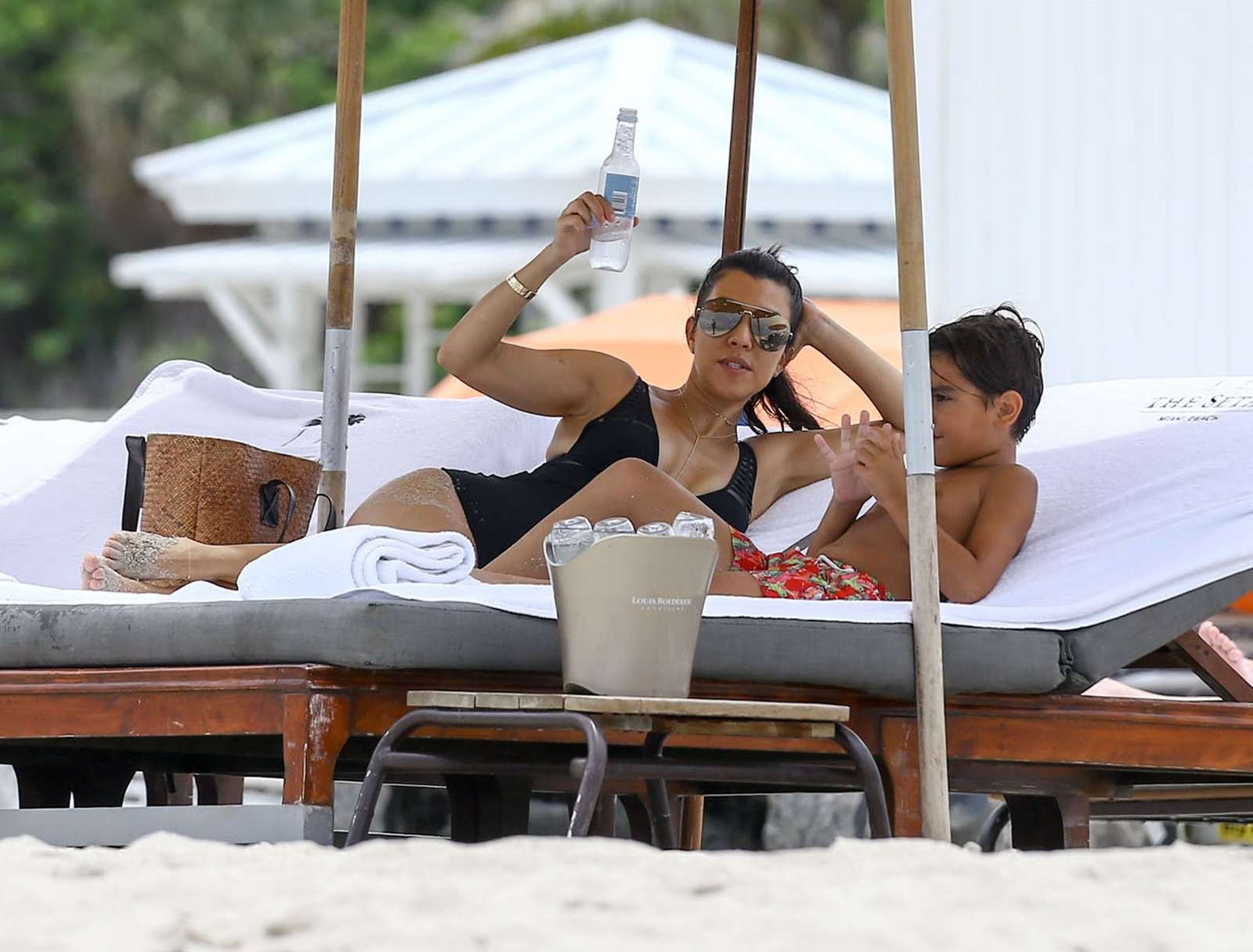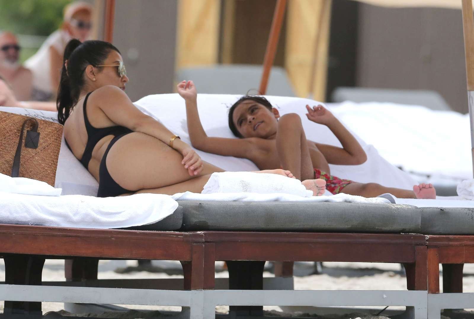 Kourtney Kardashian montre ses fesses dans un nouveau maillot de bain noir avec Larsa Pippen et d’autres amis à Miami, 07/02/2016. Maman sexy ! Kourtney Kardashian est une personnalité de la télévision américaine et mannequin. Âge : 37 ans (18 avril 1979).