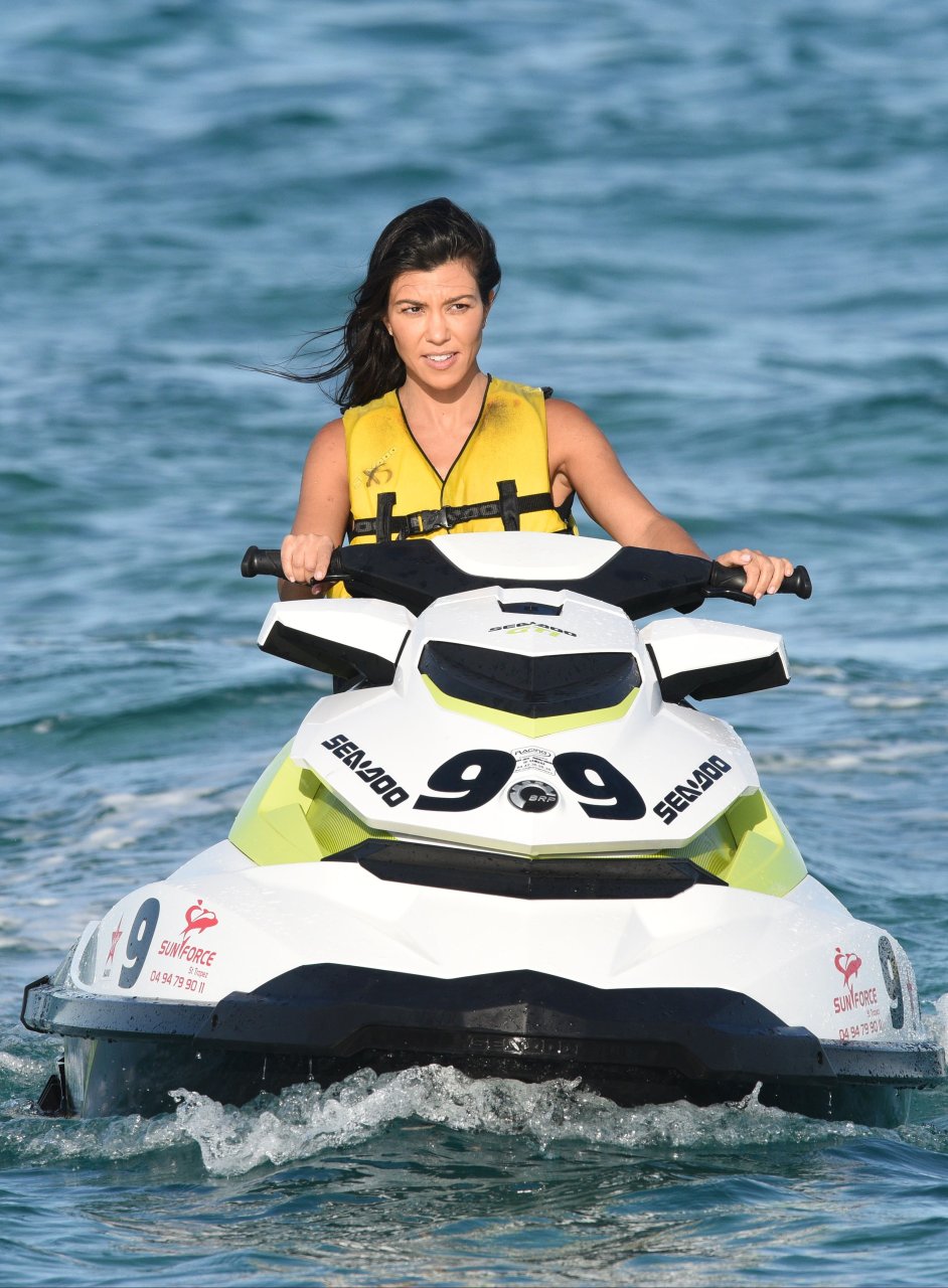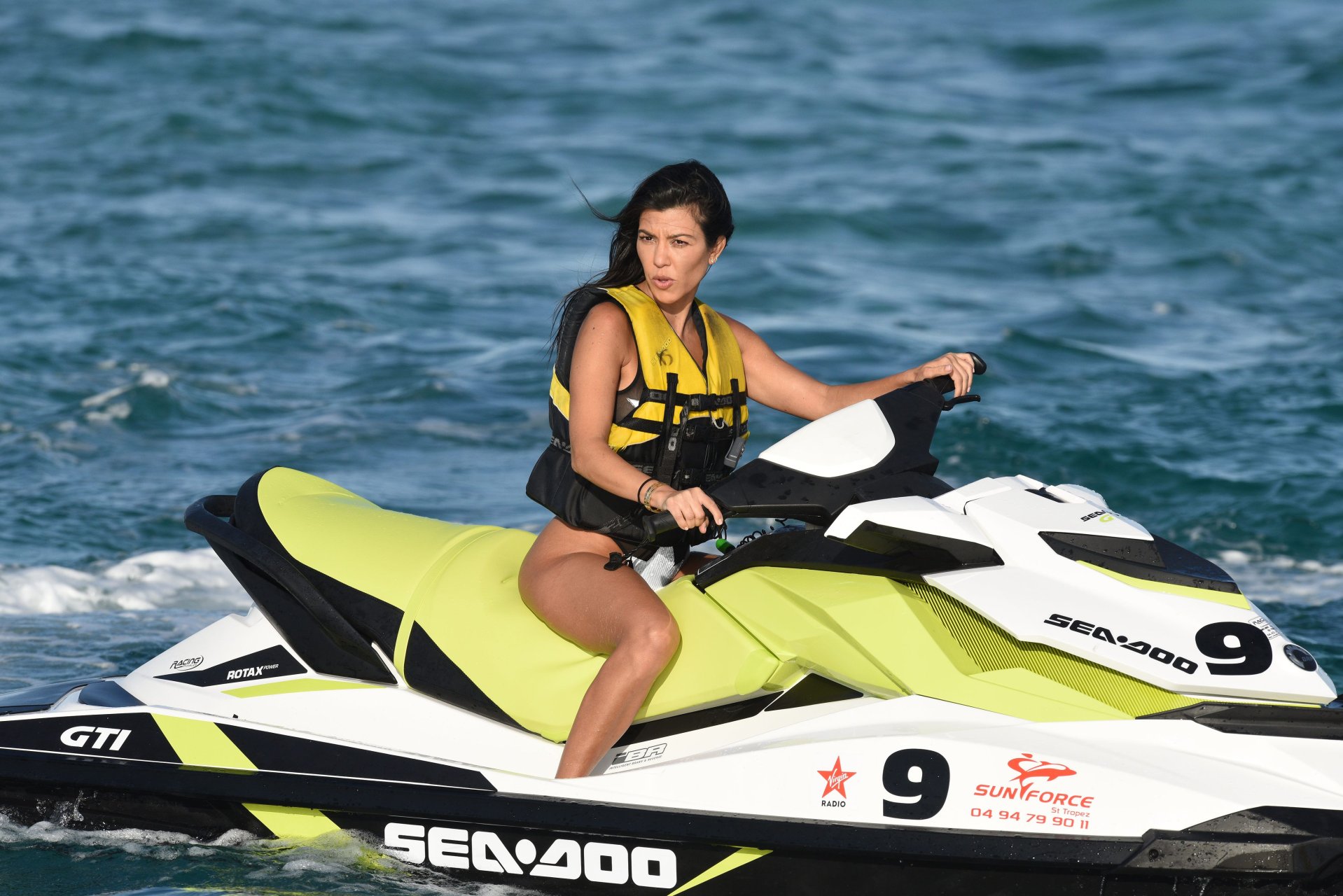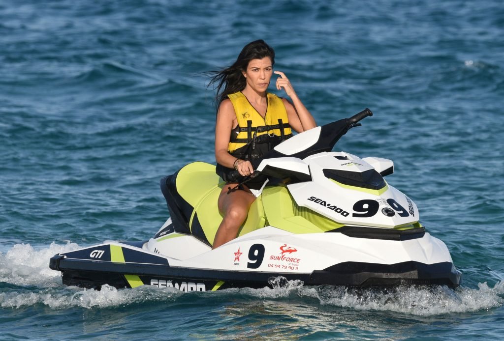 Kourtney Kardashian profite de vacances à la plage à St Tropez, 07/04/2017. Kourtney Mary Kardashian est une star de la télévision, mannequin, socialite, femme d’affaires. Âge – 38 ans.