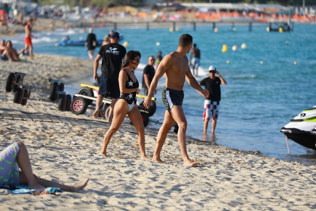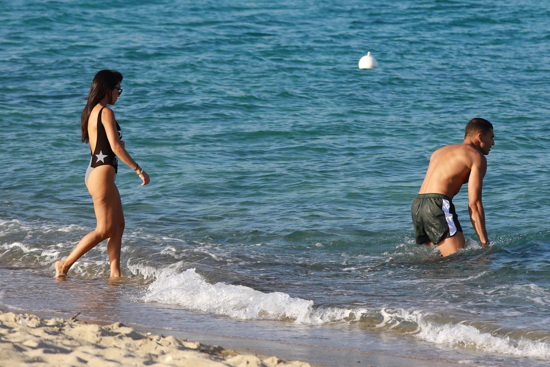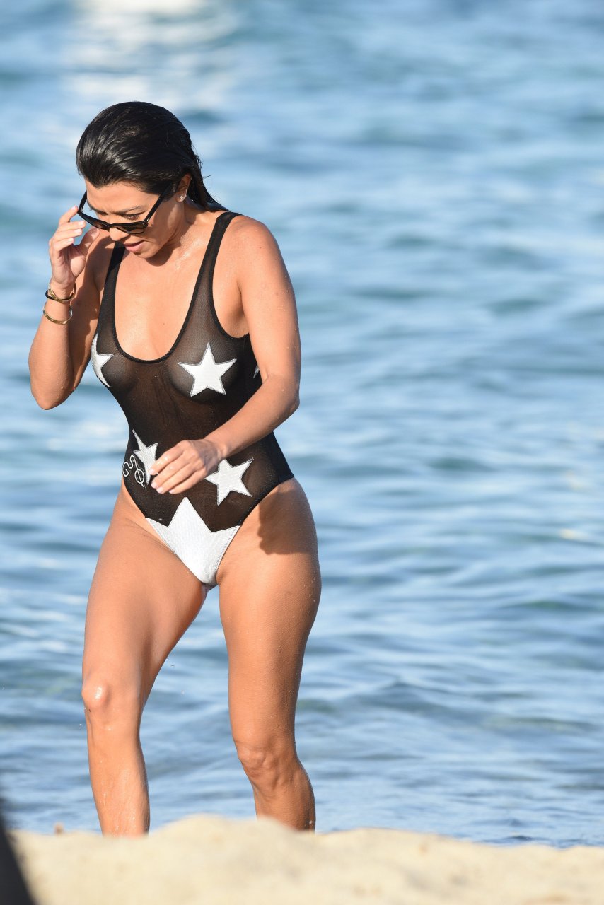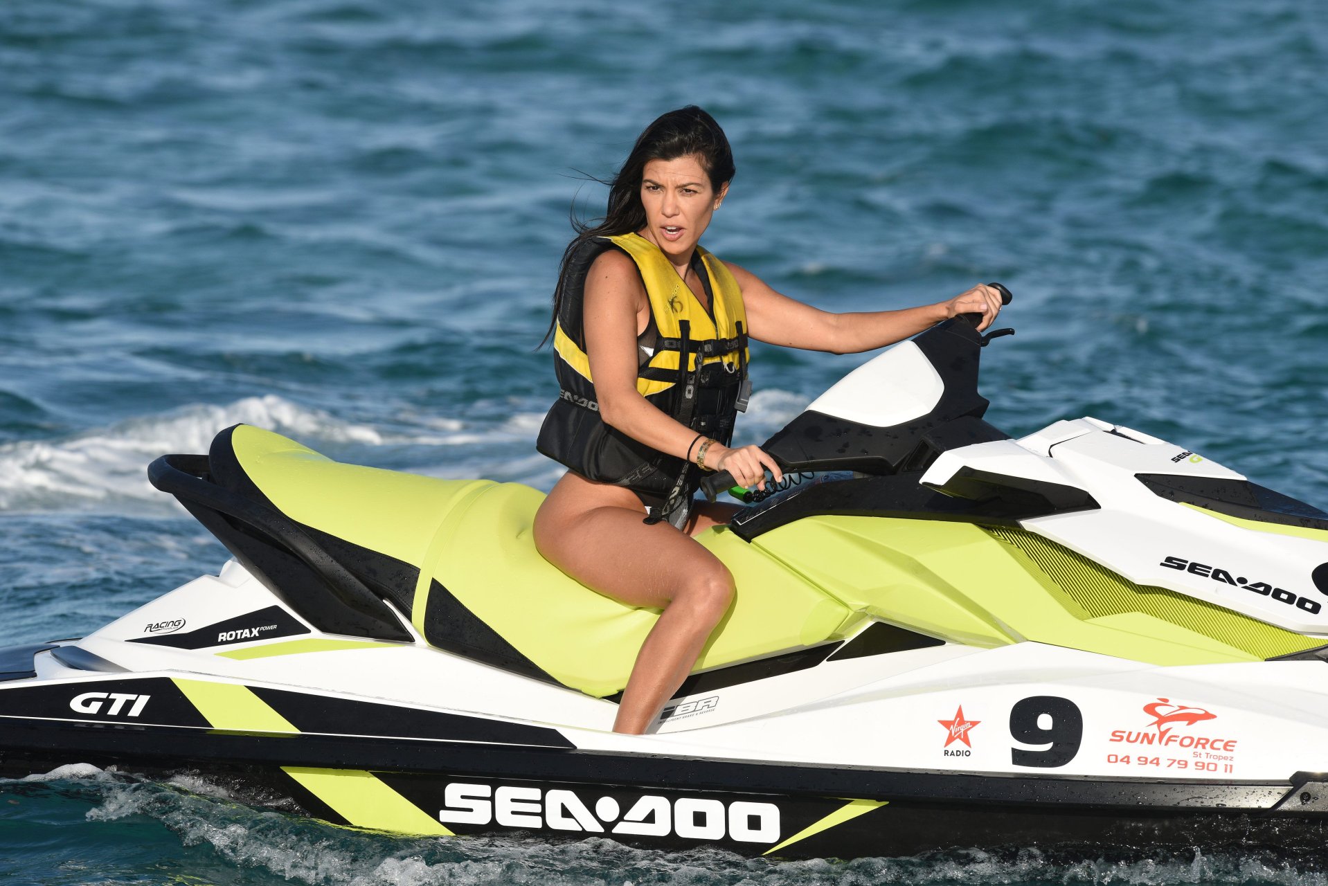 Kourtney Kardashian profite de vacances à la plage à St Tropez, 07/04/2017. Kourtney Mary Kardashian est une star de la télévision, mannequin, socialite, femme d’affaires. Âge – 38 ans.