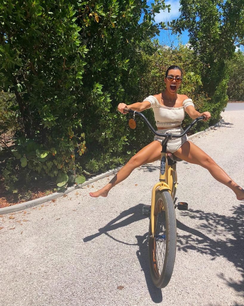 Kourtney Kardashian porte un bikini sexy orange doré sur la plage à Turks & Caicos – Instagram, 04/09/2018. Kourtney Kardashian est une star de la télé-réalité, actrice de télévision, mannequin, personnalité mondaine. Âge – 38.