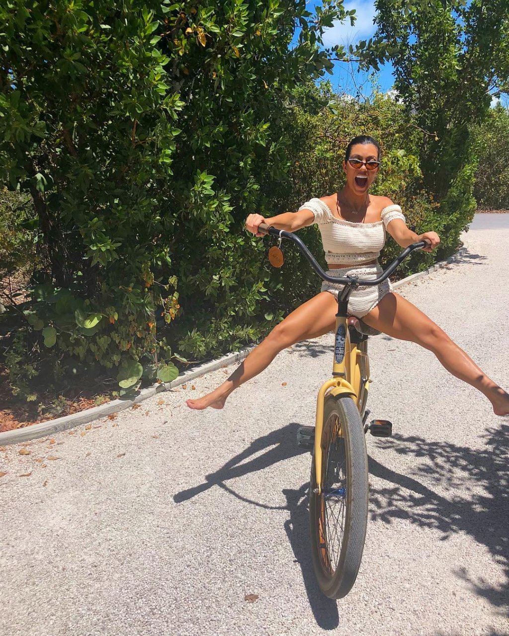 Kourtney Kardashian porte un bikini sexy orange doré sur la plage à Turks & Caicos – Instagram, 04/09/2018. Kourtney Kardashian est une star de la télé-réalité, actrice de télévision, mannequin, personnalité mondaine. Âge – 38.