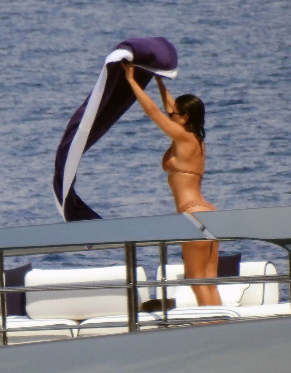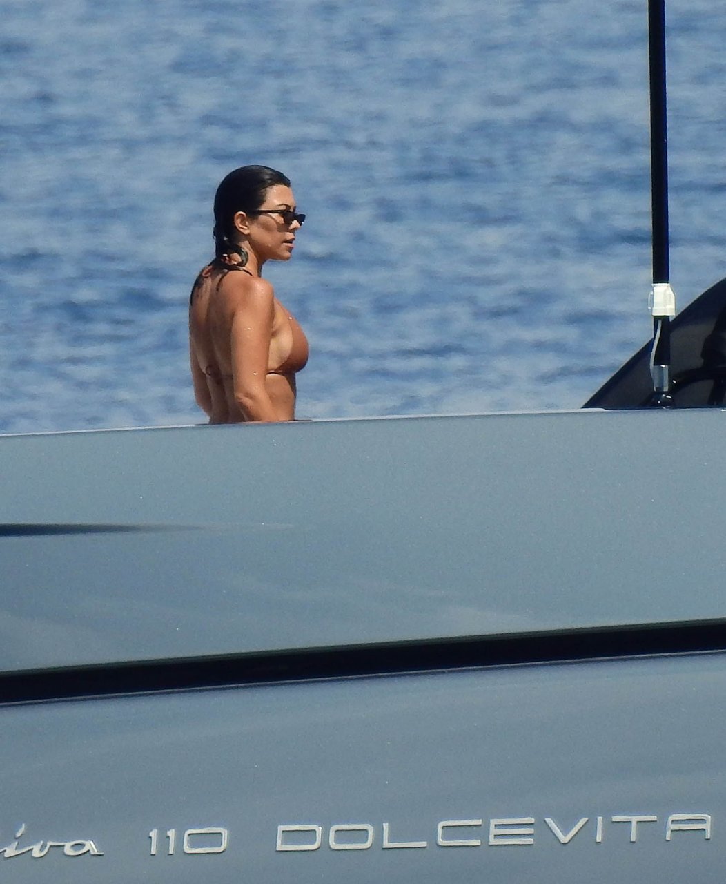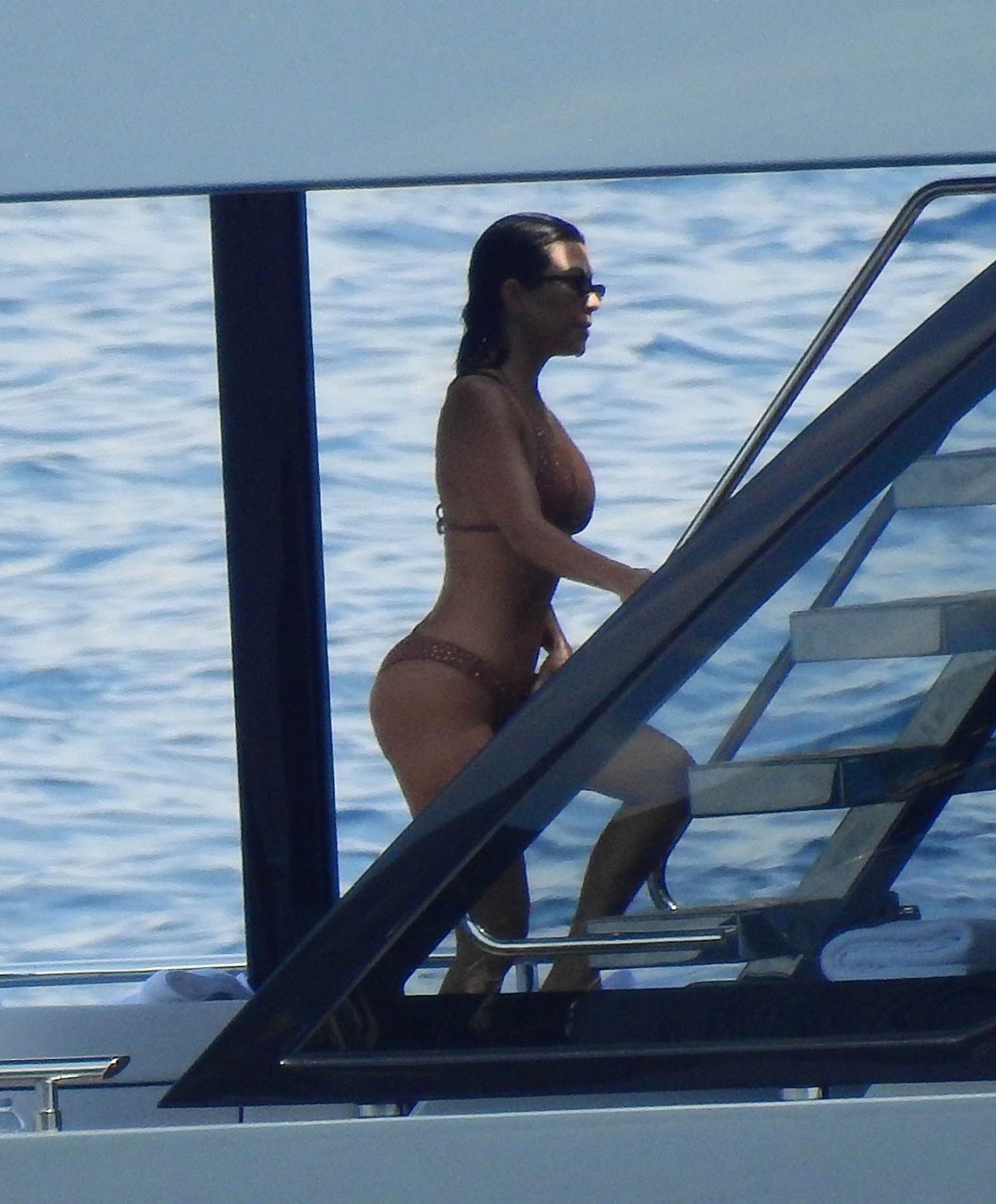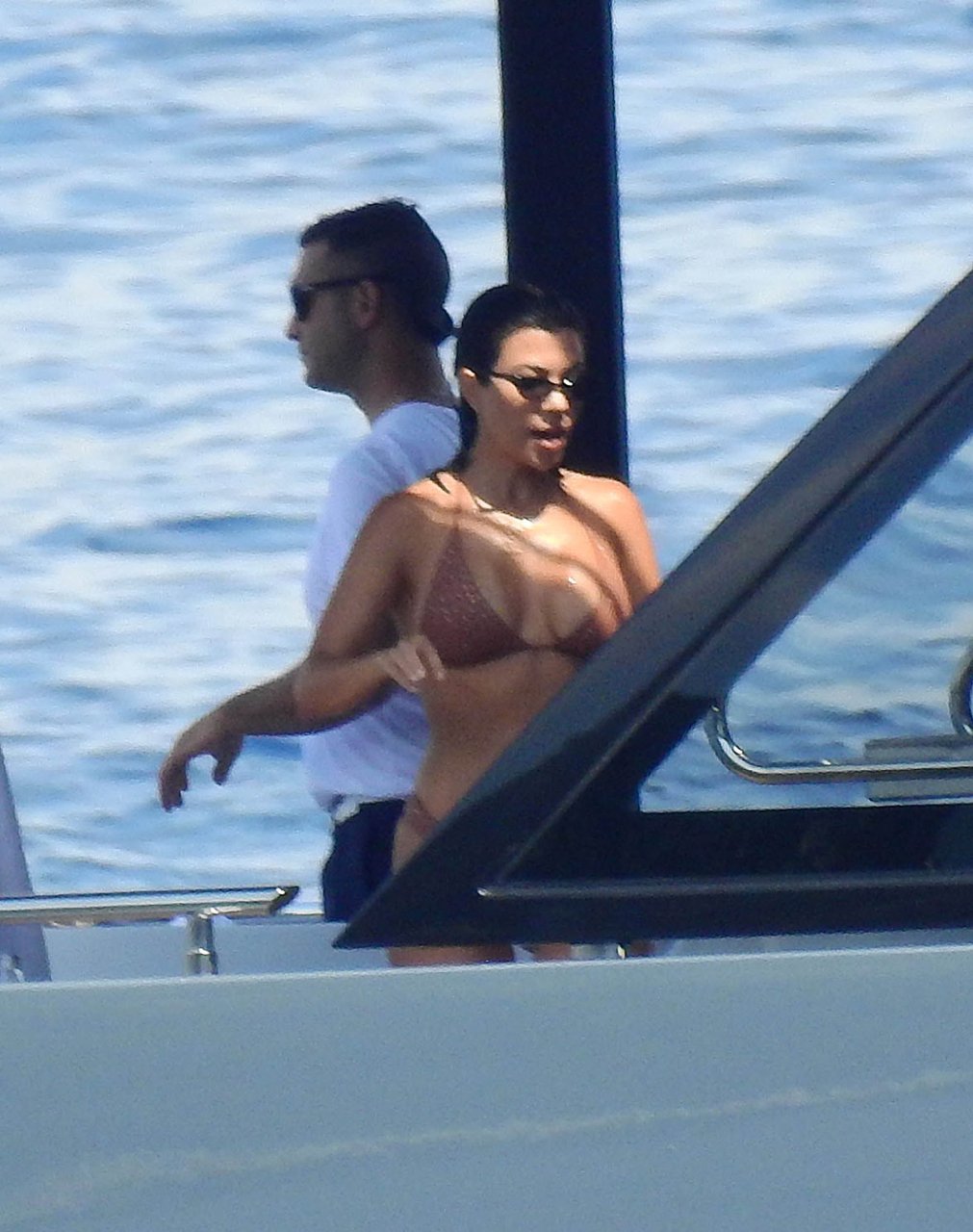 Kourtney Kardashian s’amuse sur un yacht à Portofino, 07/08/2018. La star de télé-réalité de 39 ans, Kourtney Kardashian, est allée en Italie avec son petit ami, le boxeur et mannequin de 25 ans Younes Bendjima.