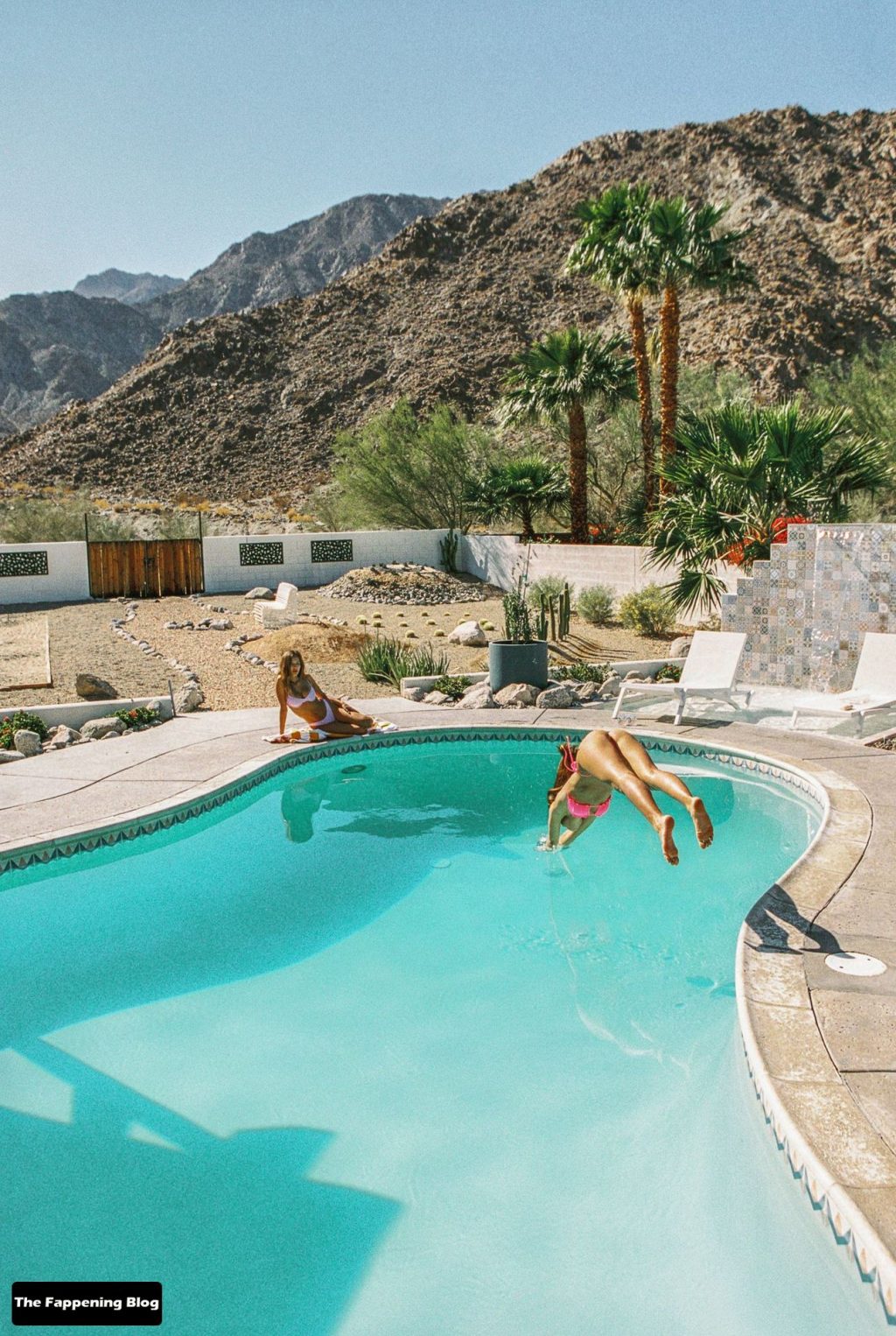 Le mannequin Kristen Kiehnle et Amara Johnson montrent leurs seins et fesses sexy en posant en bikinis sexy et seins nus dans la piscine lors d’une séance photo pour la marque House of ZZ (2021).