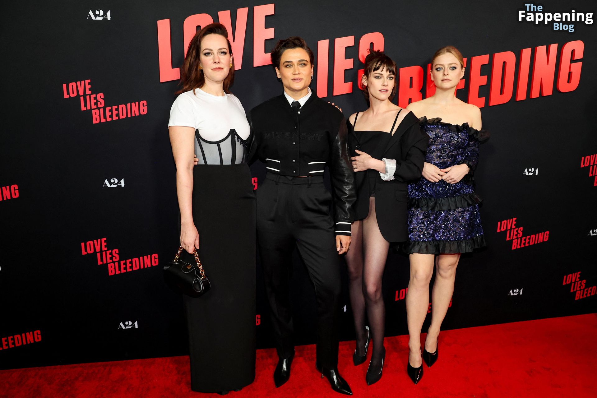 Découvrez le style audacieux de Kristen Stewart lors de la première de « Love Lies Bleeding », où elle dévoile ses jambes toniques dans des collants noirs élégants.
