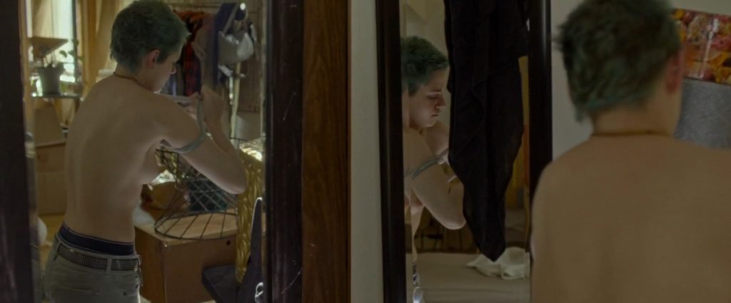 Kristen Stewart (Savannah Knoop / Jeremiah Terminator LeRoy) se regarde topless dans le miroir, son sein gauche visible dans le reflet ! Dans la 2ème scène, on peut voir le sein droit de Kristen alors qu’elle fait l’amour avec son homme. Regardez aussi une scène sexy avec Courtney Love et une scène lesbienne chaude avec Diane Kruger dans ce film !