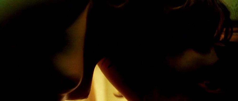 Kristen Stewart is pulling her shirt off and leaning in to kiss a guy. We then see her on her back under him while having sex, her right breast visible briefly.