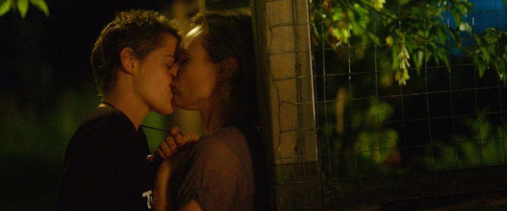 Then Kristen Stewart is making out with Diane Kruger before Kristen stands up. She leads Diane across a garden to lean against a fence. There, she reaches her hand down Diane’s pants to finger her.