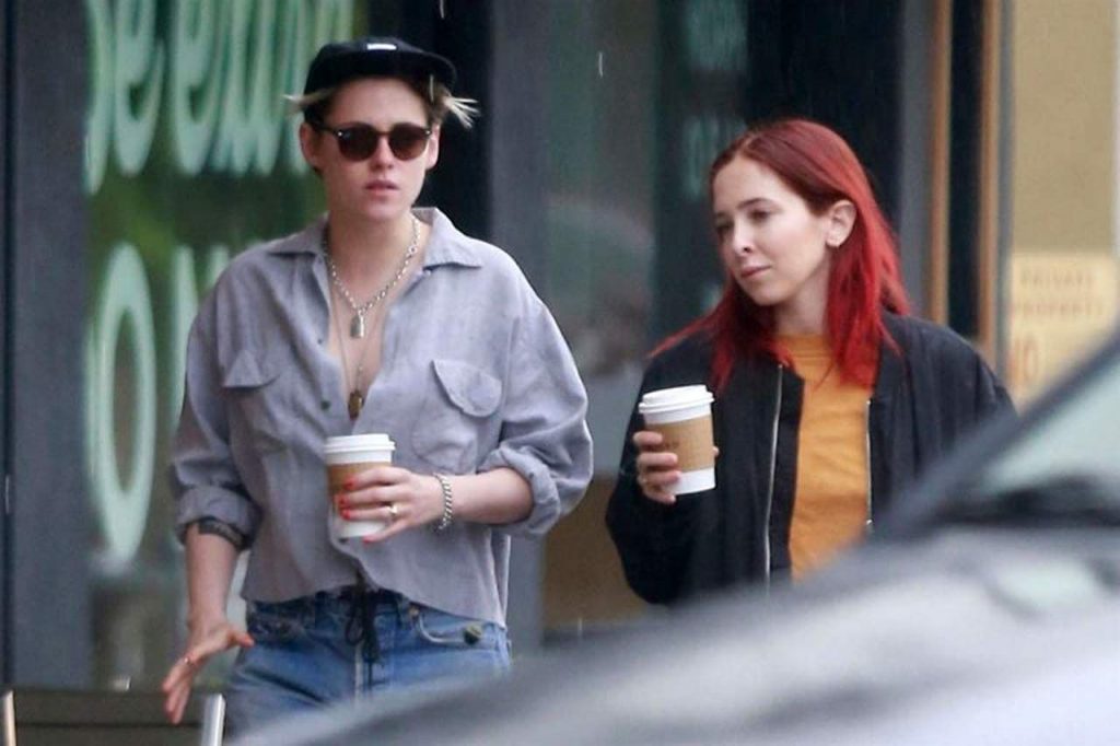 One of the most popular lesbian actresses, Kristen Stewart’s braless appearance dragged the attention while she was out on the street with her ugly girlfriend, Sara Dinkin! The dude and ugly lesbians were taking coffee and gave us the bird! Kristen wore a grey shirt, and her boobs were seen from the side!