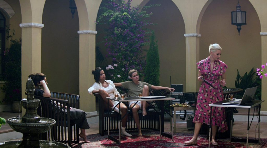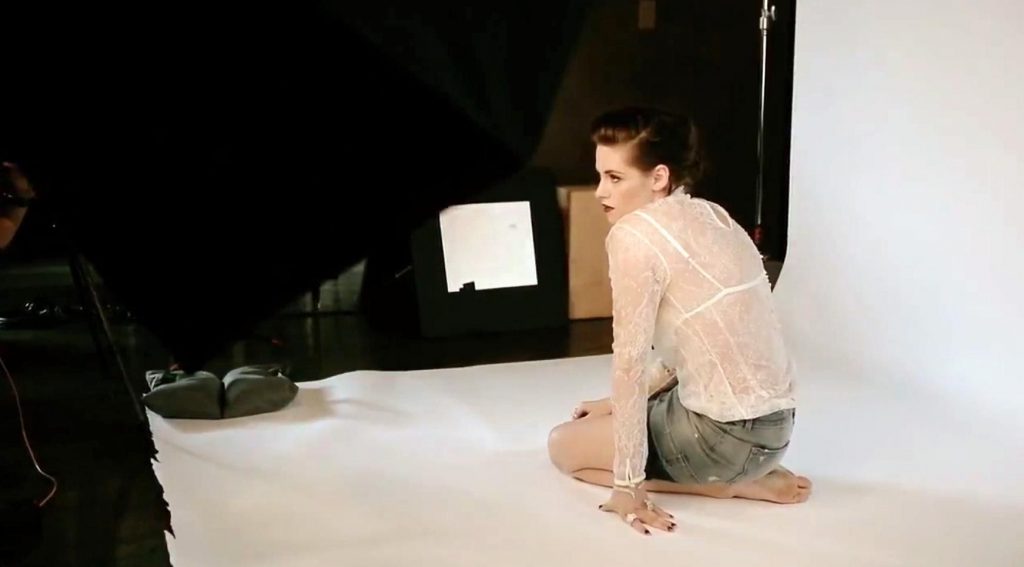 Kristen Stewart est réveillée au lit par quelques gars. Elle porte un soutien-gorge vintage puis les gars montent dans le lit avec elle et chacun à leur tour embrasse Kristen.
