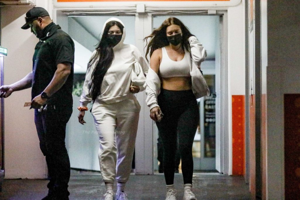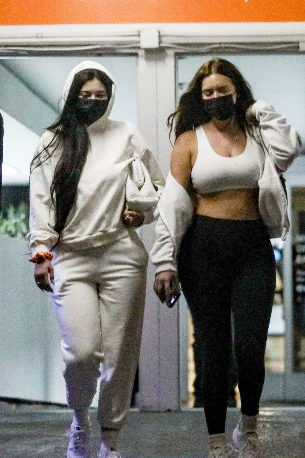 Mannequin et star de la télé-réalité Kylie Jenner et sa meilleure amie au décolleté généreux Anastasia Karanikolaou sont vues quittant une clinique de soins de la peau à Beverly Hills, 22/01/2021.