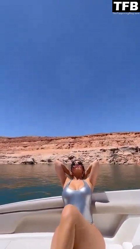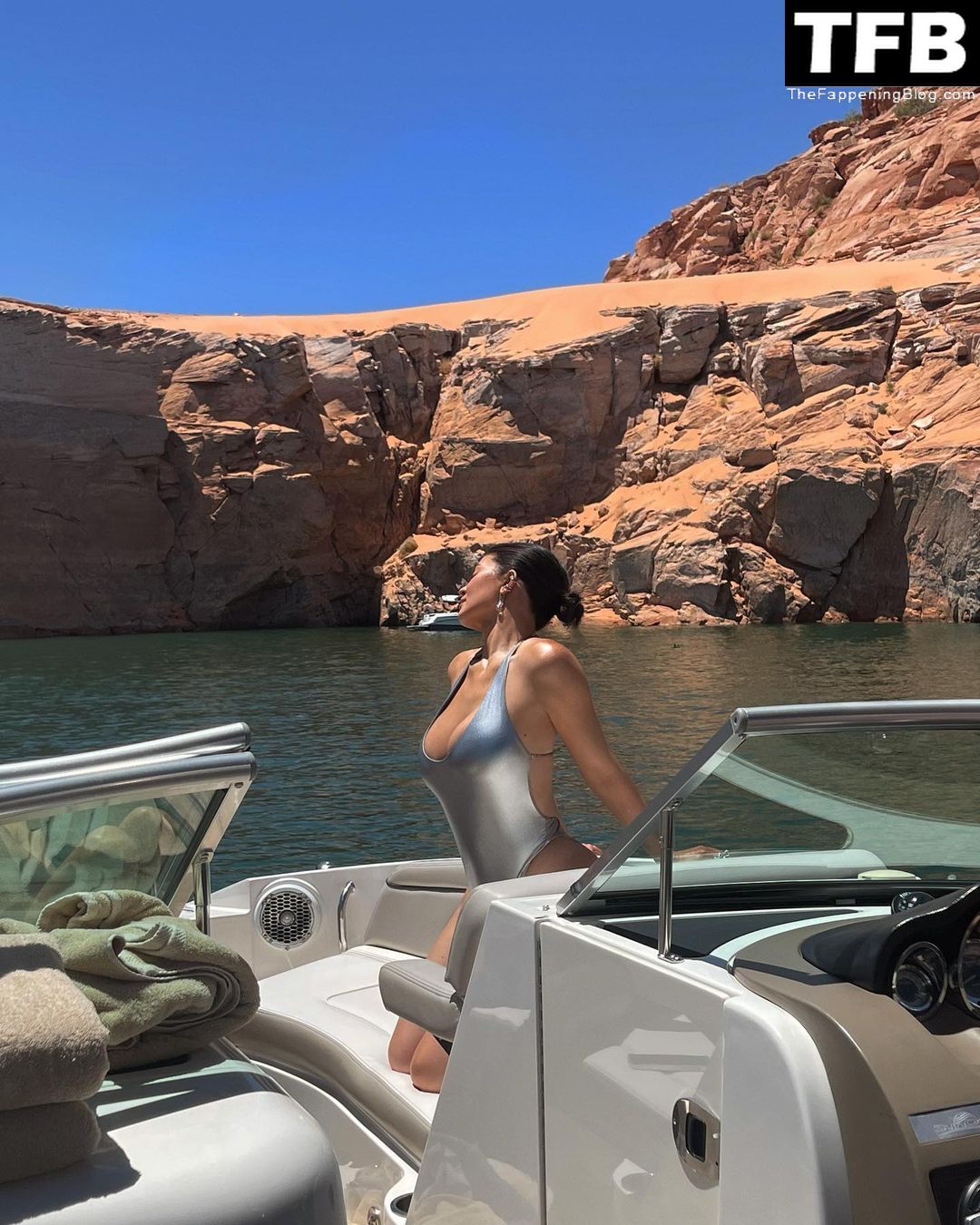 Kylie Jenner exhibe ses gros seins en posant dans un maillot une pièce argenté pendant ses vacances – Instagram, 06/03/2022.