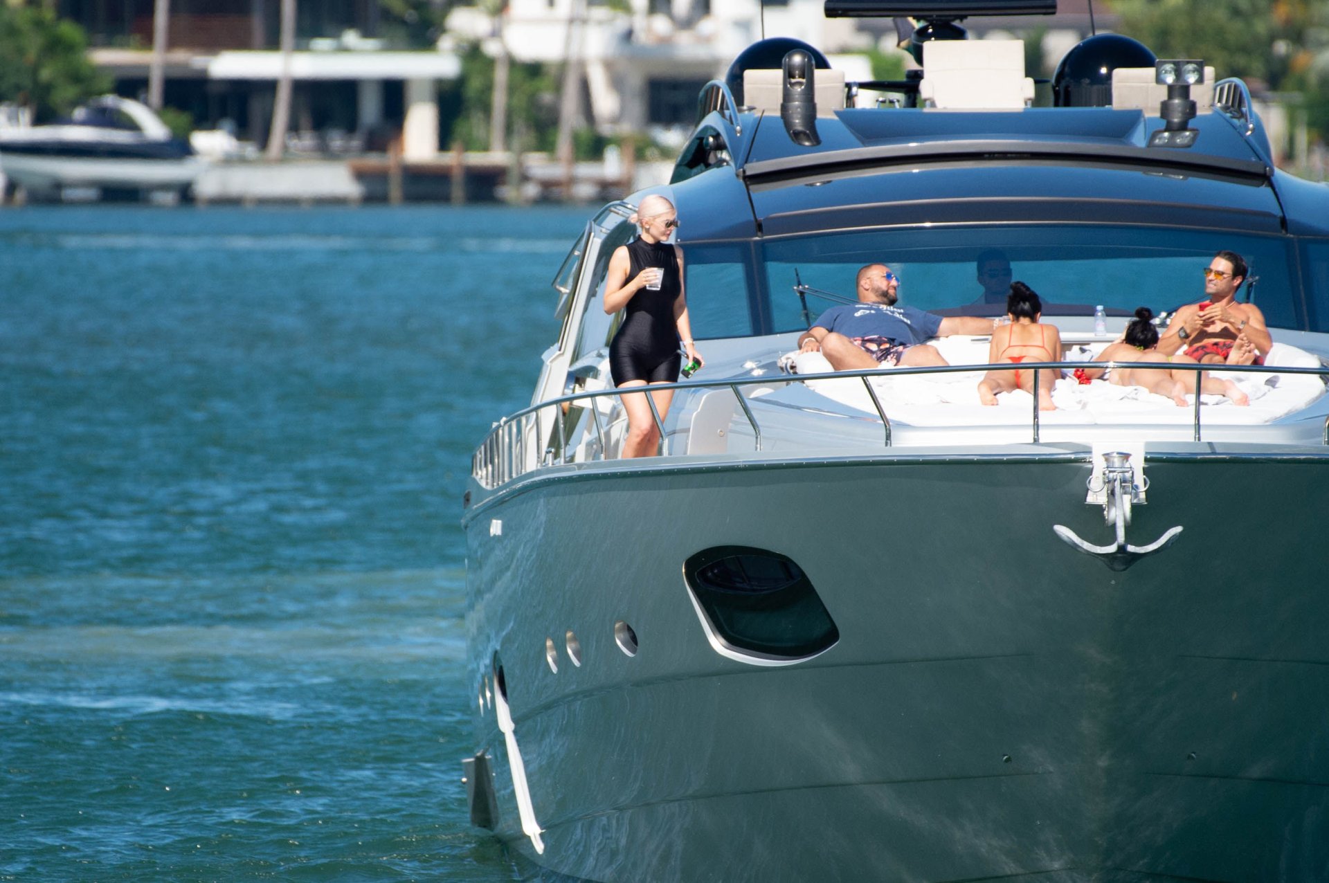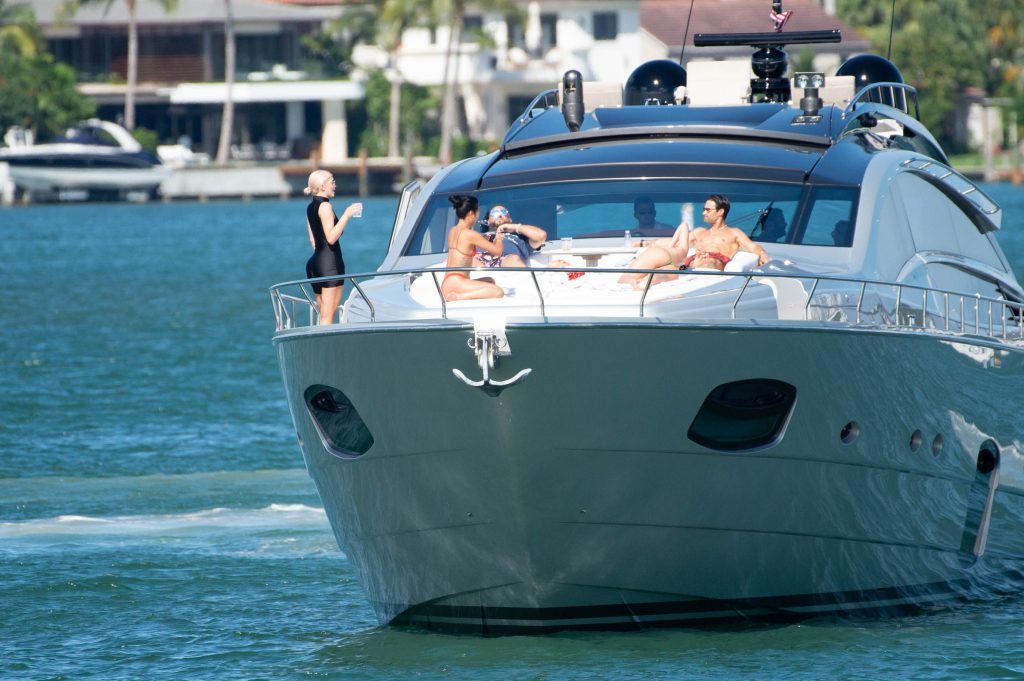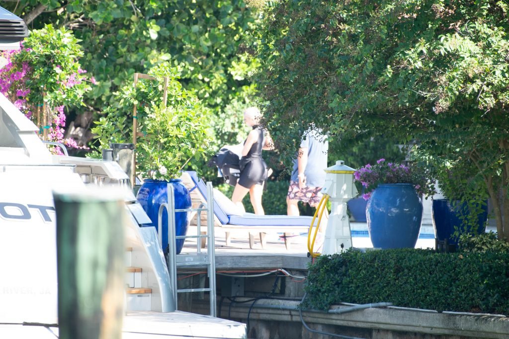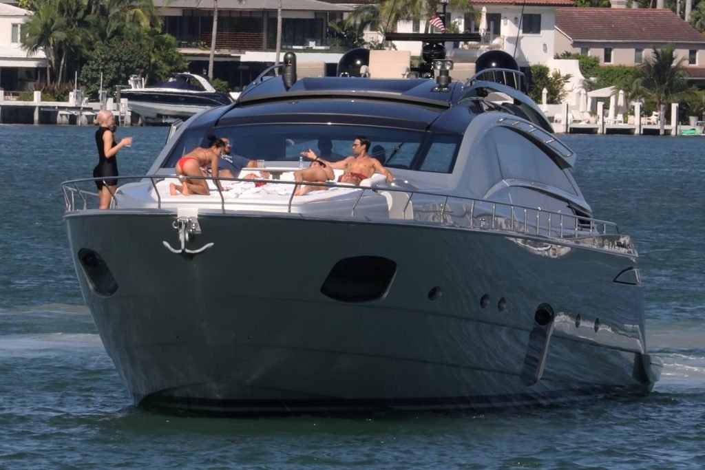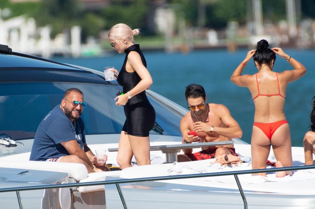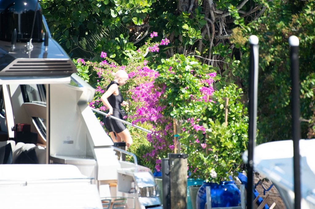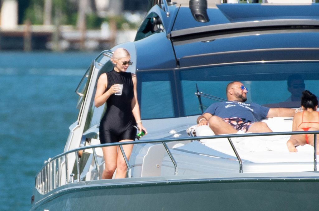 Kylie Jenner (21 ans) monte à bord du Groot avec sa fille Stormi et sa meilleure amie Jordyn Woods à Miami Beach, le 01/10/2018. On voit Kylie emmener son bébé à bord puis profiter du soleil et de la nourriture avec ses amies tout en exhibant ses courbes dans un maillot de bain noir une pièce.