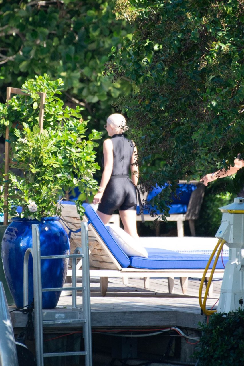 Plus de photos comme celle-ci... qui montrent cette clown dégoûtante telle qu'elle est vraiment — une prostituée déformée... tout comme sa sœur Kim. De loin et habillée, elle semble assez normale... mais en bikini... ce cul ressemble à une boîte carrée... les hanches sont trop marquées... etc.