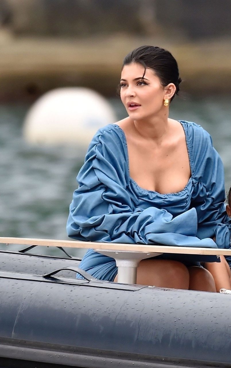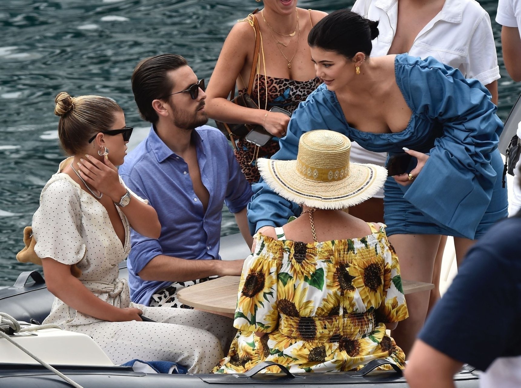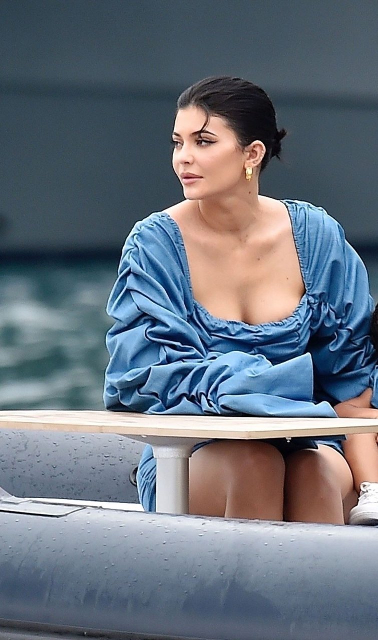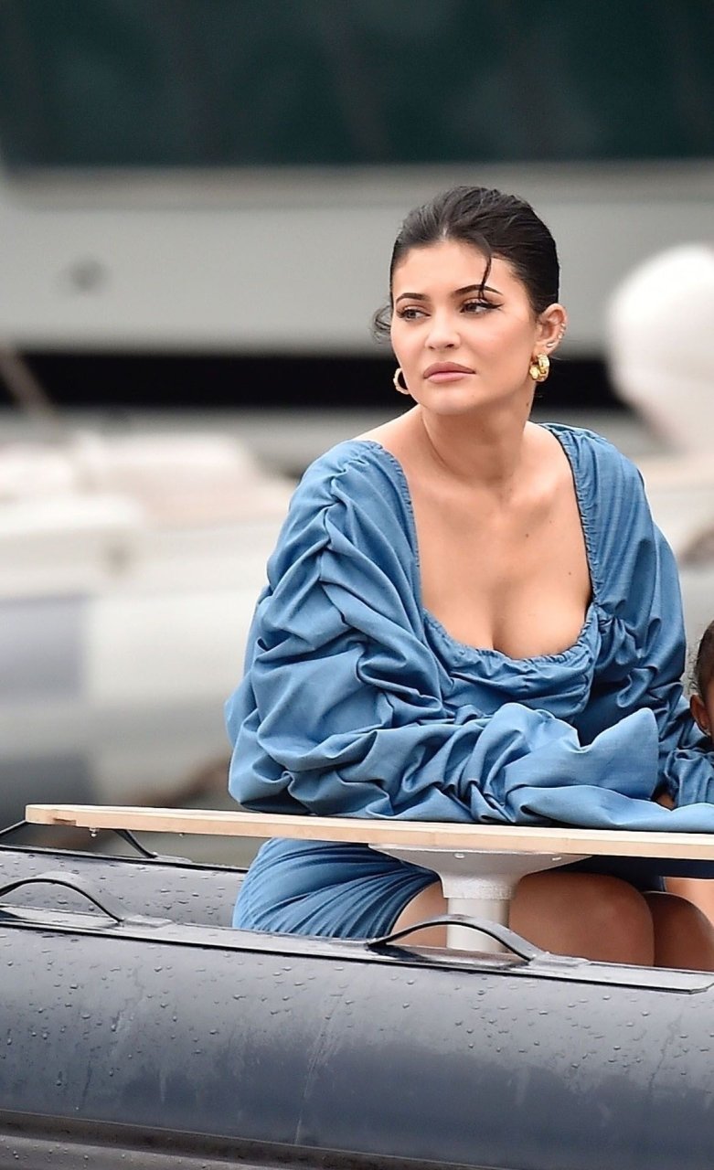 Kylie Jenner profite de la journée avec sa charmante fille Stormy portant des robes en jean à volants assorties de TLZ L’FEMME à Portofino en famille, 12/08/2019. La fille d’anniversaire Kylie et Stormy admirent les paysages avec papa Travis Scott, Scott Disick, Sofia Richie ainsi que sa mère Kris Jenner et Corey Gamble.