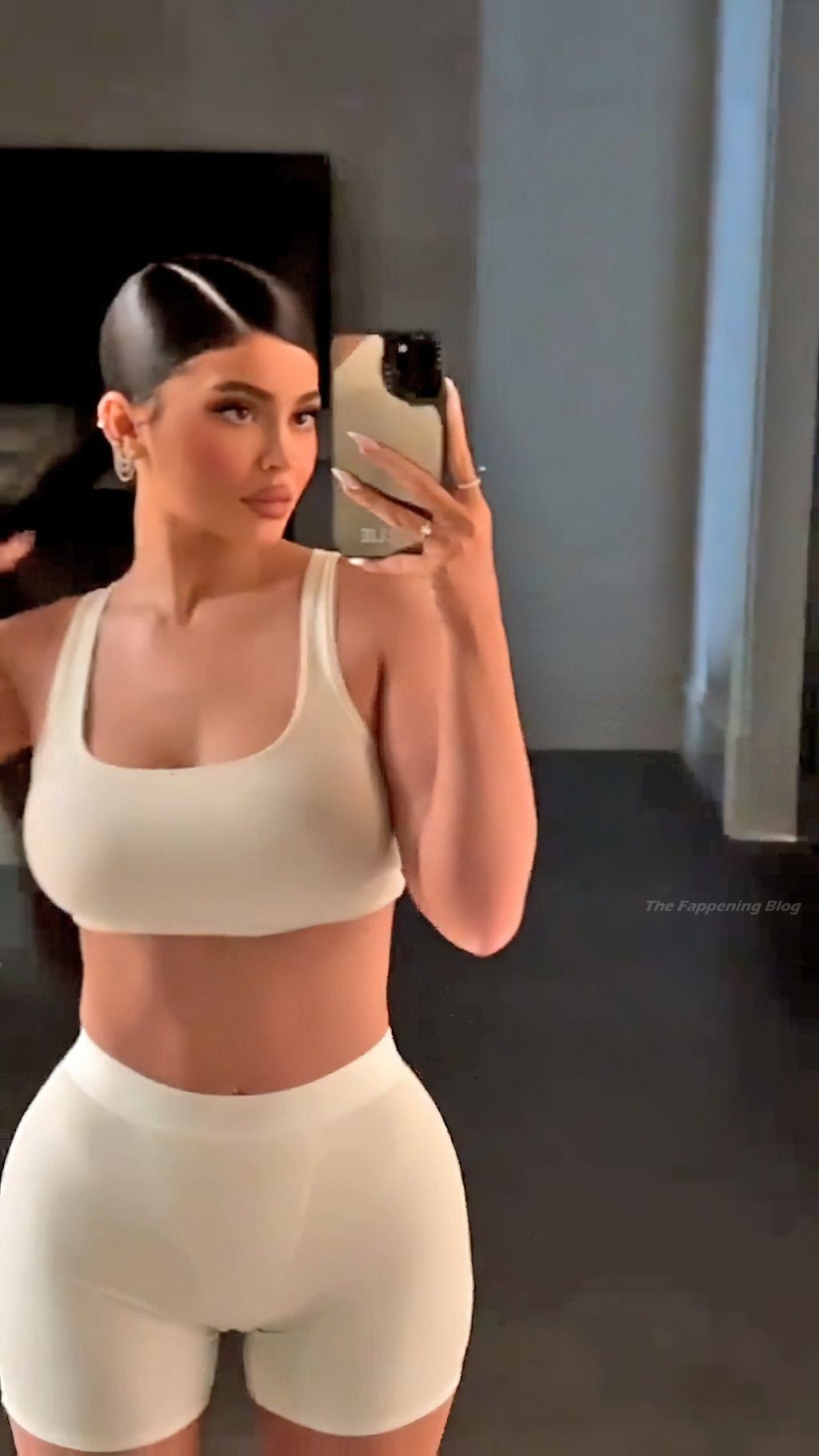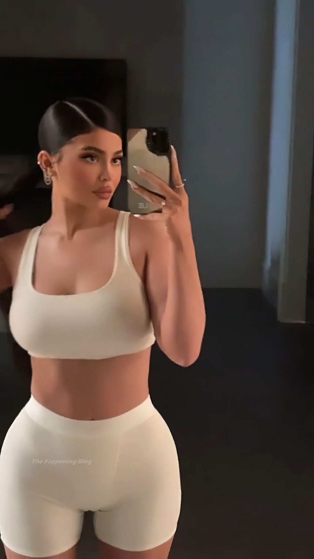 La milliardaire Kylie Jenner montre ses jolis seins et son cameltoe en posant dans sa culotte et son haut moulants dans la vidéo selfie sur les réseaux sociaux ci-dessous, 14/01/2021.