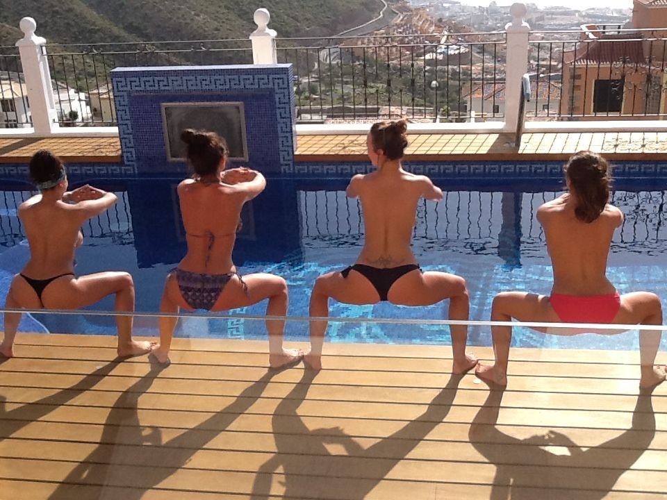 Une femme jolie avec des amies jolies. Elles semblent toutes en excellente forme. Qu'est-ce qu'on pourrait ne pas aimer ?