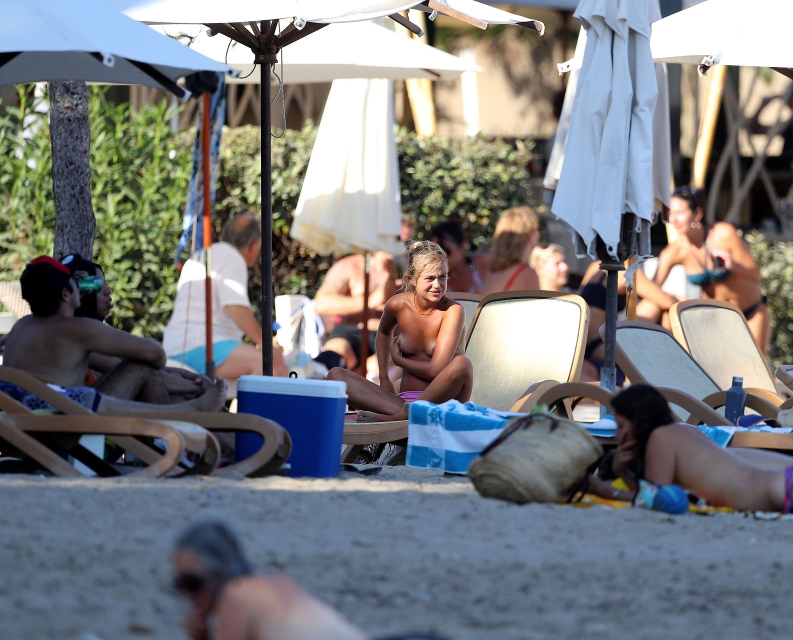 Ce n'est pas que je me plaigne, mais c'est étrange qu'elle soit la seule à être topless/nue là-bas. Jolis seins quand même :) Parfaits et naturels.