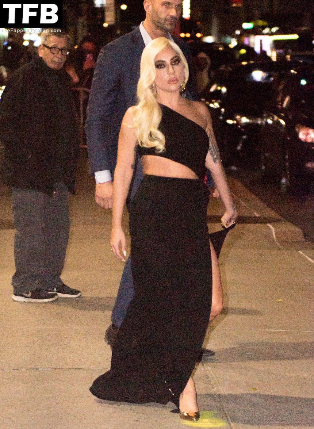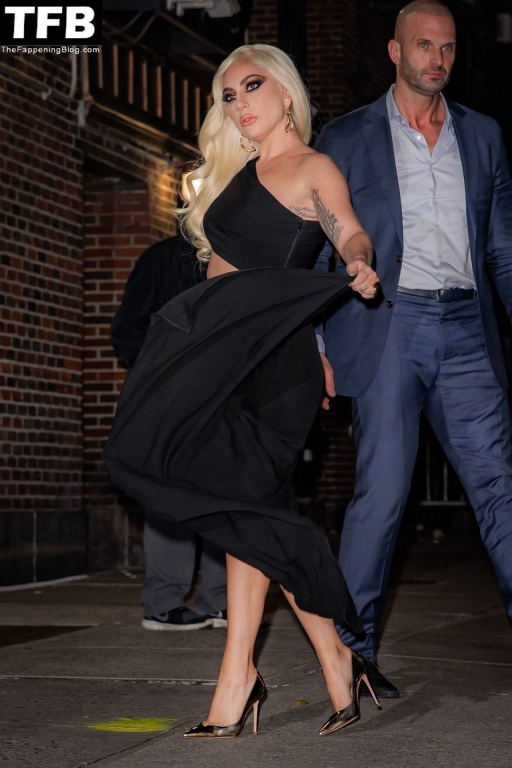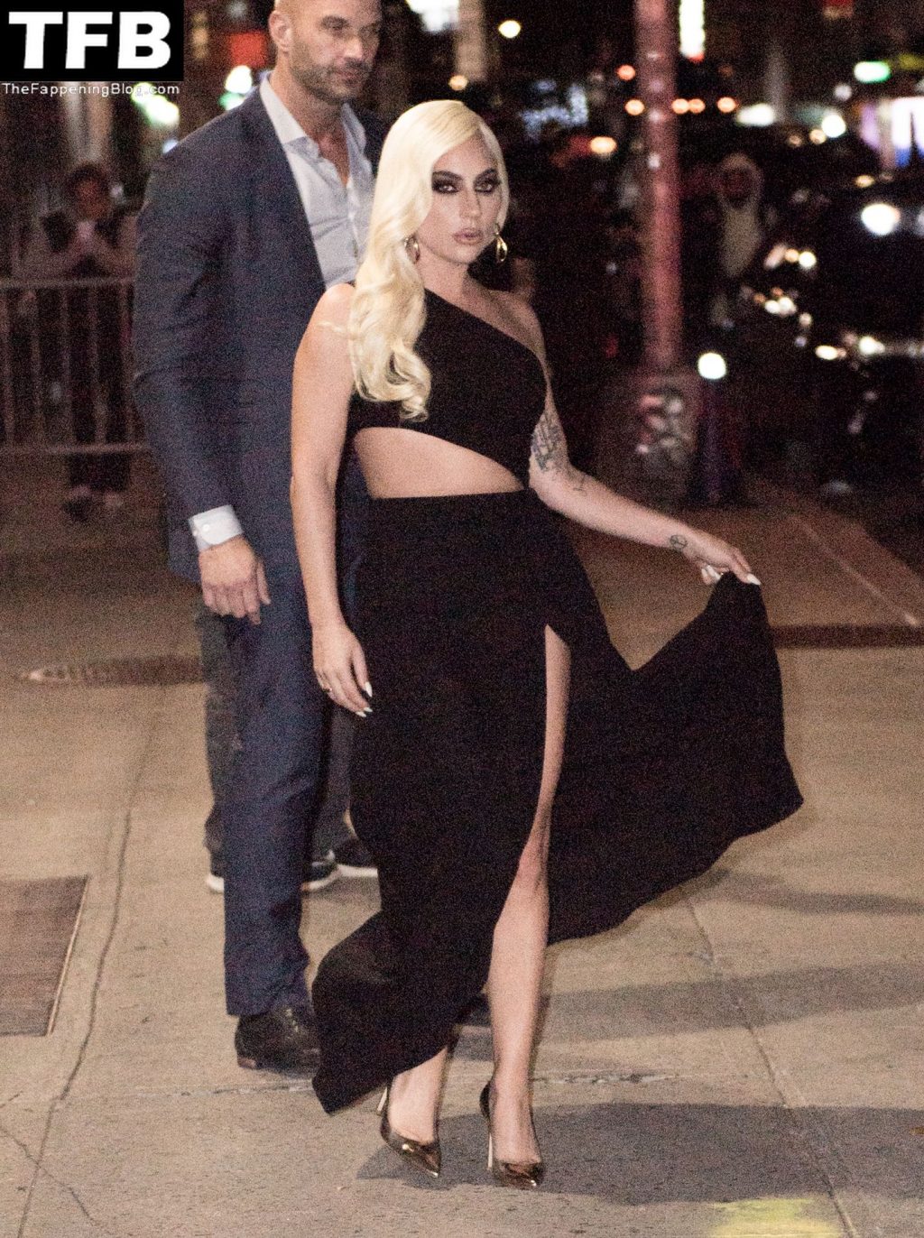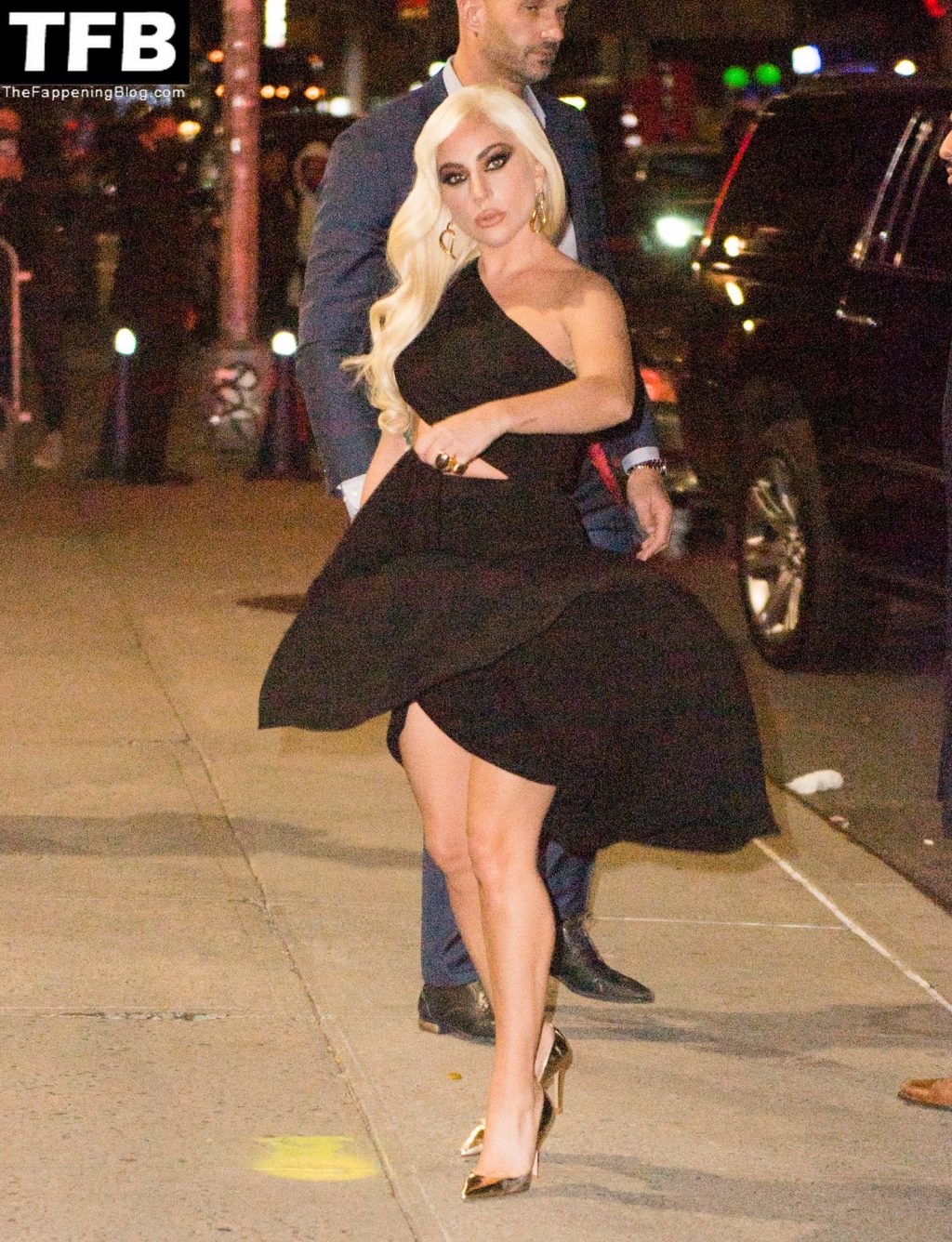 Lady Gaga a été vue en train de quitter l’émission de Stephen Colbert à Manhattan, portant une robe fendue sur la jambe, posant comme Marilyn Monroe… avec sa lingerie couleur nude visible. L’actrice devenue chanteuse est sortie pour promouvoir son nouveau film ‘House of Gucci’.