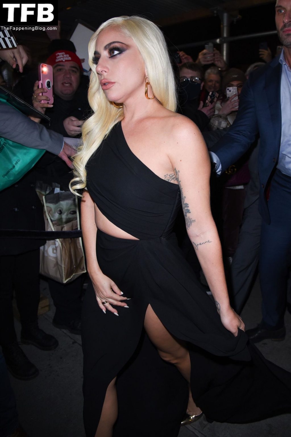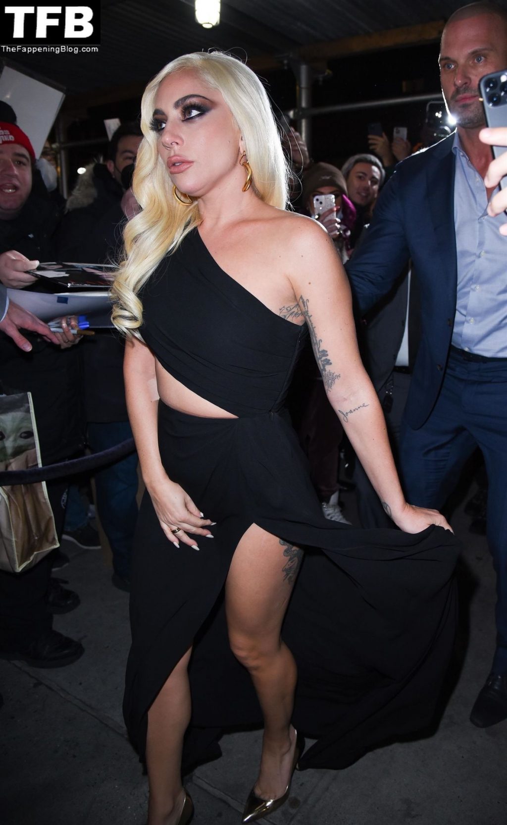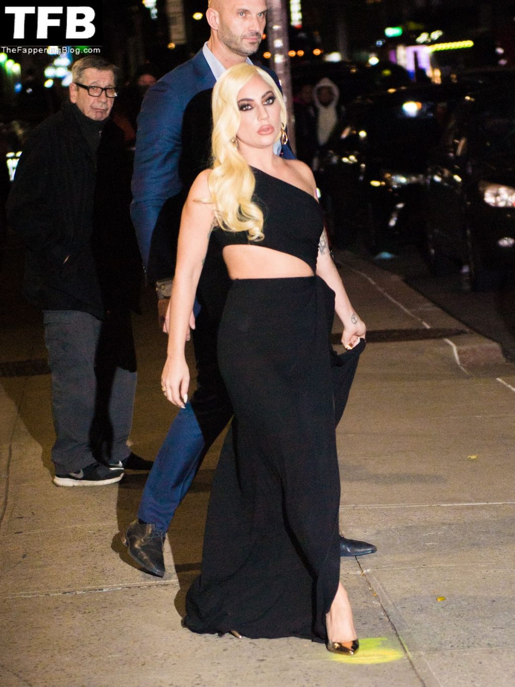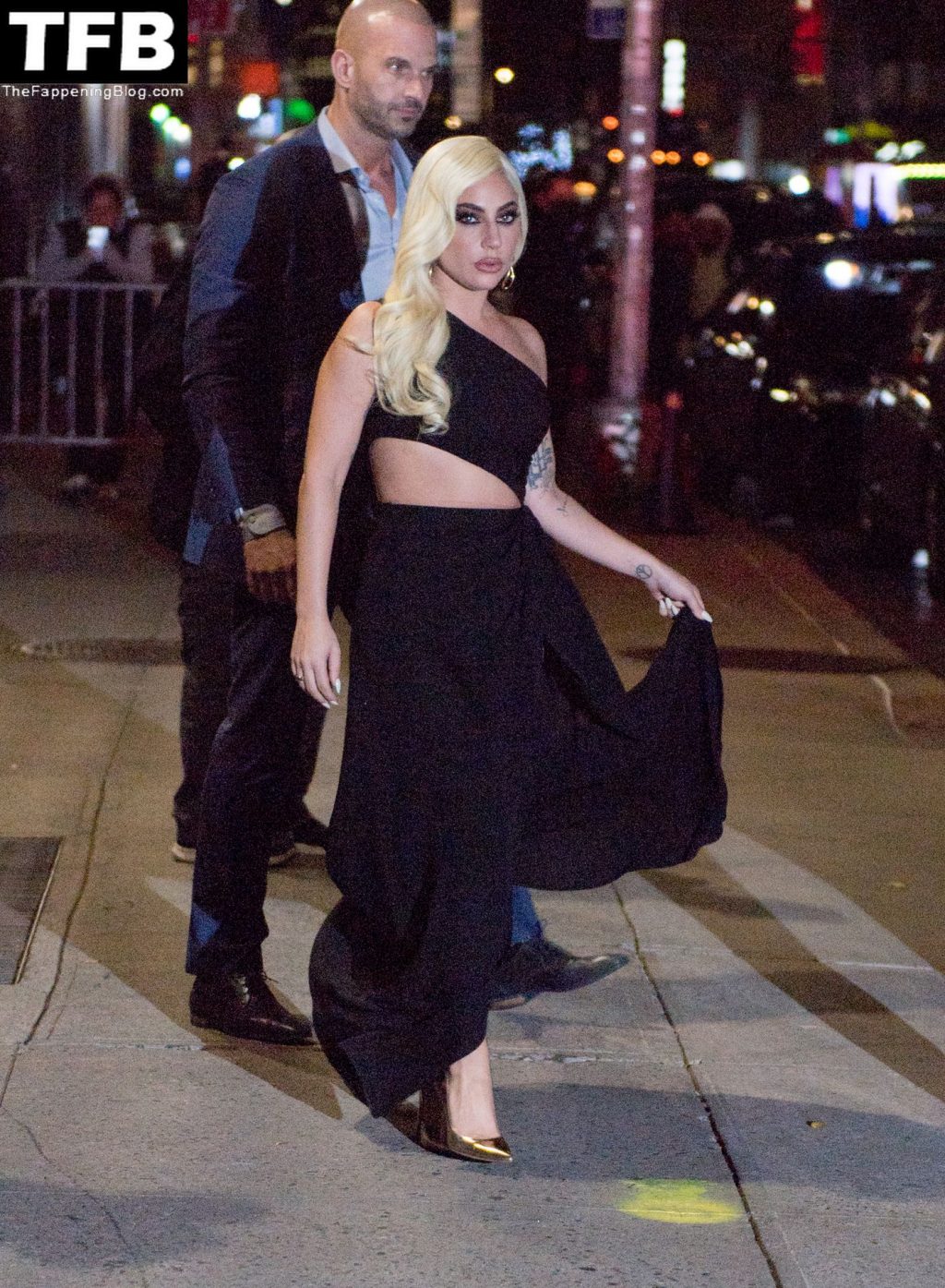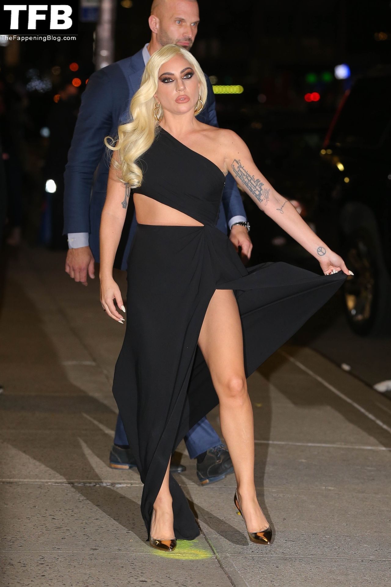 Lady Gaga a été vue en train de quitter l’émission de Stephen Colbert à Manhattan, portant une robe fendue sur la jambe, posant comme Marilyn Monroe… avec sa lingerie couleur nude visible. L’actrice devenue chanteuse est sortie pour promouvoir son nouveau film ‘House of Gucci’.