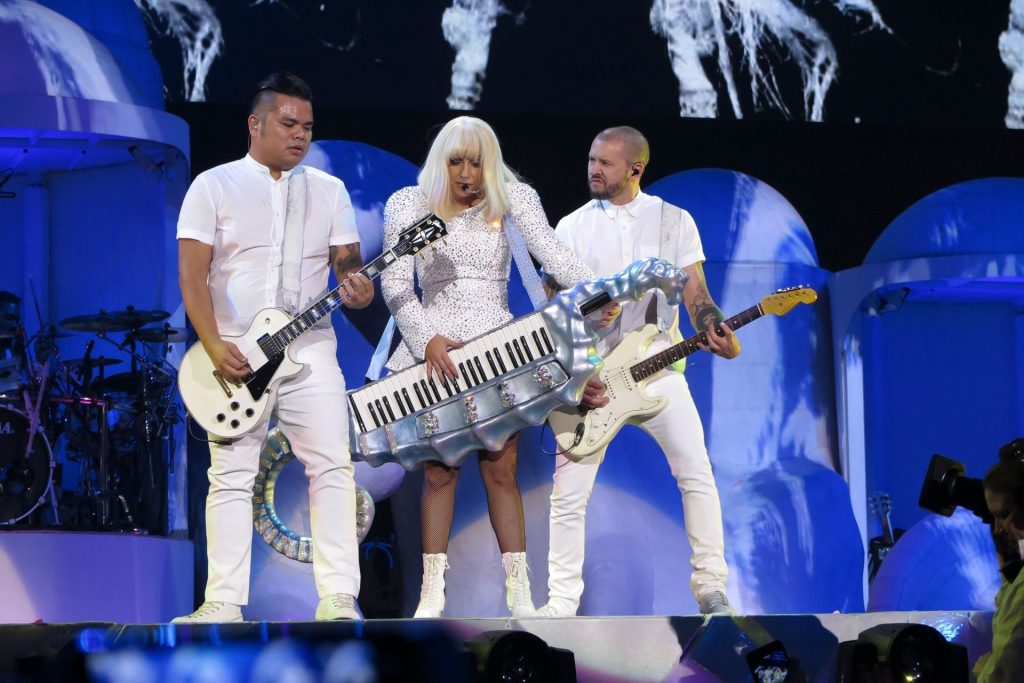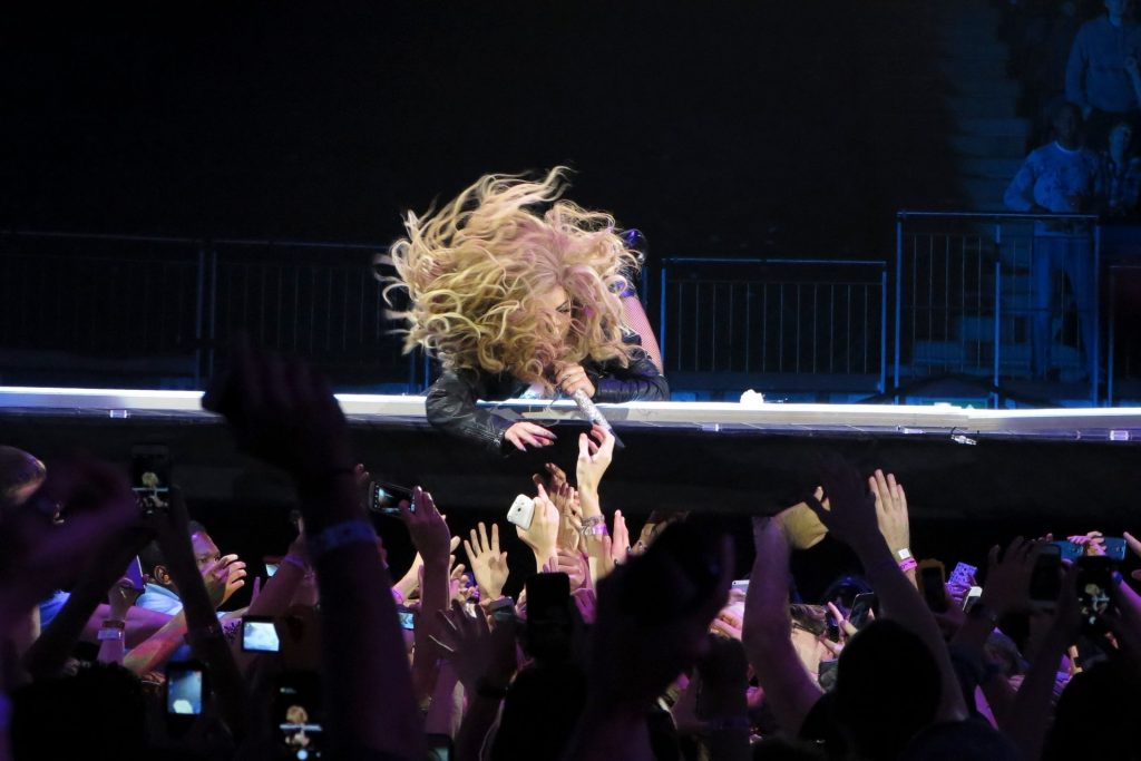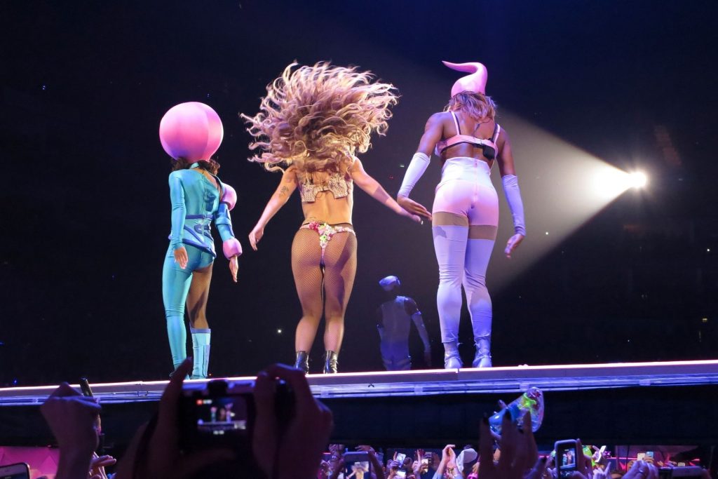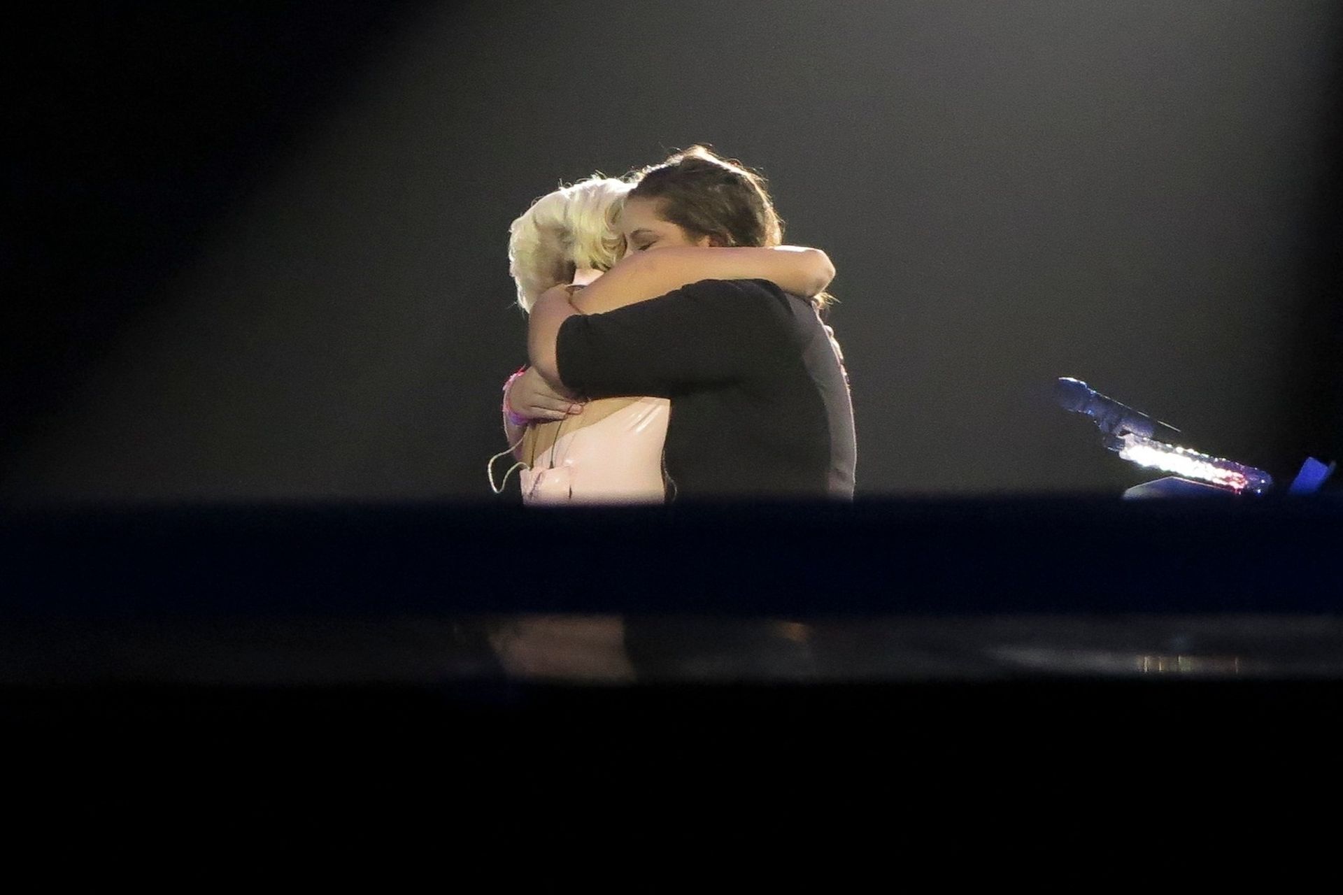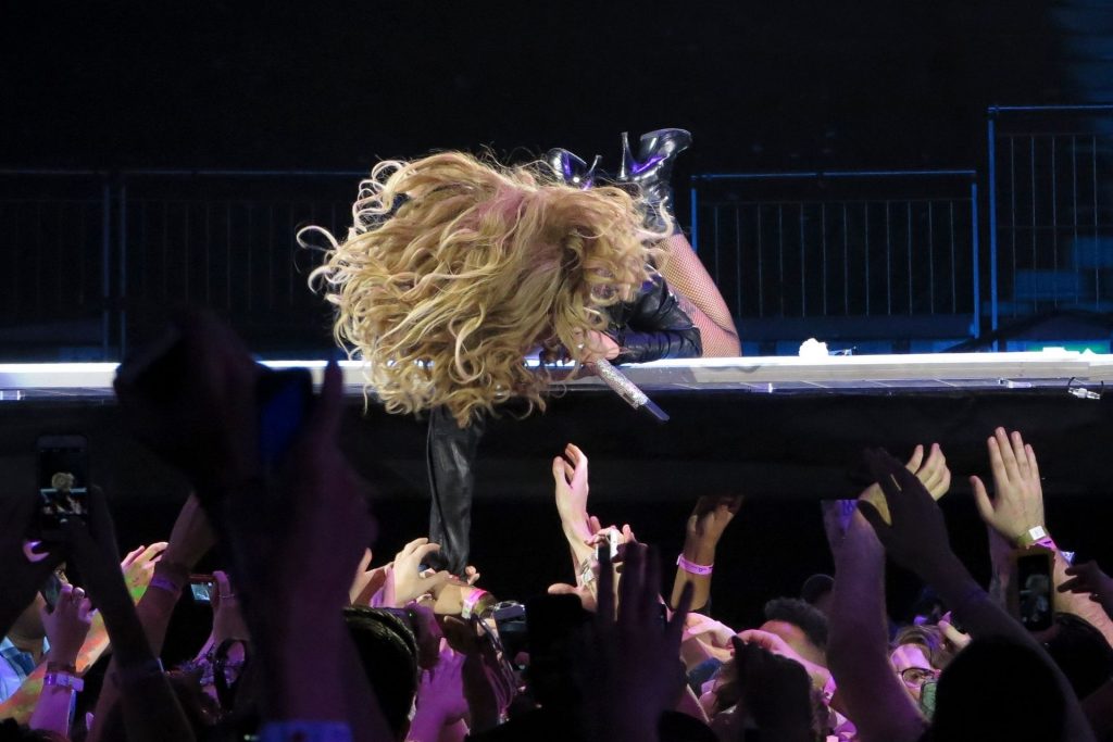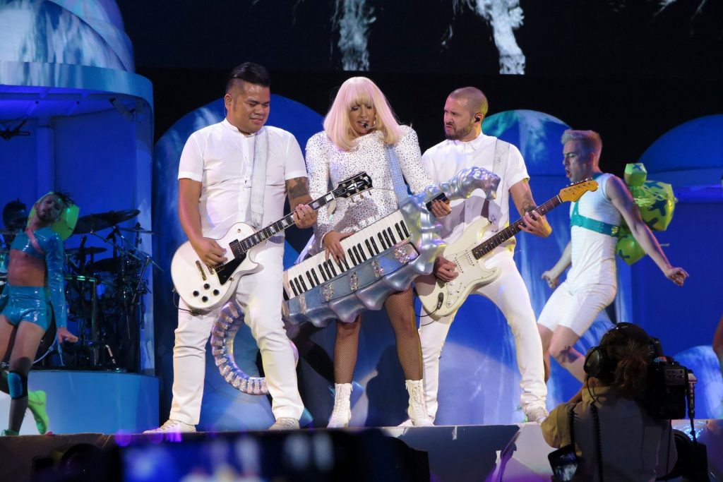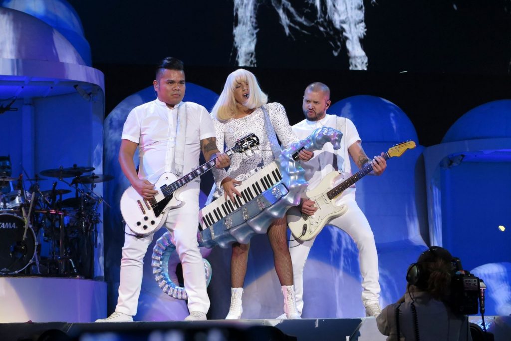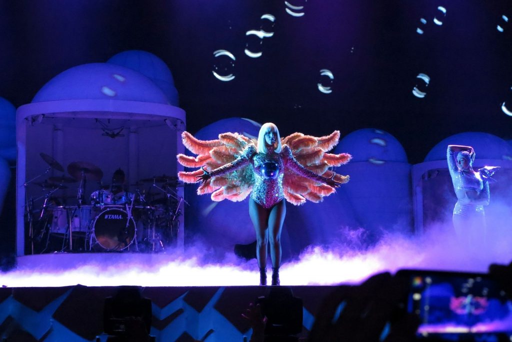 La chanteuse Lady Gaga se produit à l’O2 Arena de Londres, en Angleterre, le 23/10/2014. Elle a surpris avec ses nombreuses tenues et ses poses sexy sur scène.