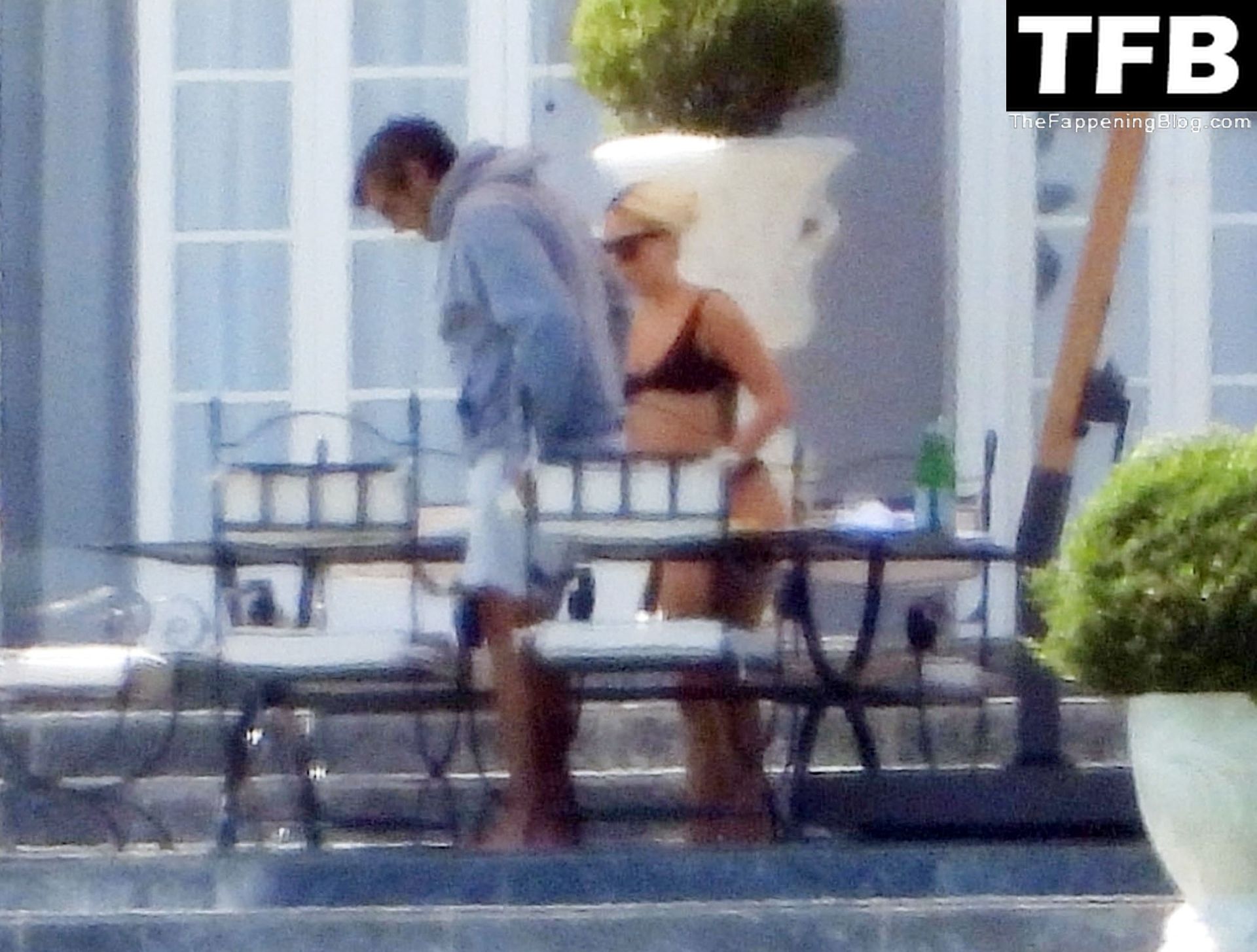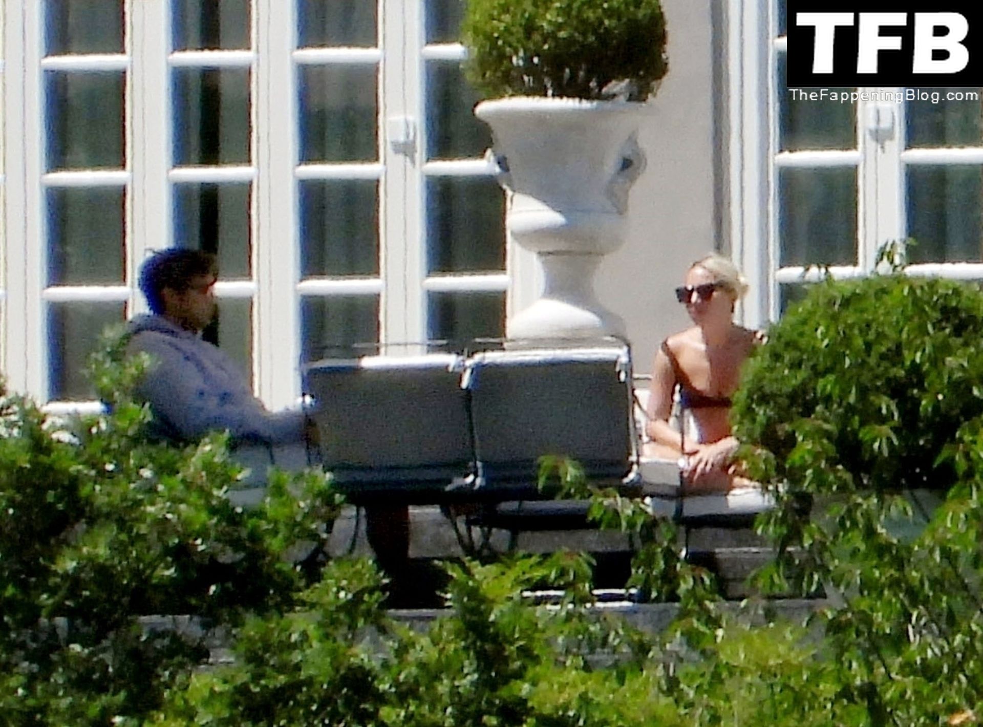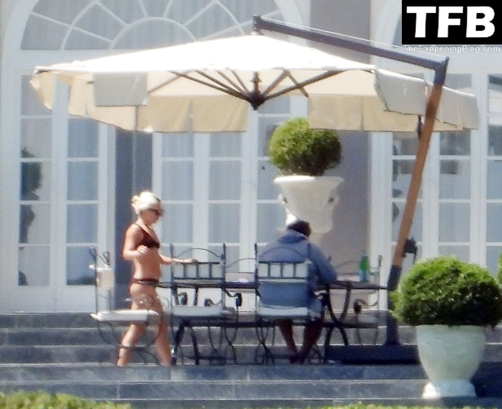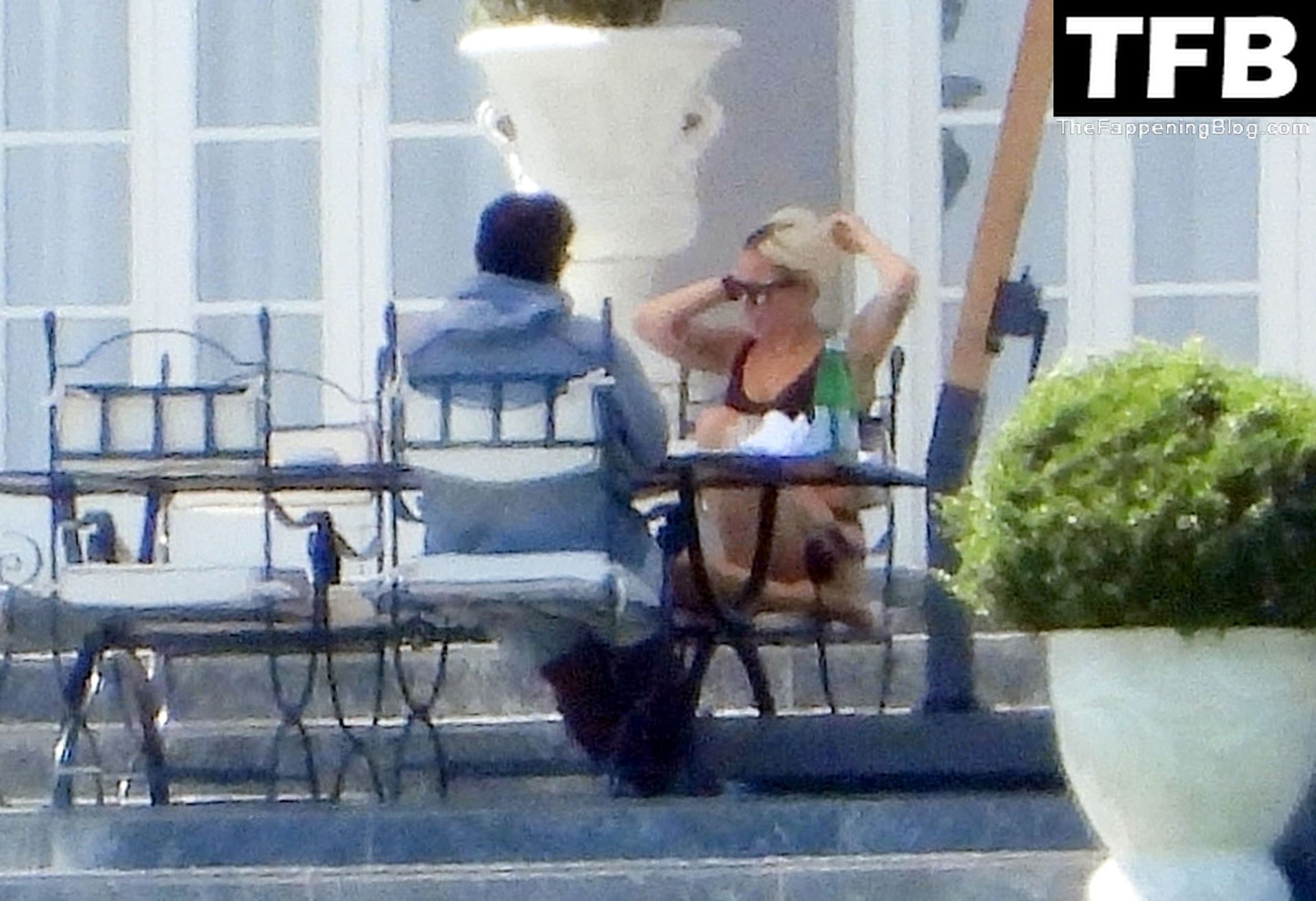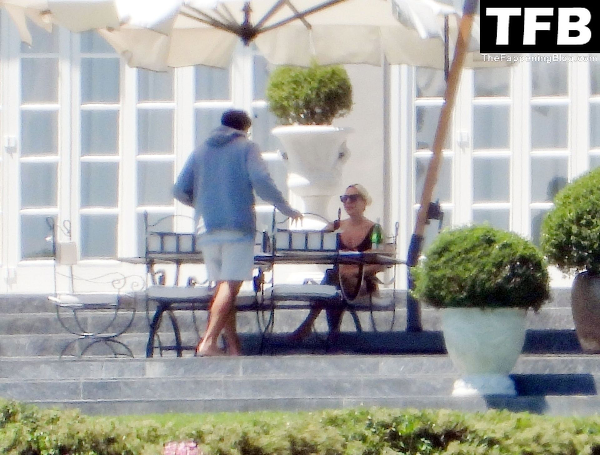 La chanteuse, auteure-compositrice et actrice américaine Lady Gaga, qui a été engagée pour se produire en cadeau surprise (un cadeau d’une valeur de 500 000 €) par l’un des invités au mariage du milliardaire magnat des fonds spéculatifs et donateur Tory Alan Howard, est photographiée en train de prendre son petit-déjeuner à la Villa Bonomi avec son petit ami, entrepreneur et investisseur Michael Polansky, le 25/06/2022.