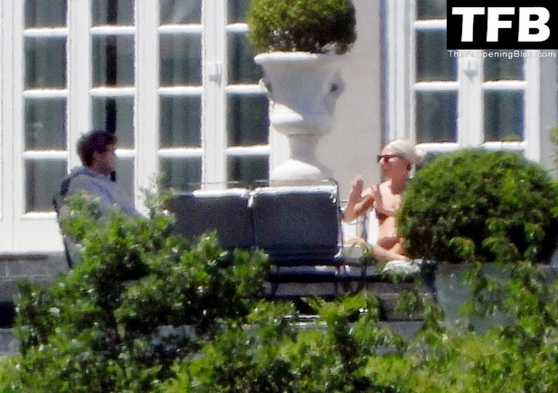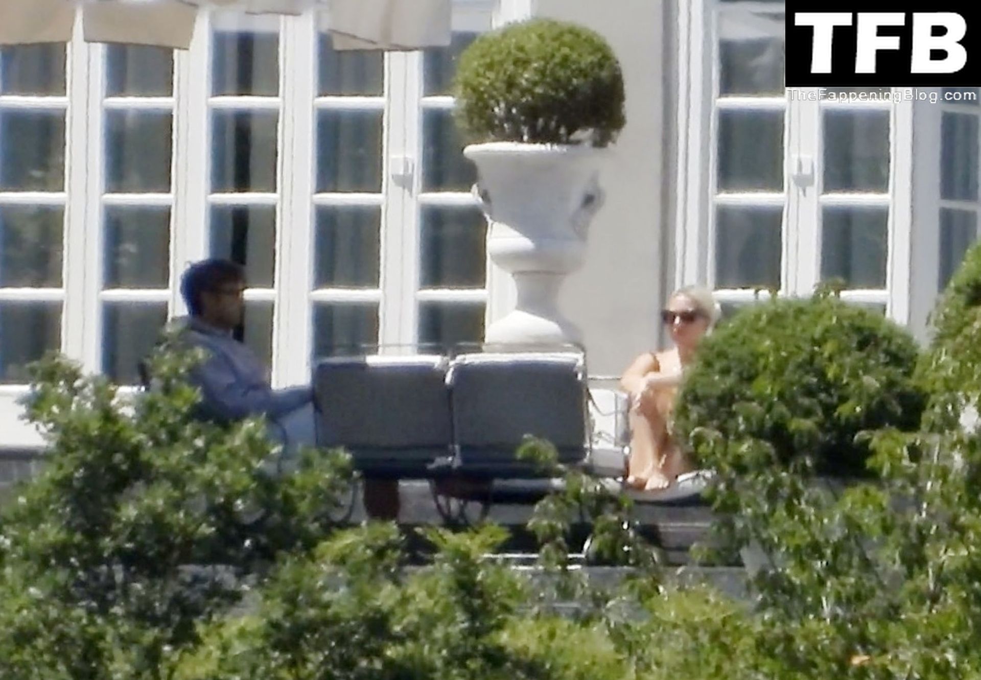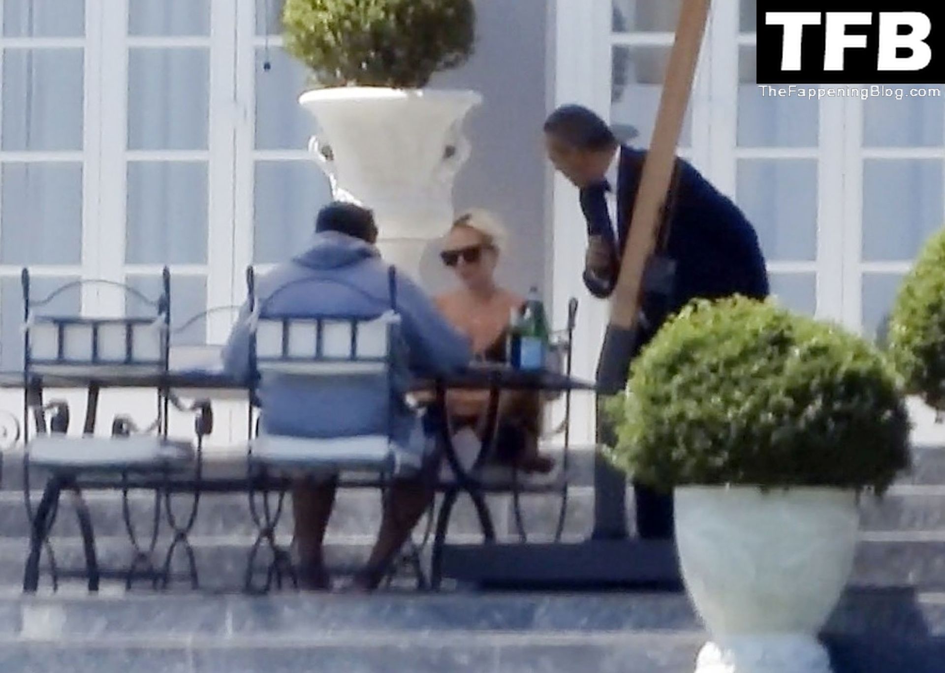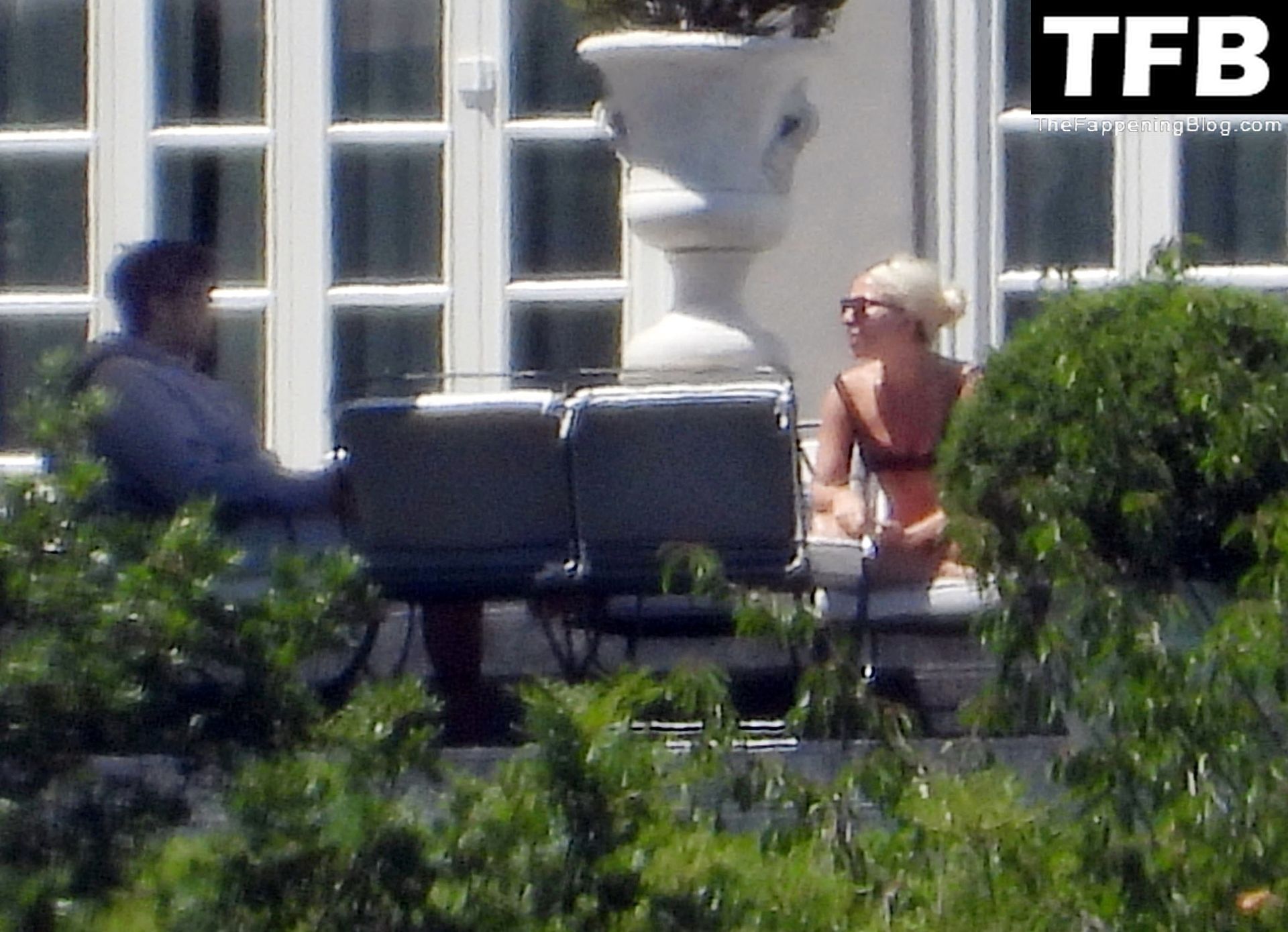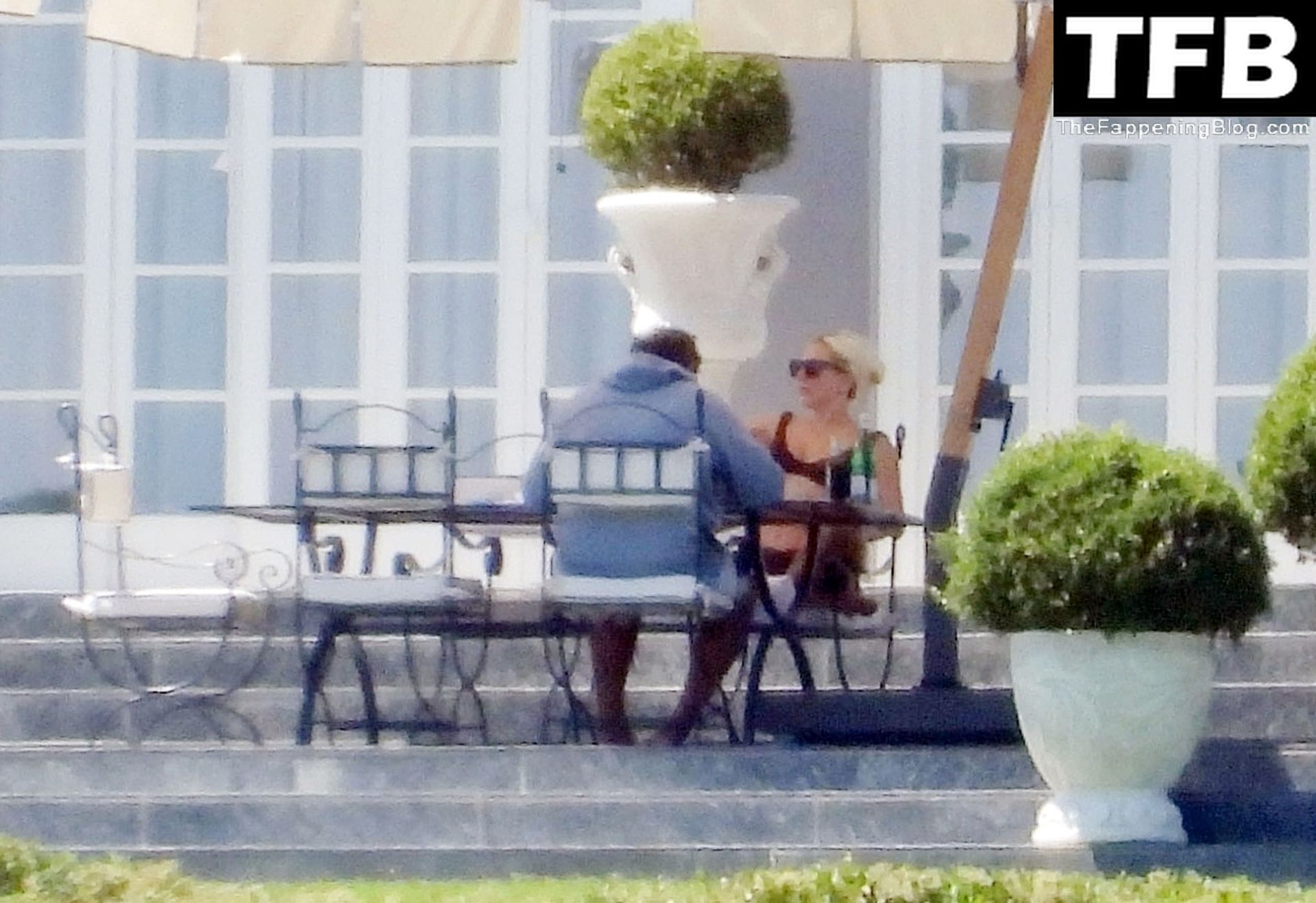 La chanteuse, auteure-compositrice et actrice américaine Lady Gaga, qui a été engagée pour se produire en cadeau surprise (un cadeau d’une valeur de 500 000 €) par l’un des invités au mariage du milliardaire magnat des fonds spéculatifs et donateur Tory Alan Howard, est photographiée en train de prendre son petit-déjeuner à la Villa Bonomi avec son petit ami, entrepreneur et investisseur Michael Polansky, le 25/06/2022.