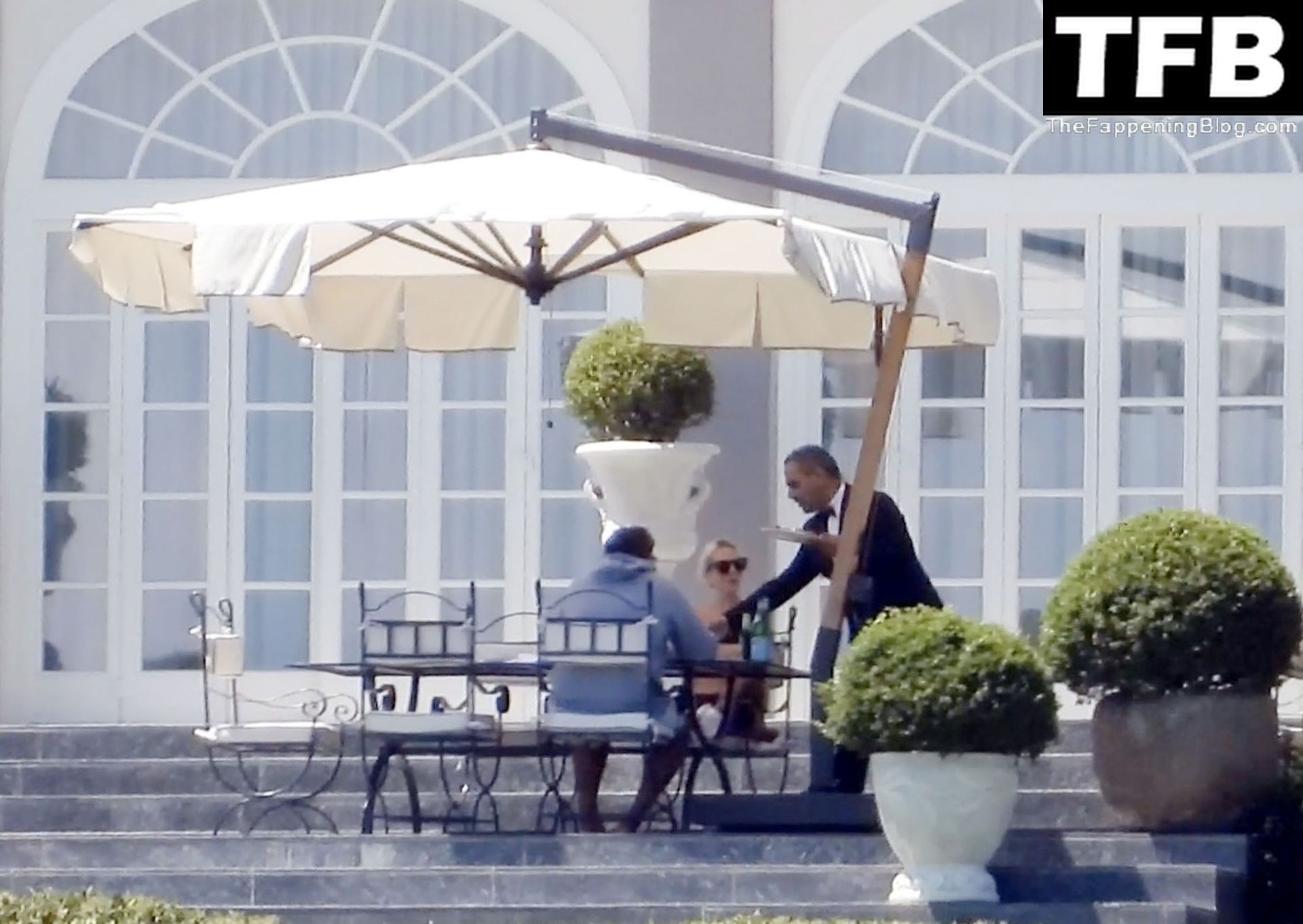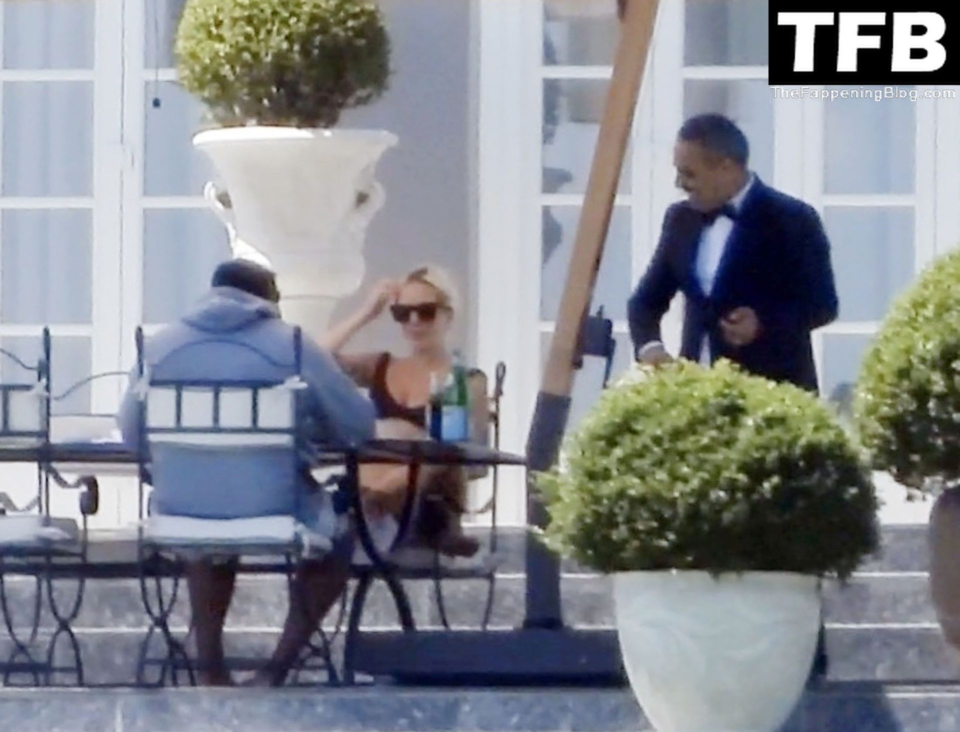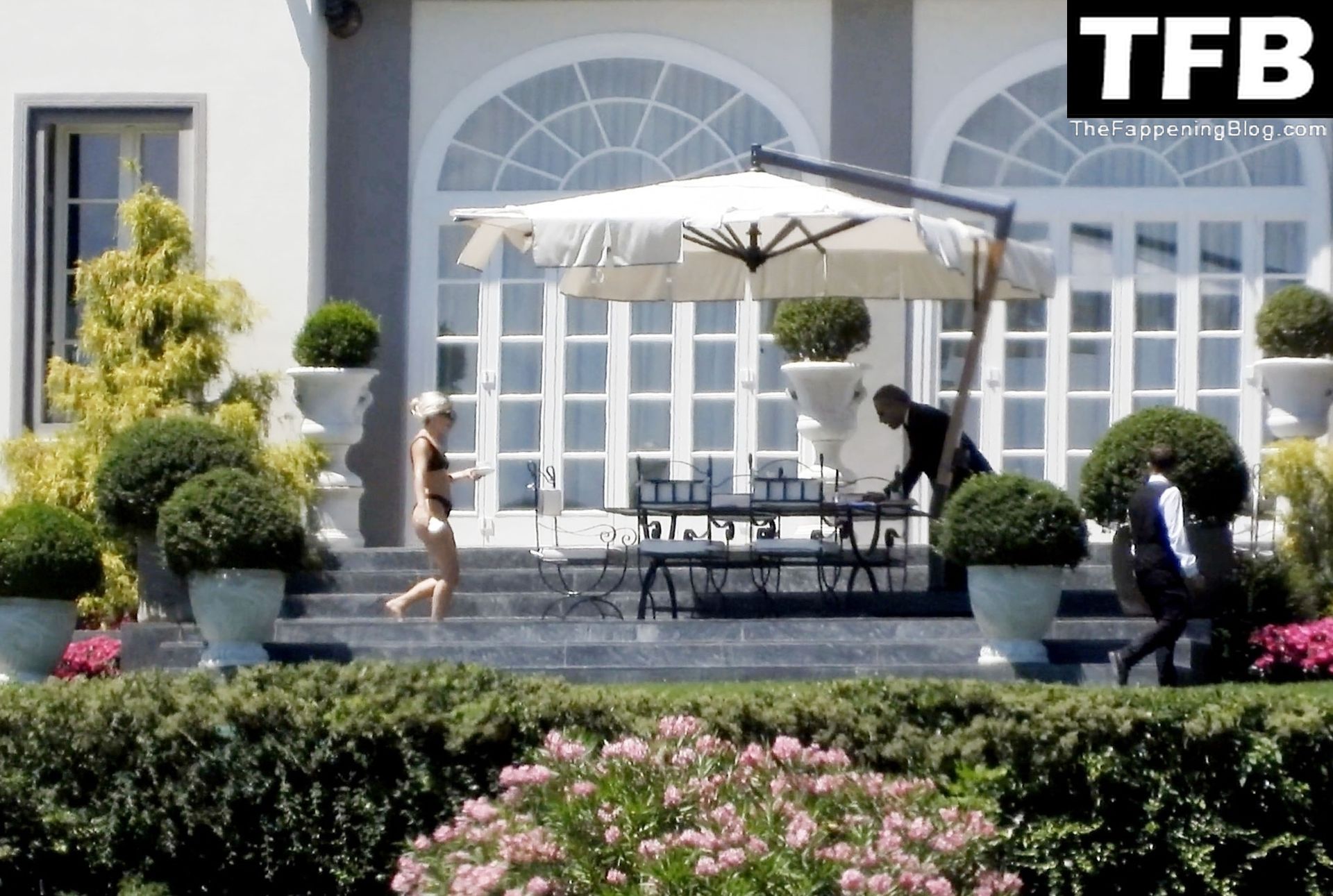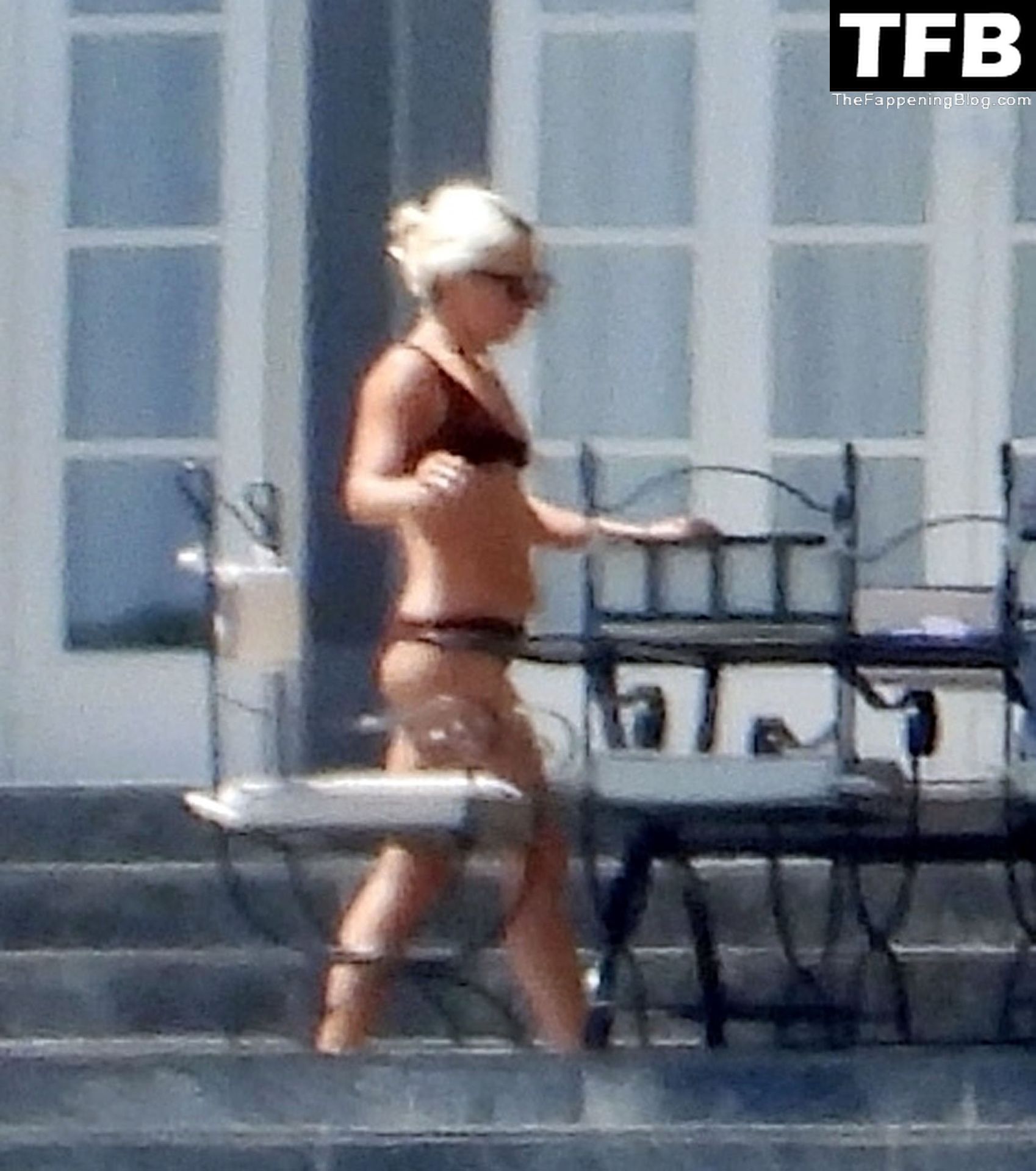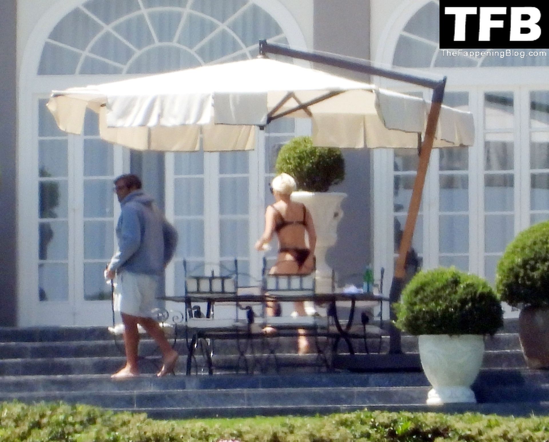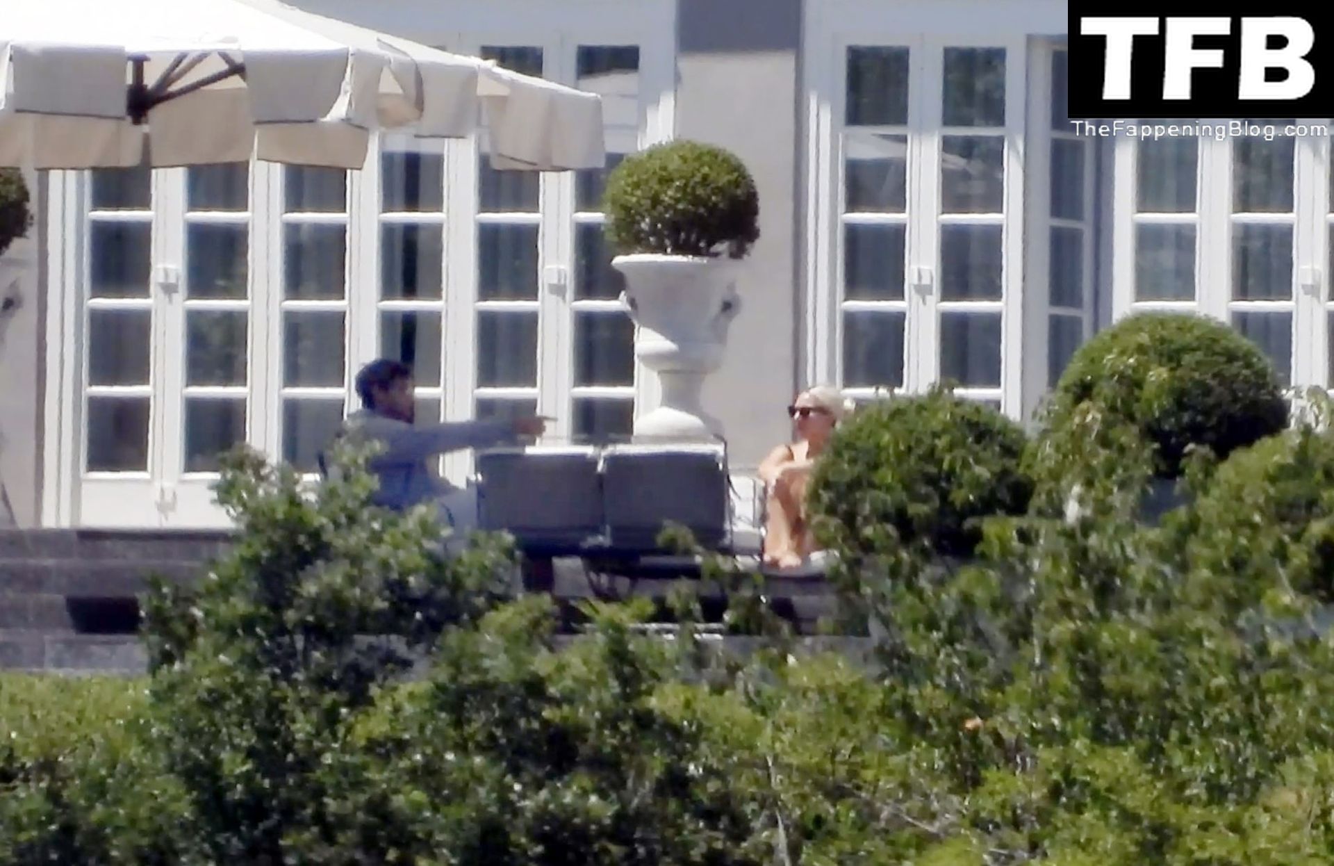 La chanteuse, auteure-compositrice et actrice américaine Lady Gaga, qui a été engagée pour se produire en cadeau surprise (un cadeau d’une valeur de 500 000 €) par l’un des invités au mariage du milliardaire magnat des fonds spéculatifs et donateur Tory Alan Howard, est photographiée en train de prendre son petit-déjeuner à la Villa Bonomi avec son petit ami, entrepreneur et investisseur Michael Polansky, le 25/06/2022.