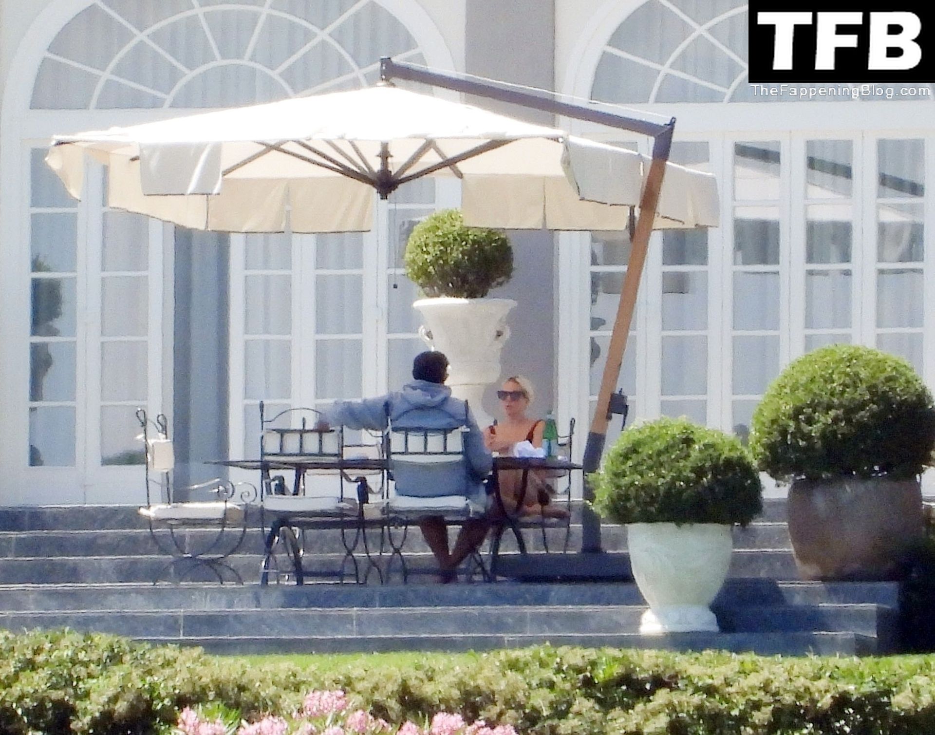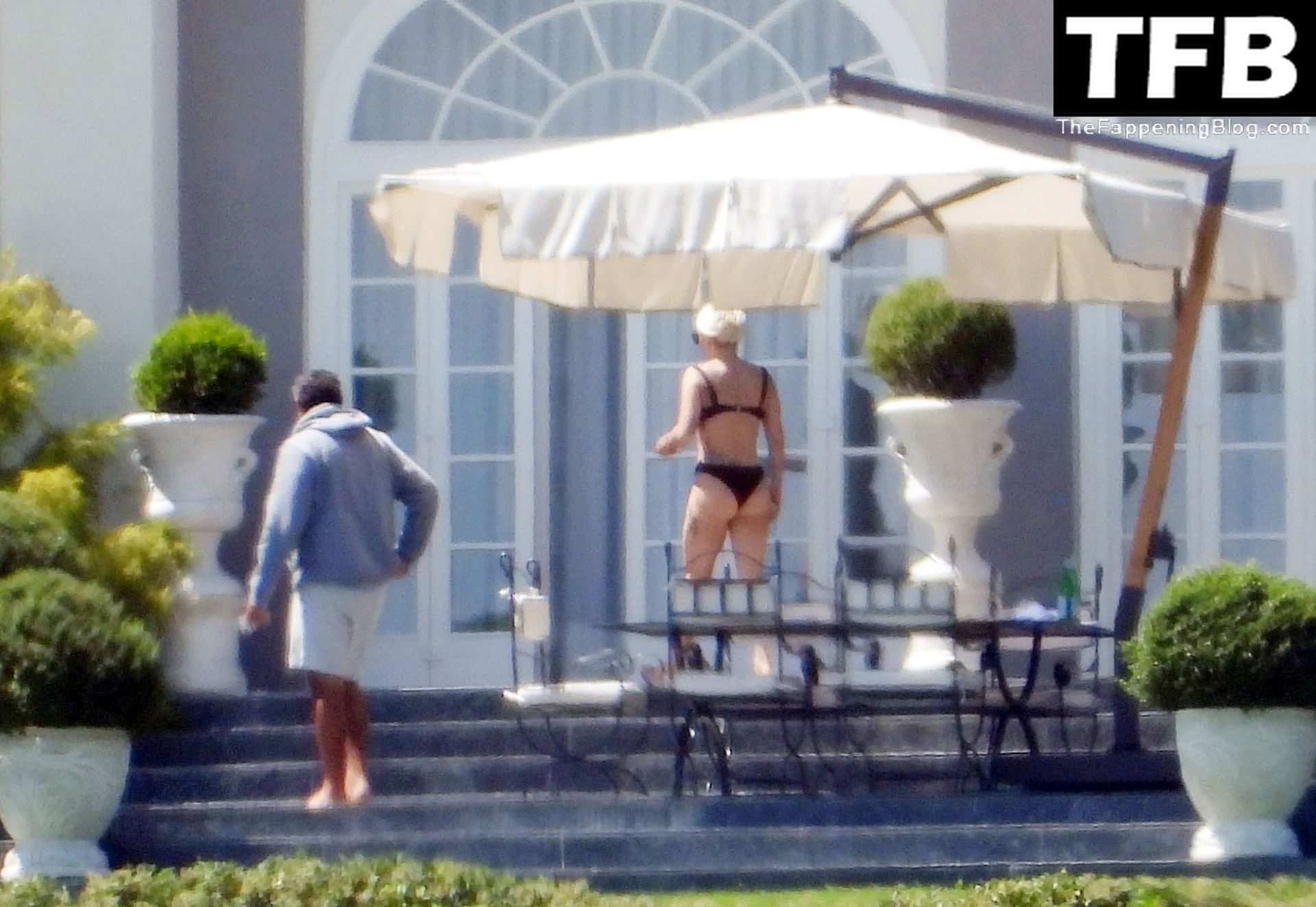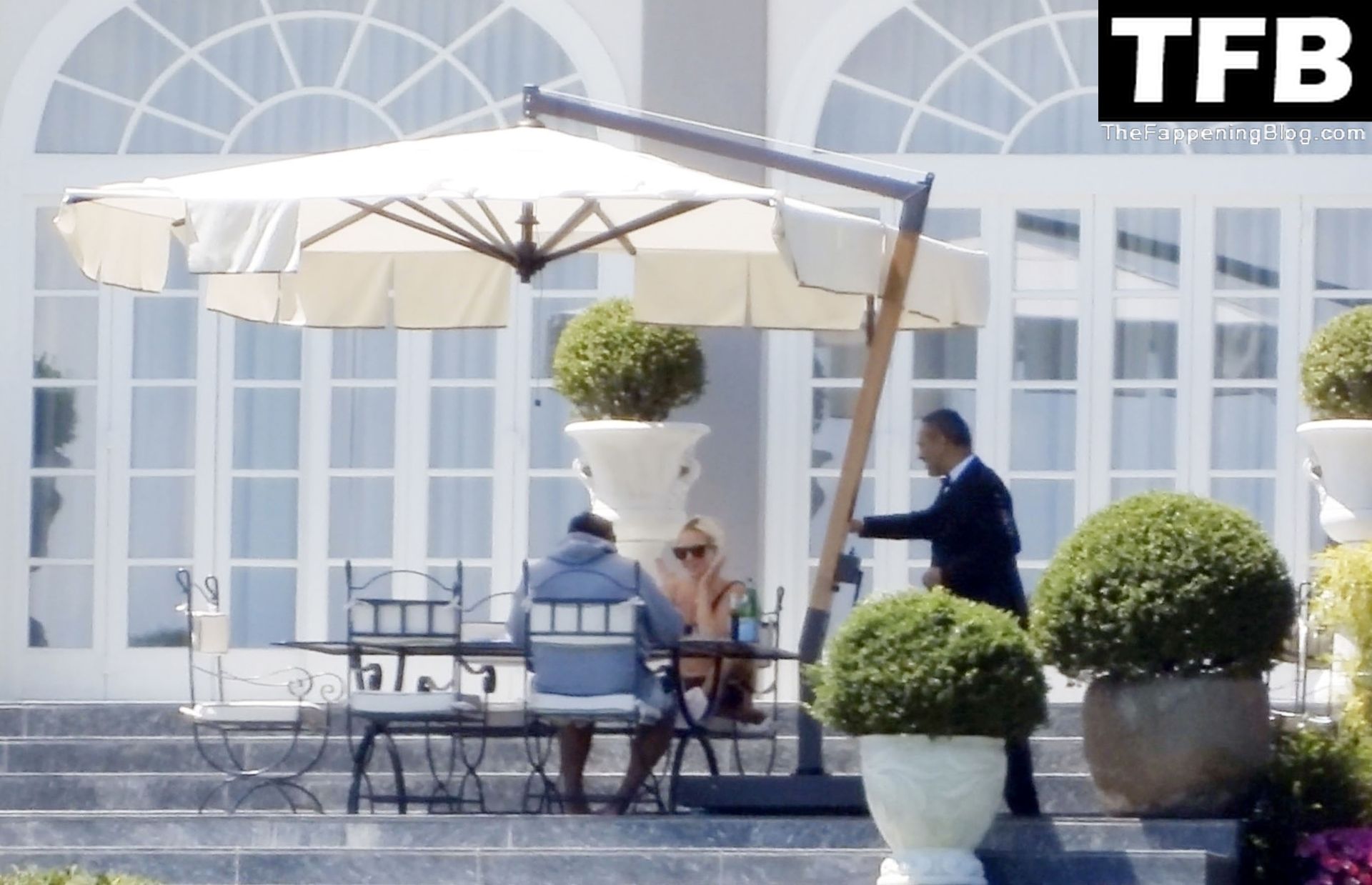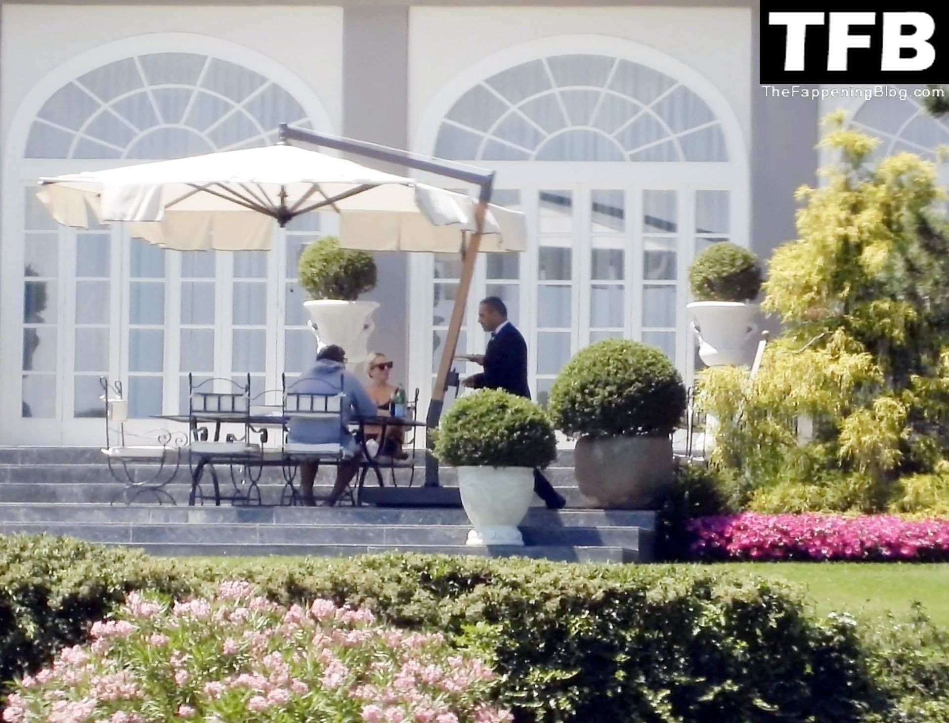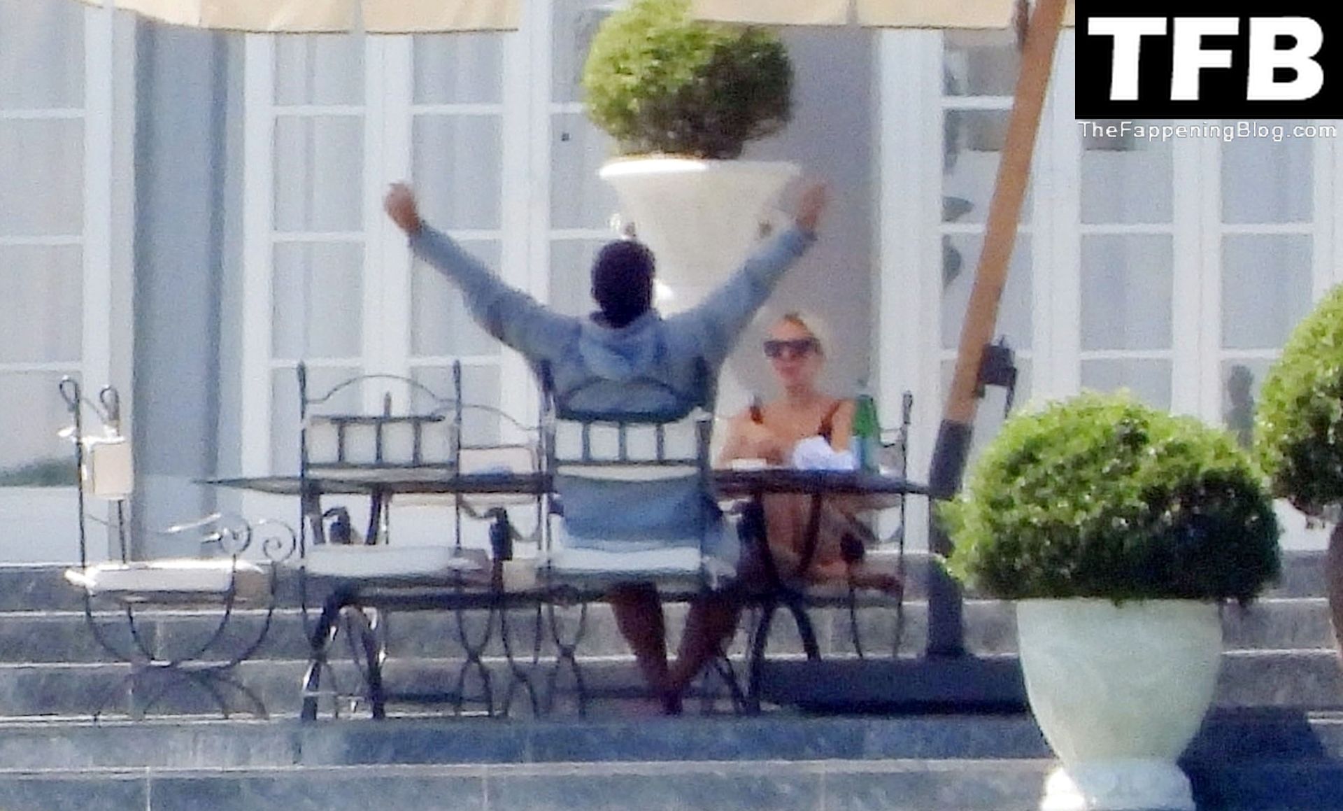 La chanteuse, auteure-compositrice et actrice américaine Lady Gaga, qui a été engagée pour se produire en cadeau surprise (un cadeau d’une valeur de 500 000 €) par l’un des invités au mariage du milliardaire magnat des fonds spéculatifs et donateur Tory Alan Howard, est photographiée en train de prendre son petit-déjeuner à la Villa Bonomi avec son petit ami, entrepreneur et investisseur Michael Polansky, le 25/06/2022.