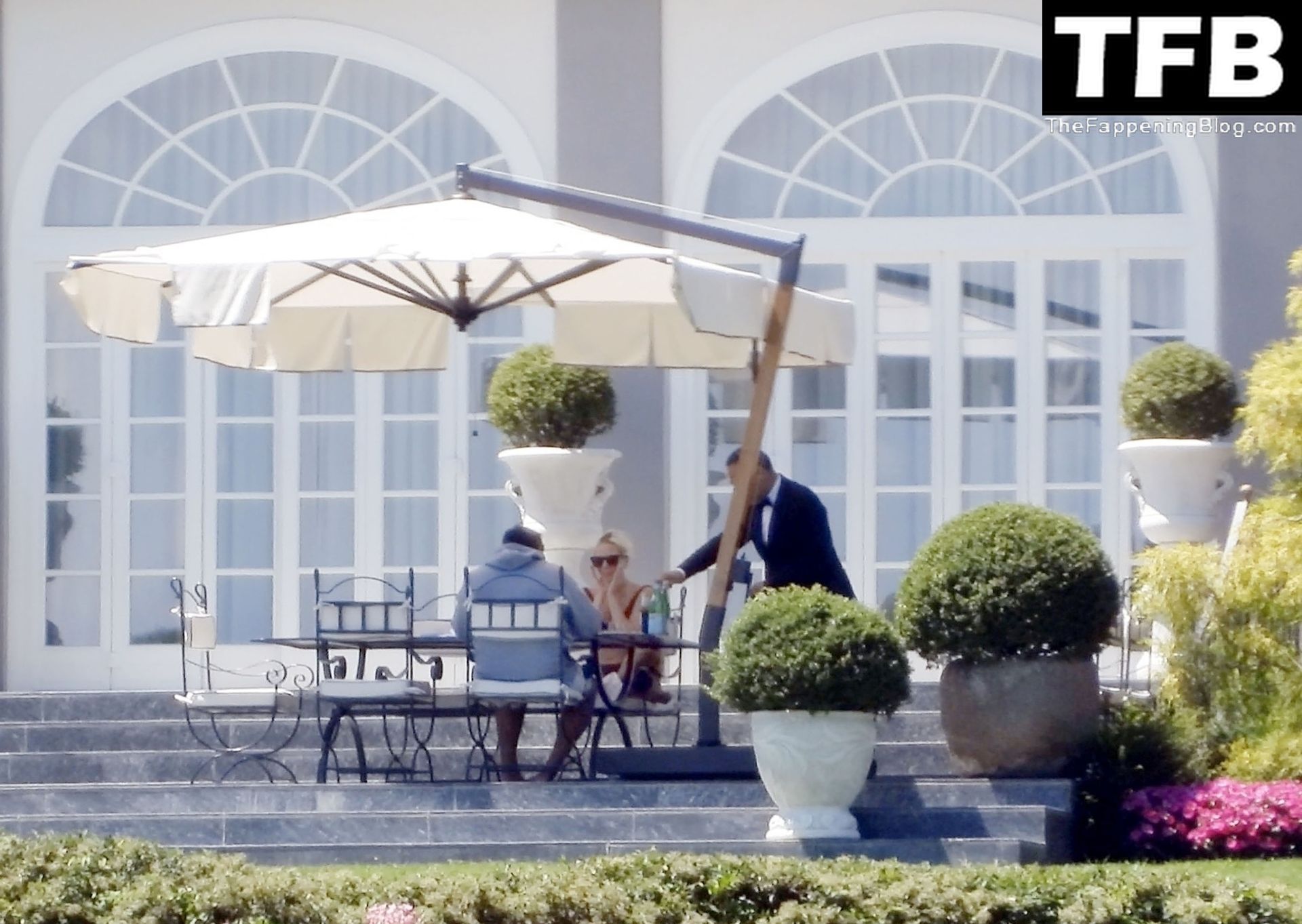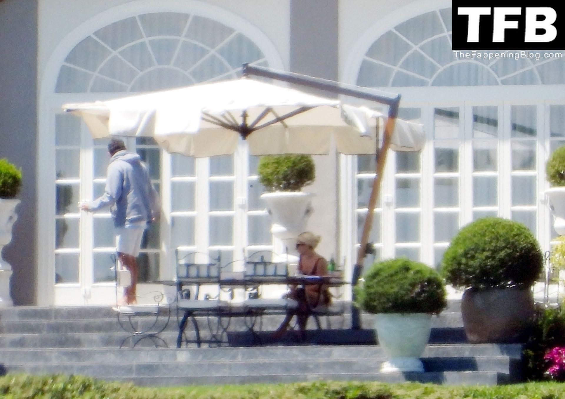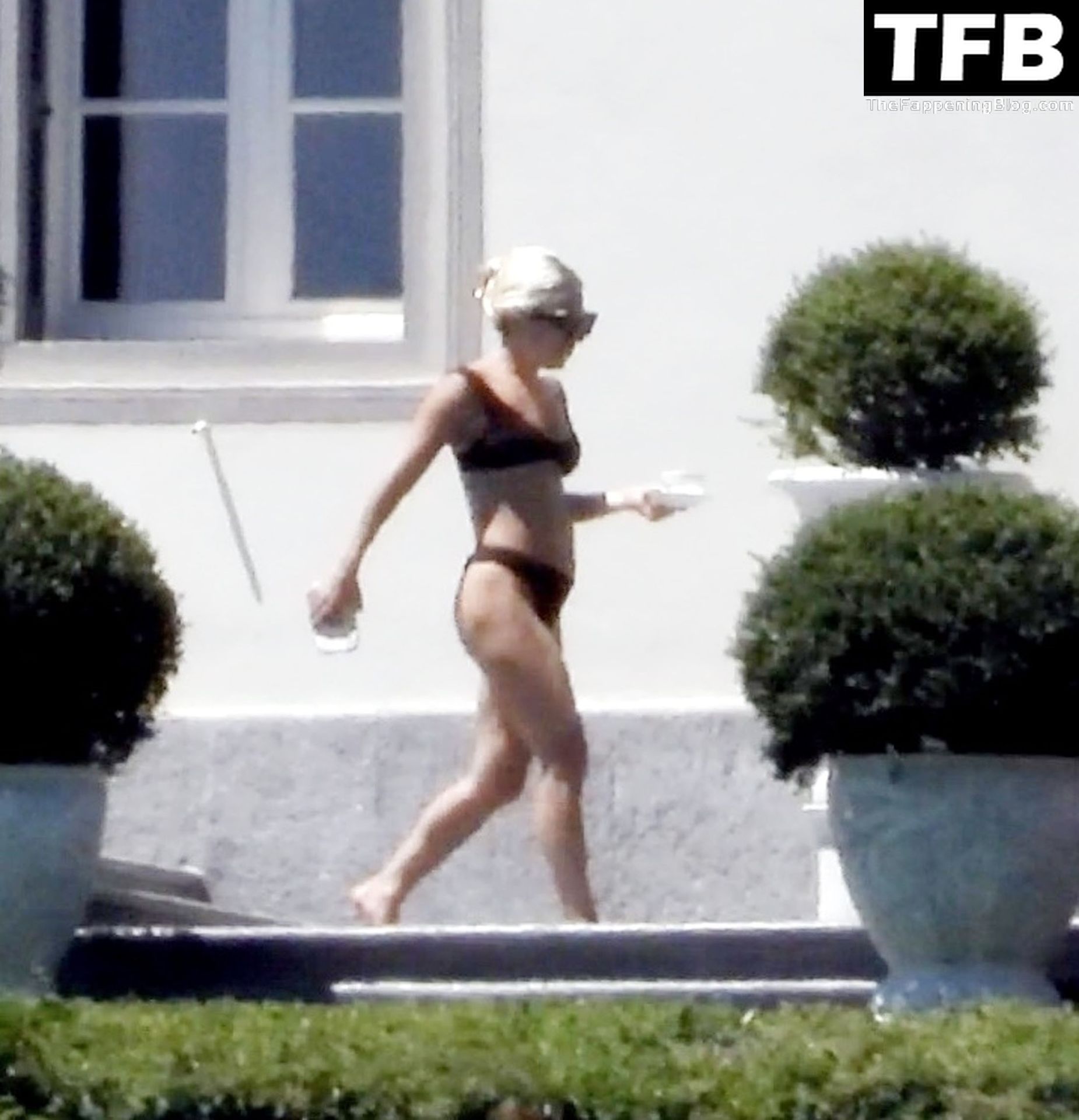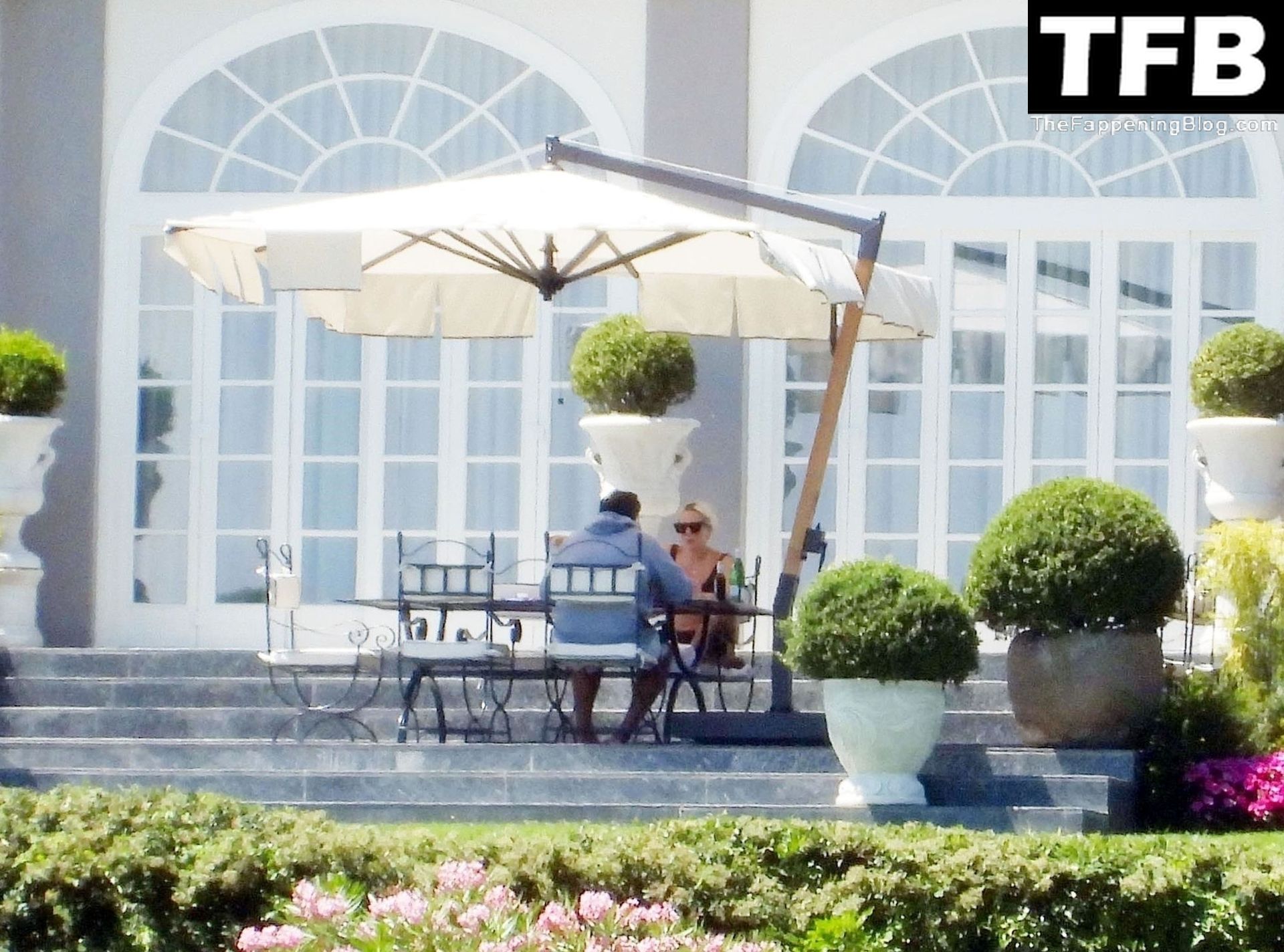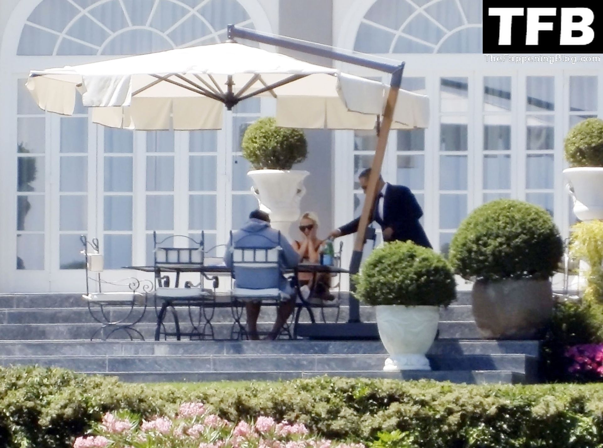 La chanteuse, auteure-compositrice et actrice américaine Lady Gaga, qui a été engagée pour se produire en cadeau surprise (un cadeau d’une valeur de 500 000 €) par l’un des invités au mariage du milliardaire magnat des fonds spéculatifs et donateur Tory Alan Howard, est photographiée en train de prendre son petit-déjeuner à la Villa Bonomi avec son petit ami, entrepreneur et investisseur Michael Polansky, le 25/06/2022.