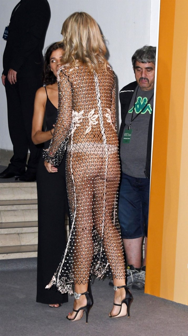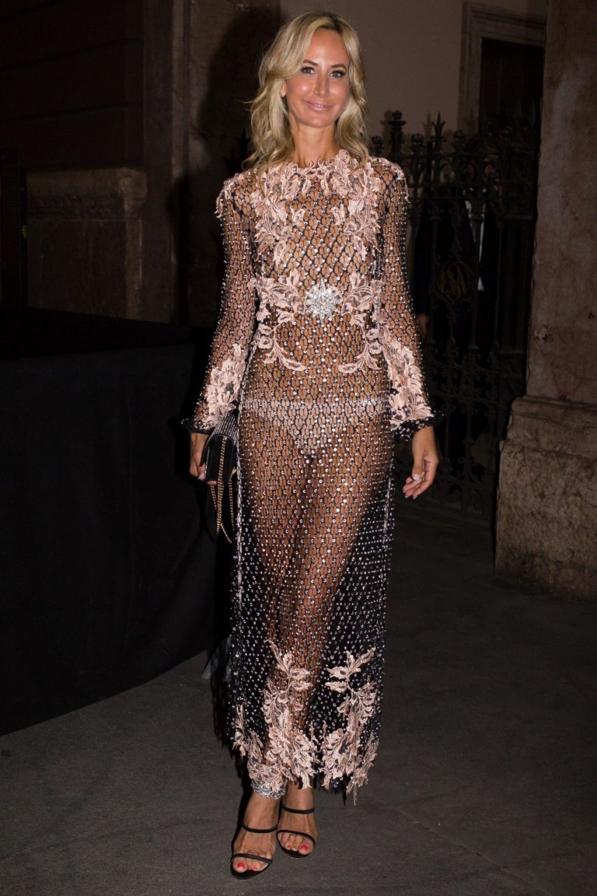 Lady Victoria Hervey (41 ans) défile sur le tapis rouge dans une robe transparente avant le gala amfAR à La Permanente pendant la Fashion Week Printemps/Été 2019 à Milan, Italie, 22/09/2018.