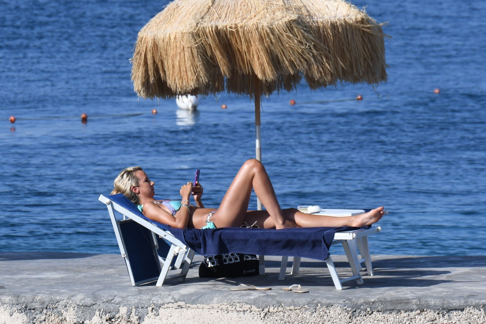 Lady Victoria Hervey est vue en bikini à l’Hôtel Regina Isabella lors de vacances à Ischia, le 21/07/2018. La blonde de 41 ans a exhibé son corps mince devant les paparazzis.