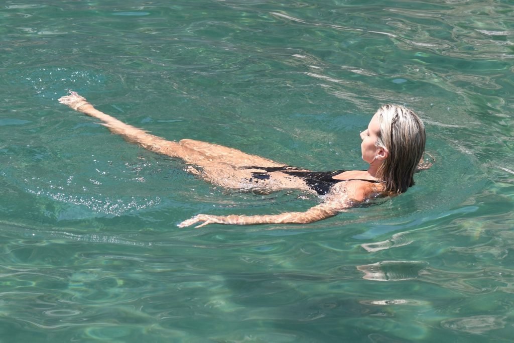 Lady Victoria Hervey a été vue en monokini noir à l’Hôtel Regina Isabella à Ischia, Italie, le 19/07/2018.