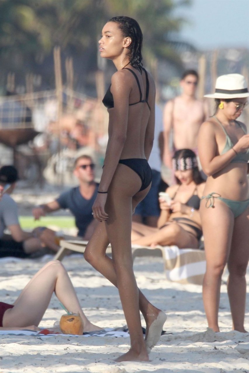 Le mannequin de Victoria’s Secret Lameka Fox (20 ans) a été vue exhibant sa silhouette mince et impeccable alors qu’elle allait nager dans l’océan pendant ses vacances à Tulum, au Mexique, le 13/01/2019.