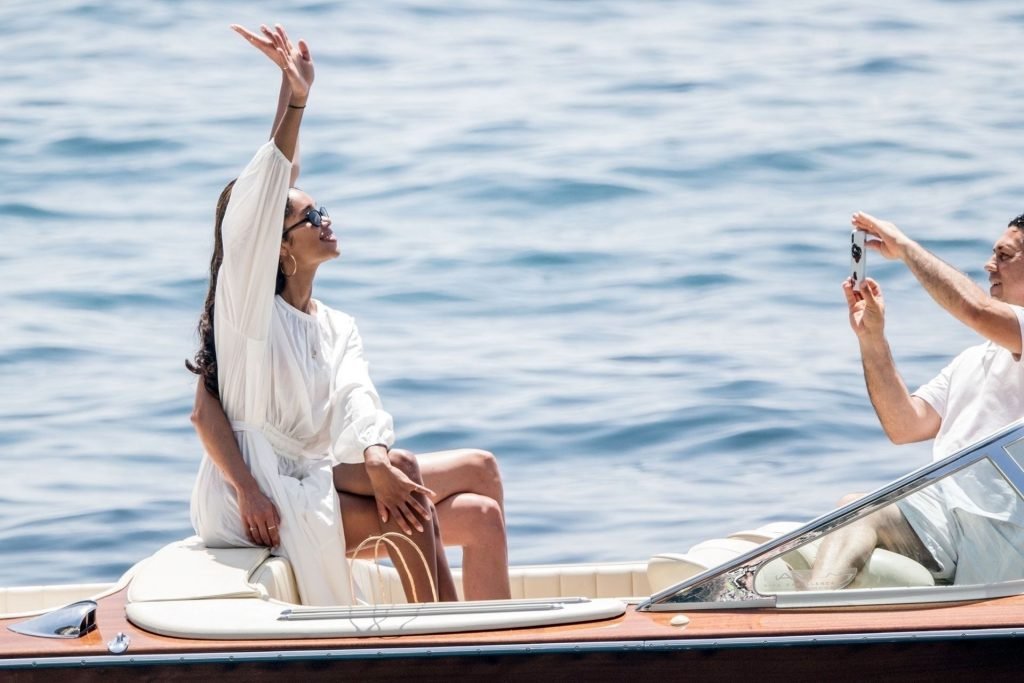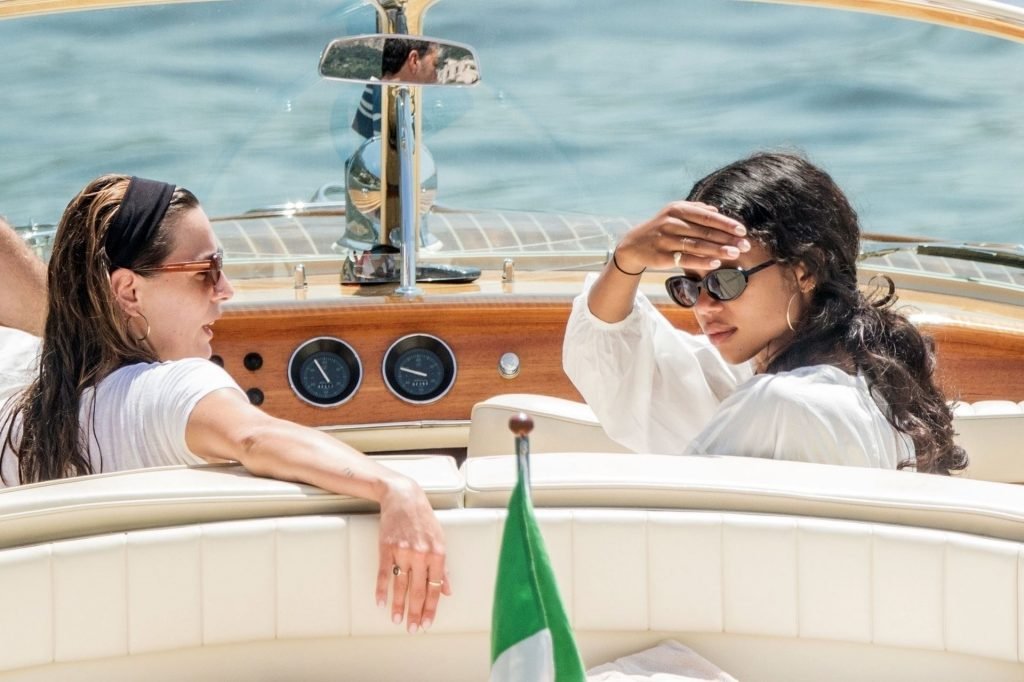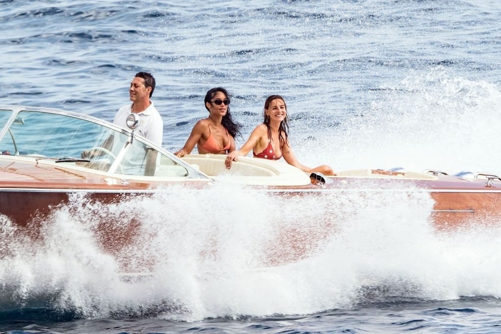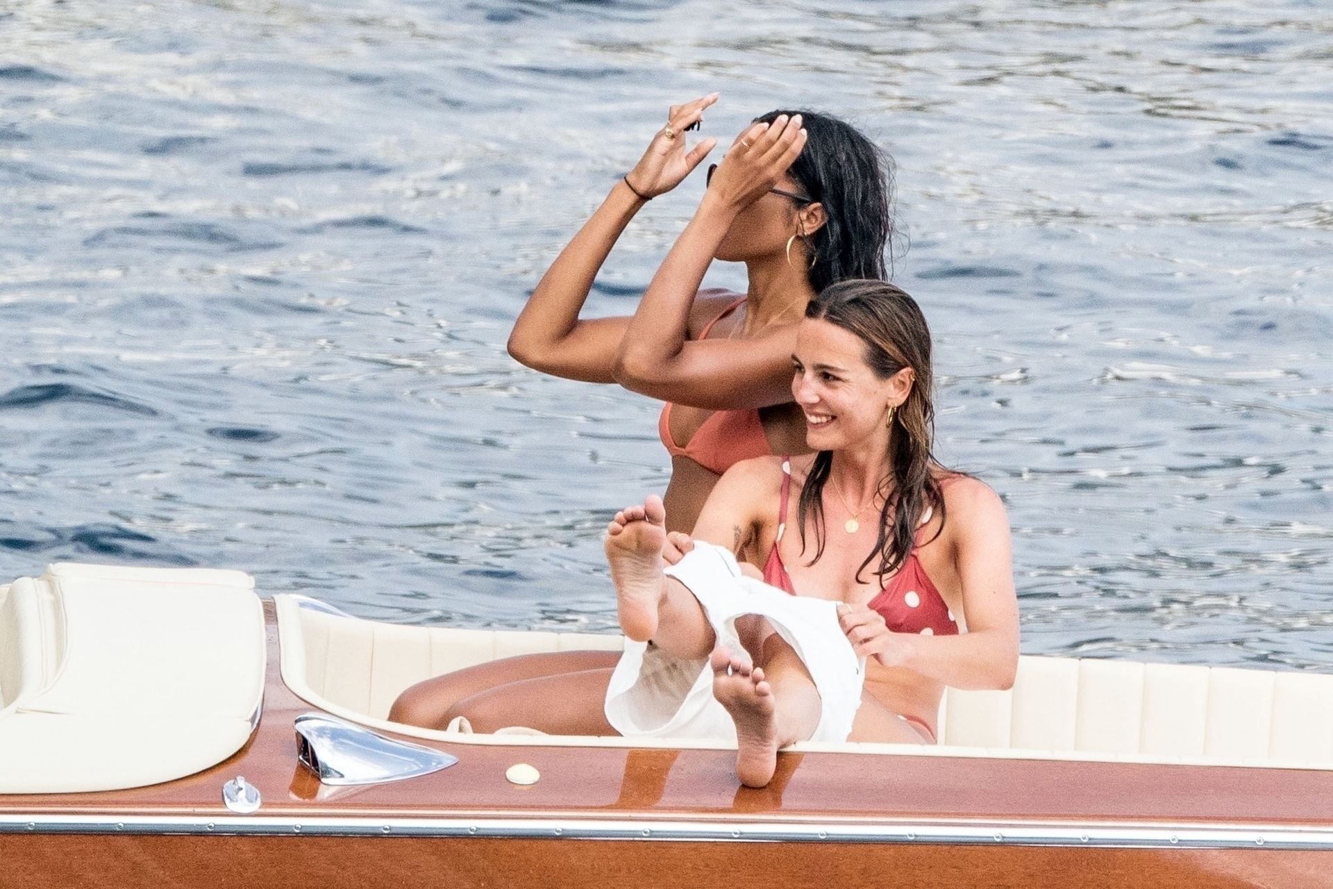 “Spider-Man : Homecoming” l’actrice Laura Harrier et Eleonore Toulin ont été photographiées en train de passer un excellent moment lors d’une promenade en bateau pendant leurs vacances à Positano, le 17/06/2019.