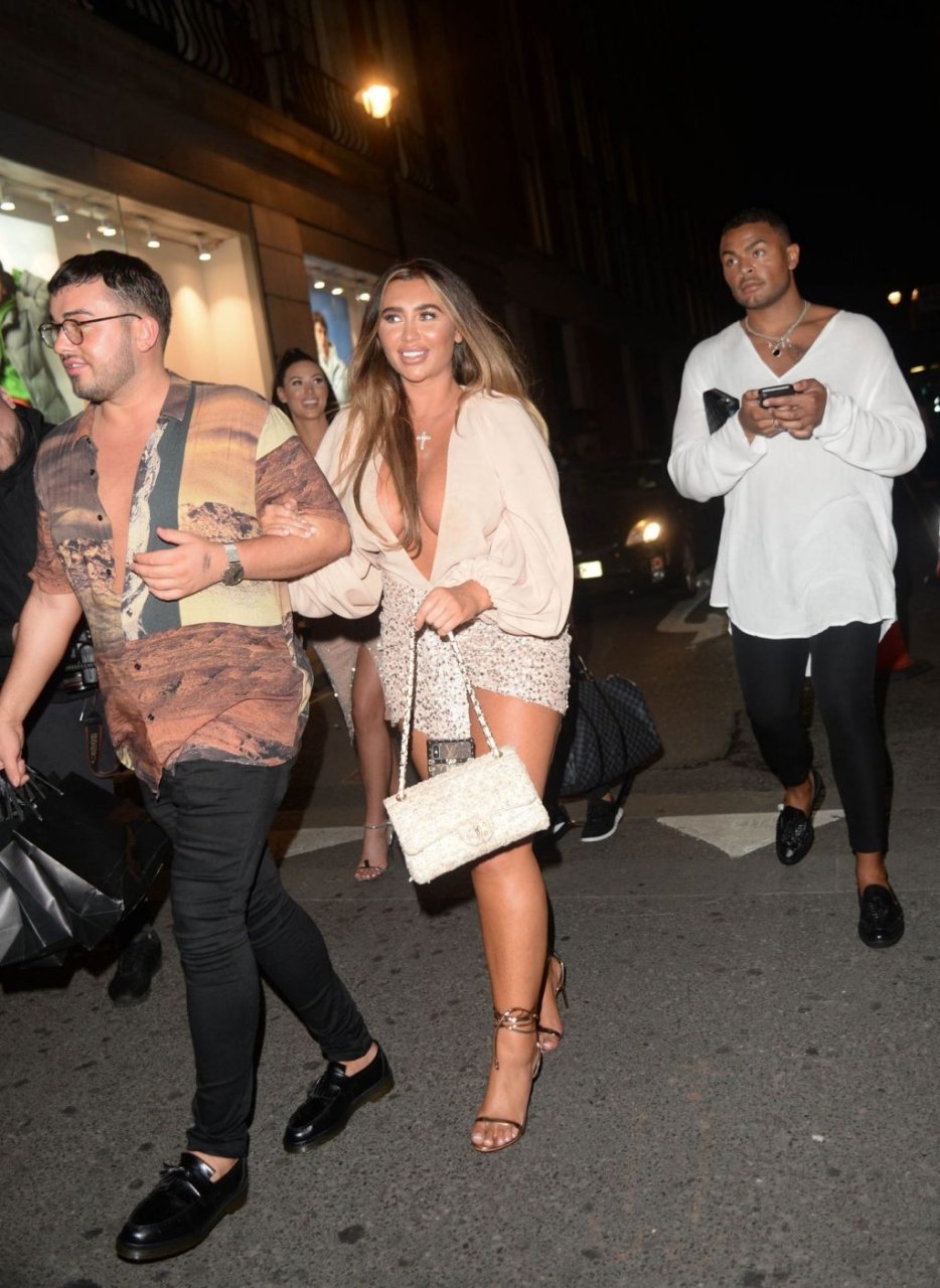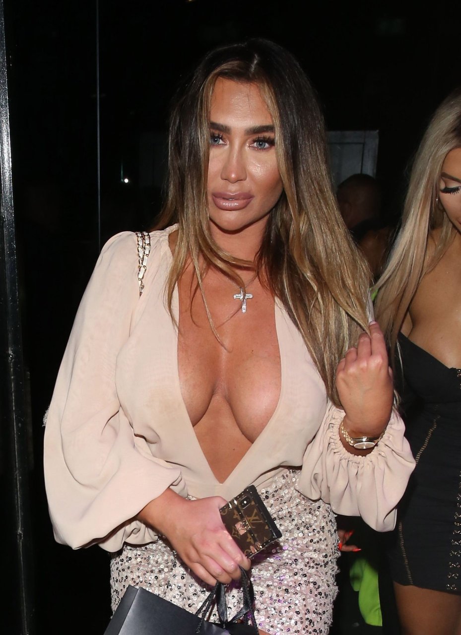La personnalité de la télévision anglaise Lauren Goodger exhibe son profond décolleté et ses jambes sexy lors de la fête de clôture de Celebs Go Dating à Londres, 08/07/2019.