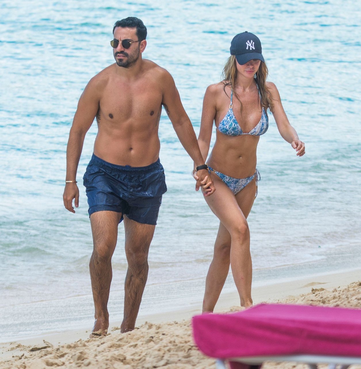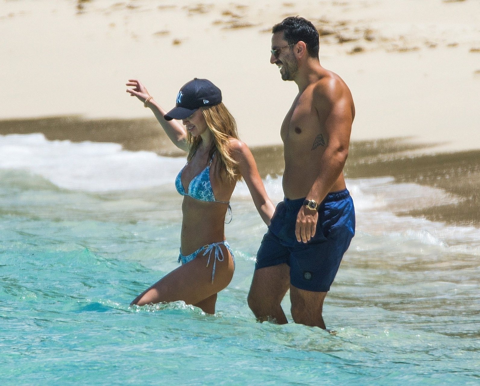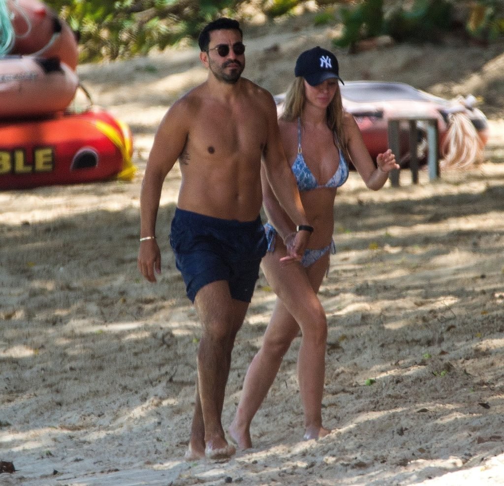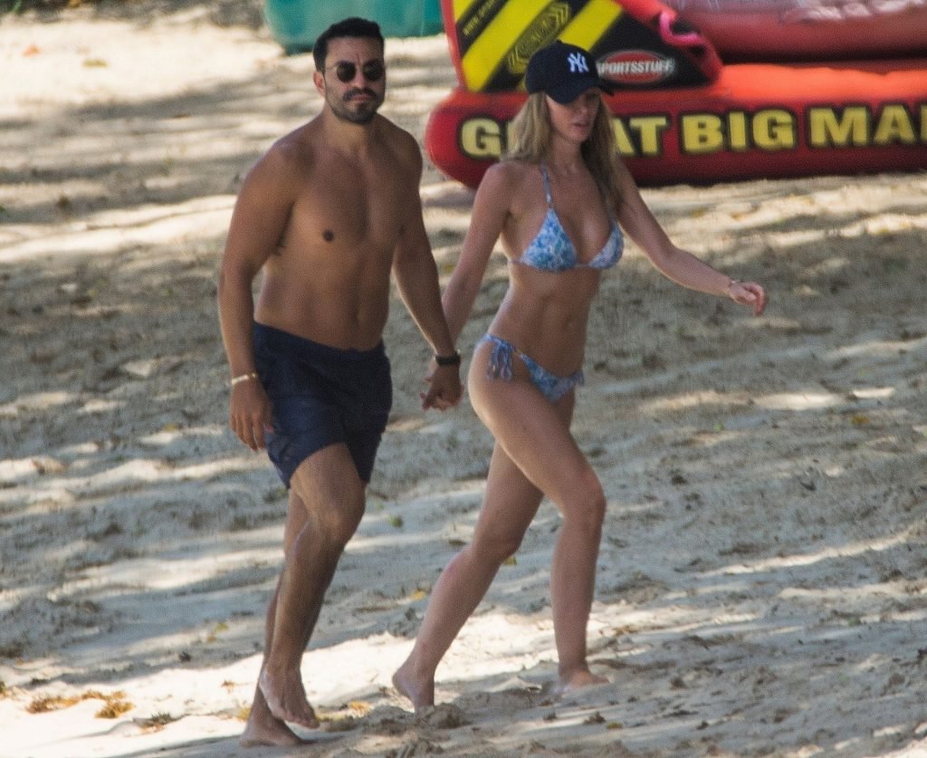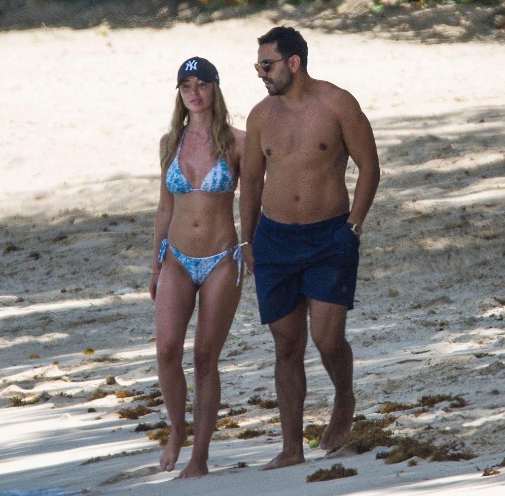 Lauren Pope de TOWIE et son petit ami millionnaire Tony Keterman affichent leur amour sur la plage de St. James Parish, à la Barbade, le 08/08/2019.