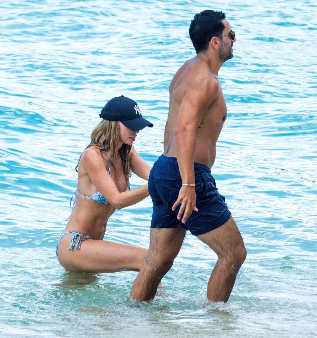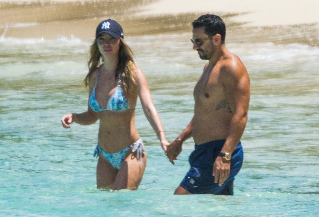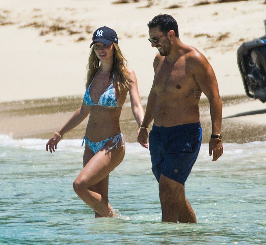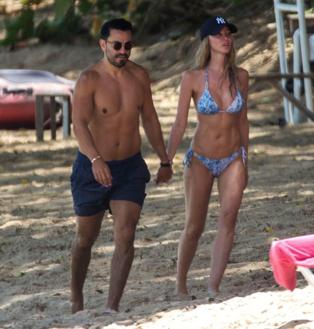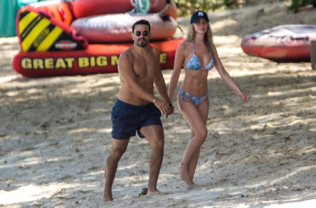 Lauren Pope de TOWIE et son petit ami millionnaire Tony Keterman affichent leur amour sur la plage de St. James Parish, à la Barbade, le 08/08/2019.