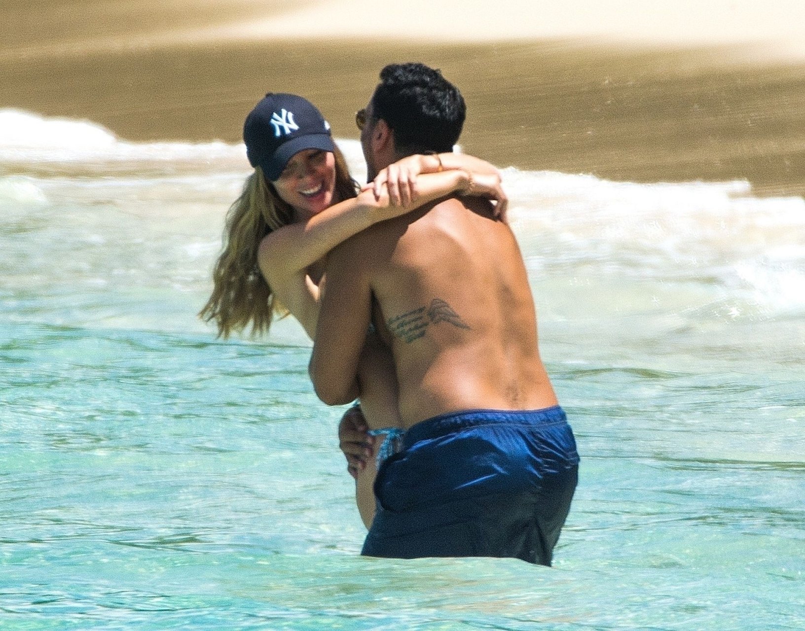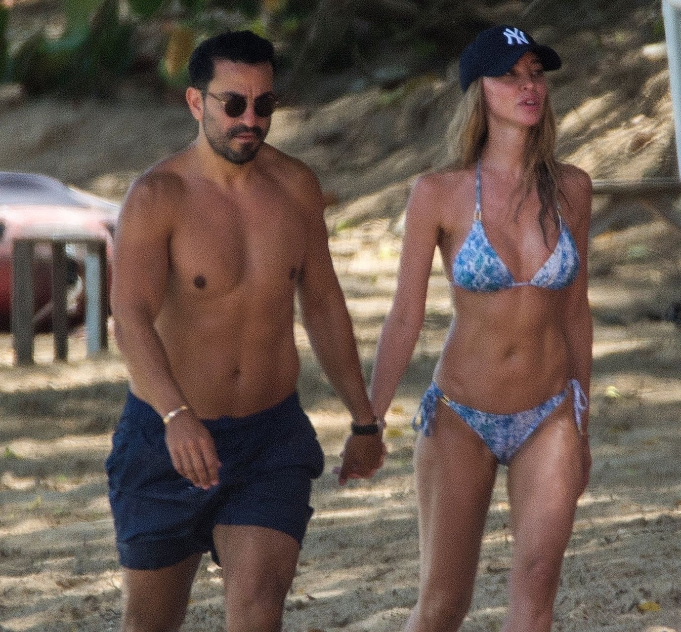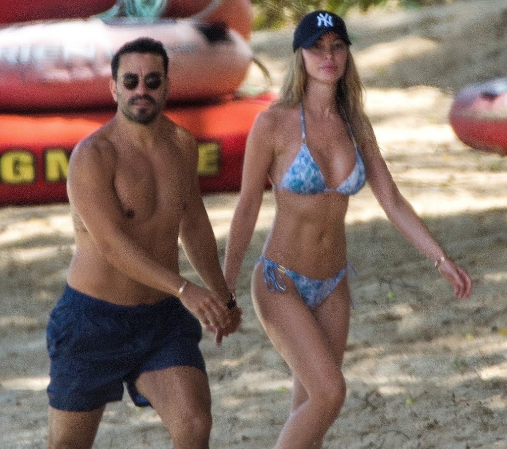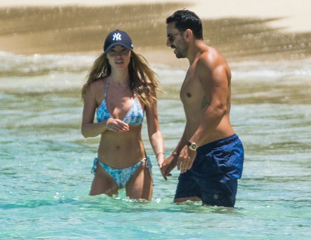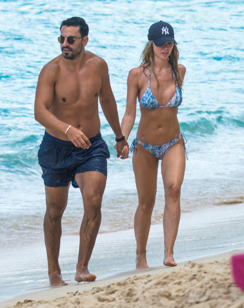 Lauren Pope de TOWIE et son petit ami millionnaire Tony Keterman affichent leur amour sur la plage de St. James Parish, à la Barbade, le 08/08/2019.