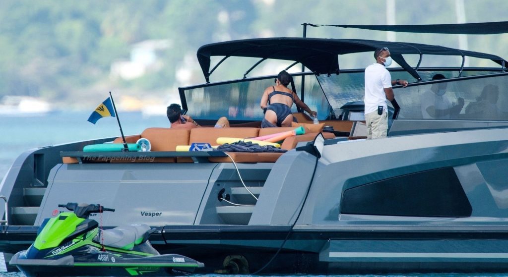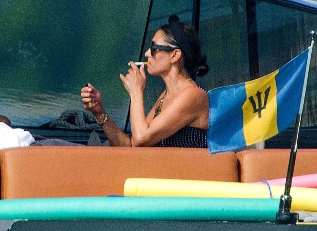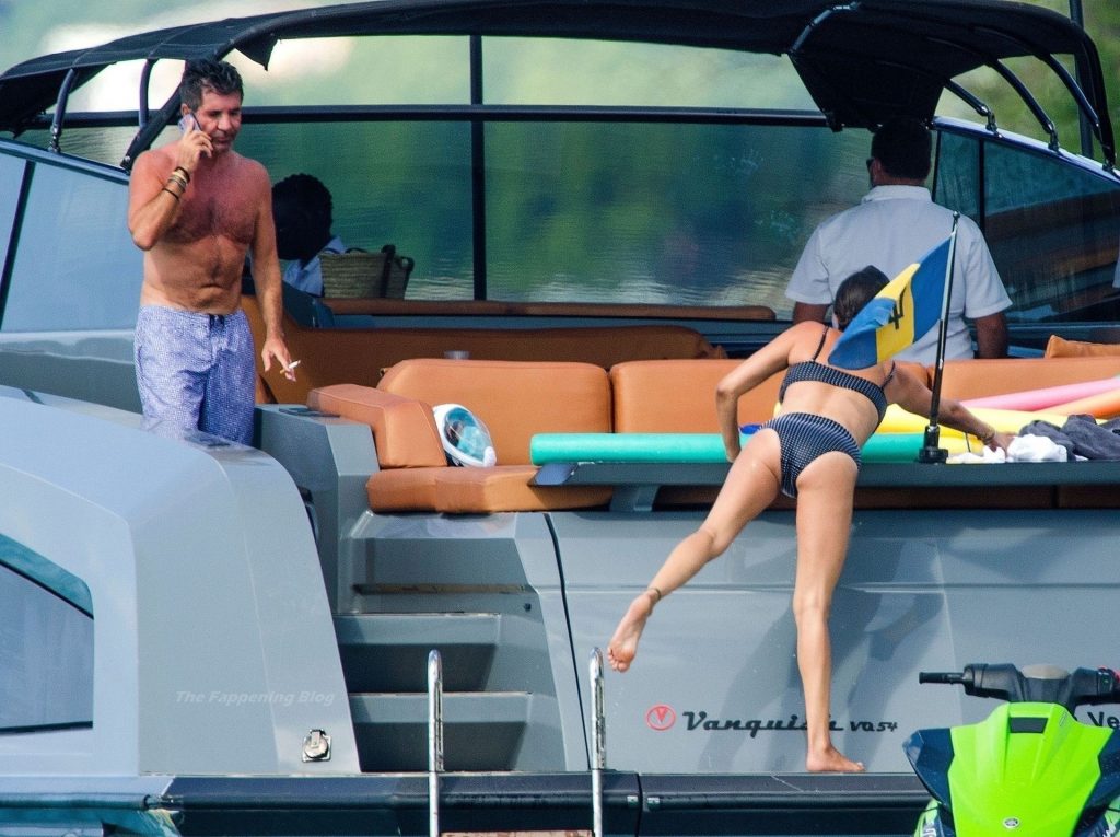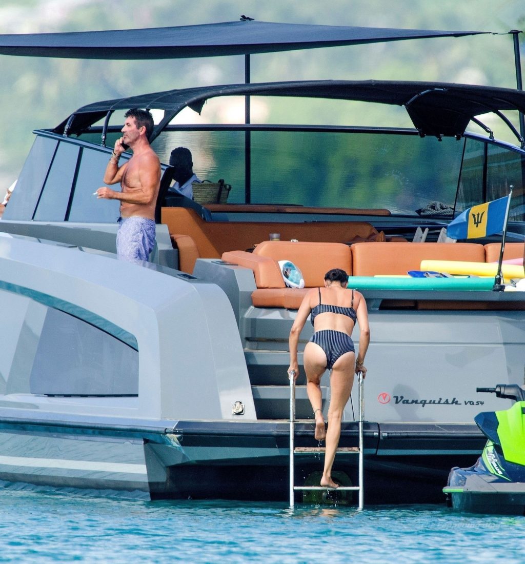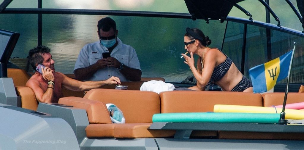 Simon s’est assuré de s’amuser pendant sa pause en attrapant quelques vagues sur son jet ski avec sa partenaire Lauren Silverman, qui se détend avec une cigarette à la bouche, mettant en valeur sa silhouette élégante dans son petit bikini minimaliste.