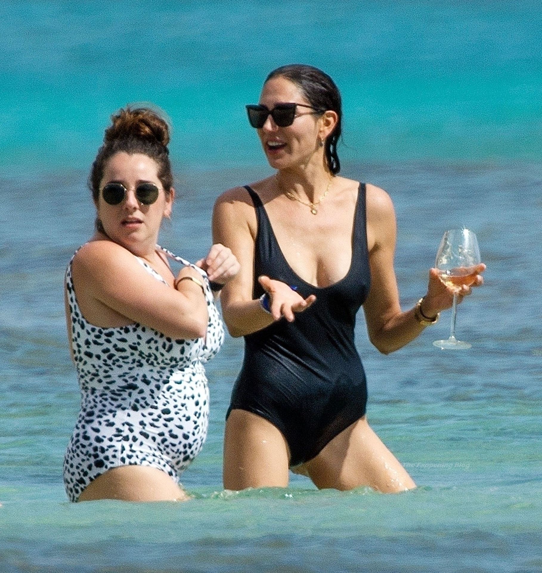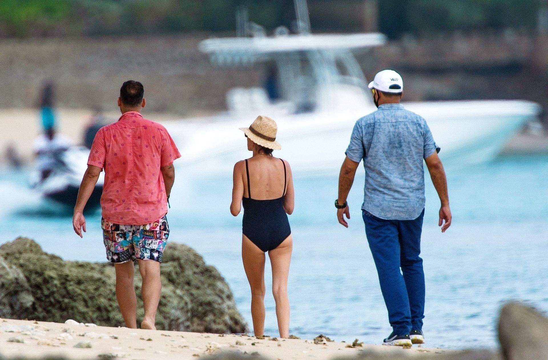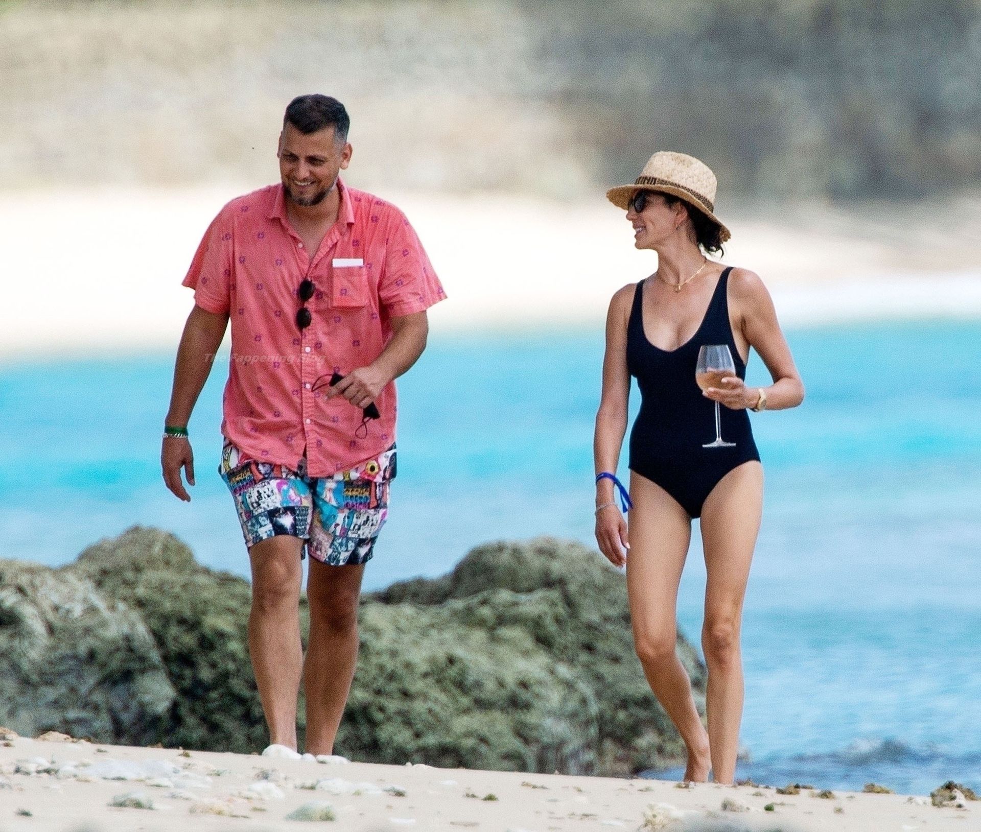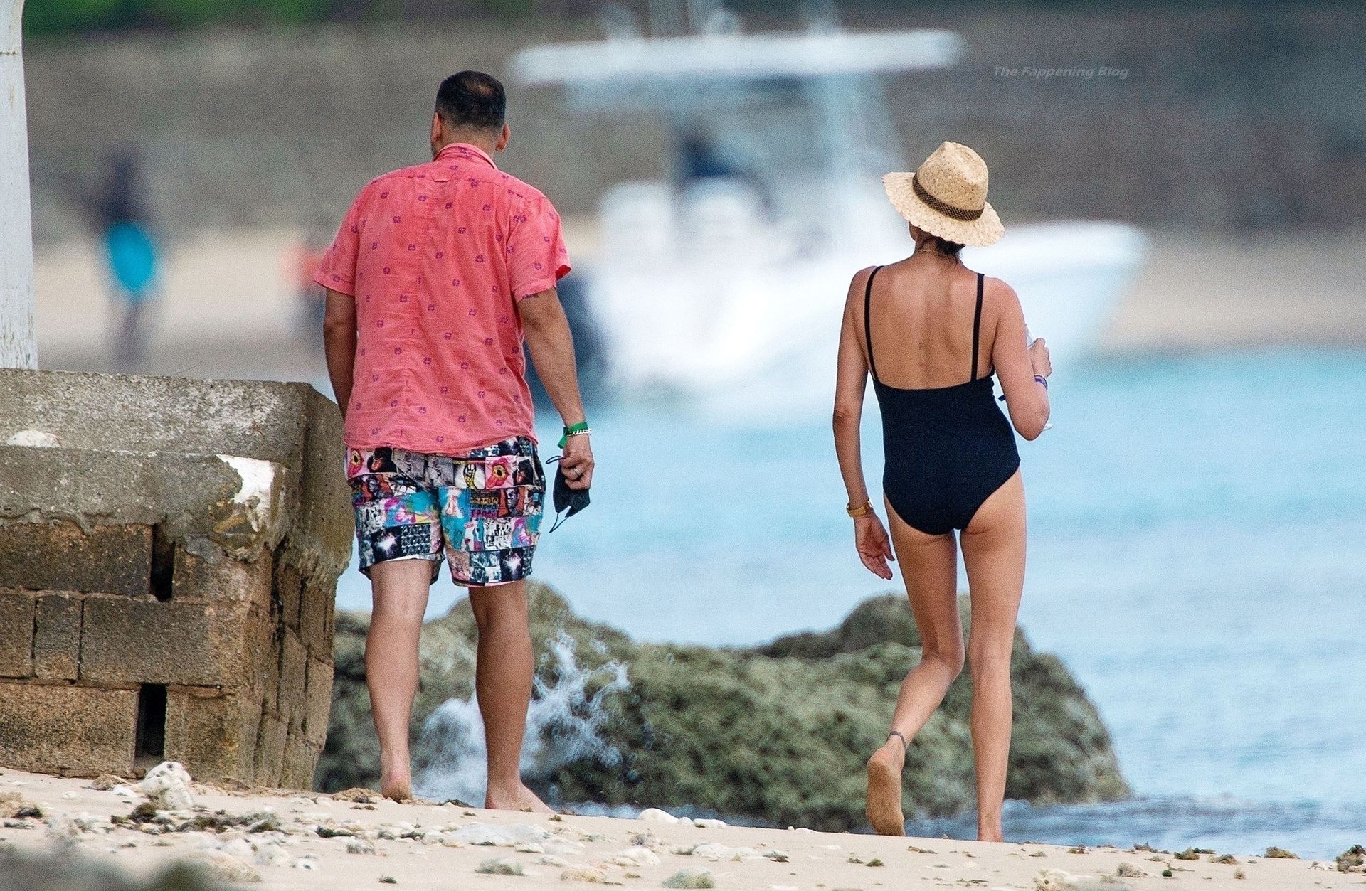 Avec un verre à la main, portant son chapeau de paille Valentino et des lunettes de soleil foncées, Lauren dégageait un sex-appeal évident lors de sa promenade sur la plage, accompagnée d’un bain de mer, vêtue de son séduisant maillot de bain noir, mettant en valeur son physique tonique et une possible perte de poids.