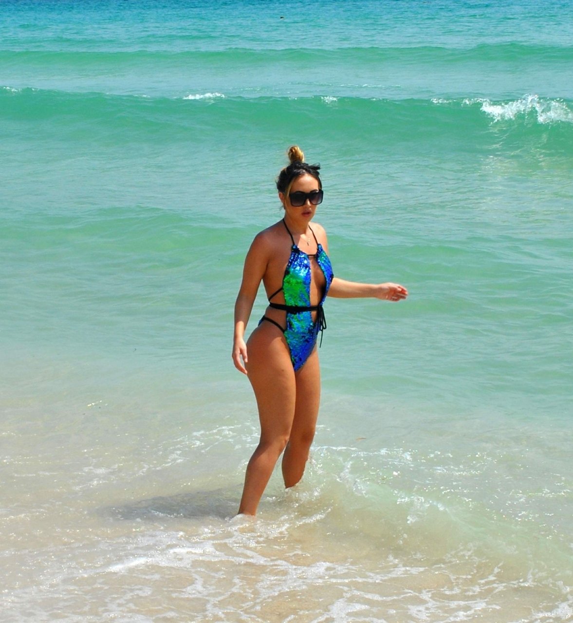 La star de la télévision Lauryn Goodman profite de ses vacances à la plage au Cap-Vert, 02/03/2018.
