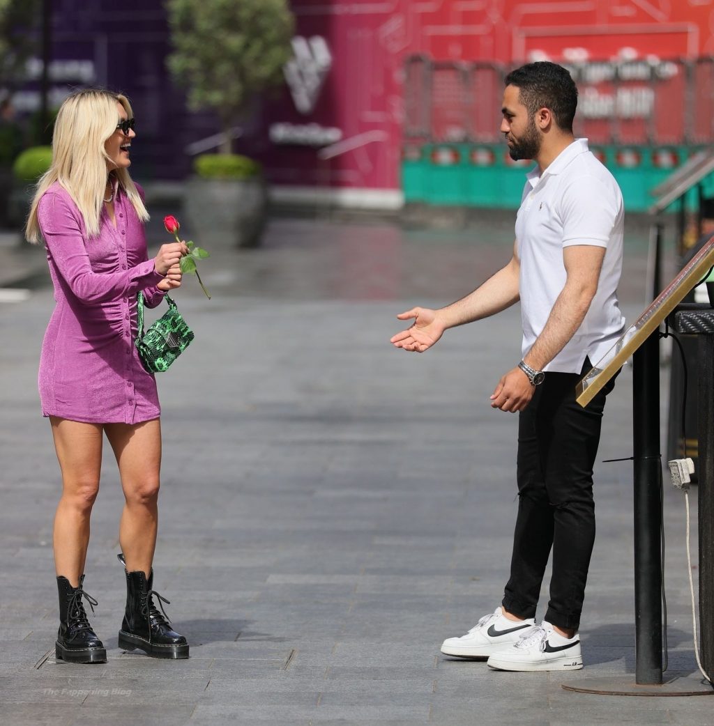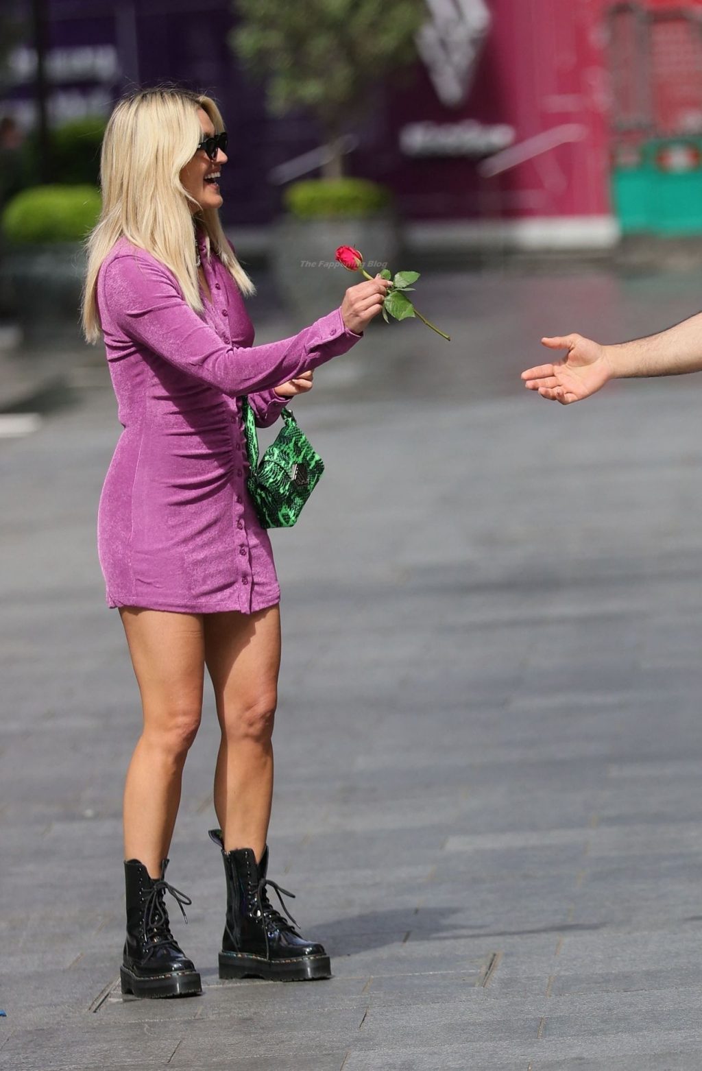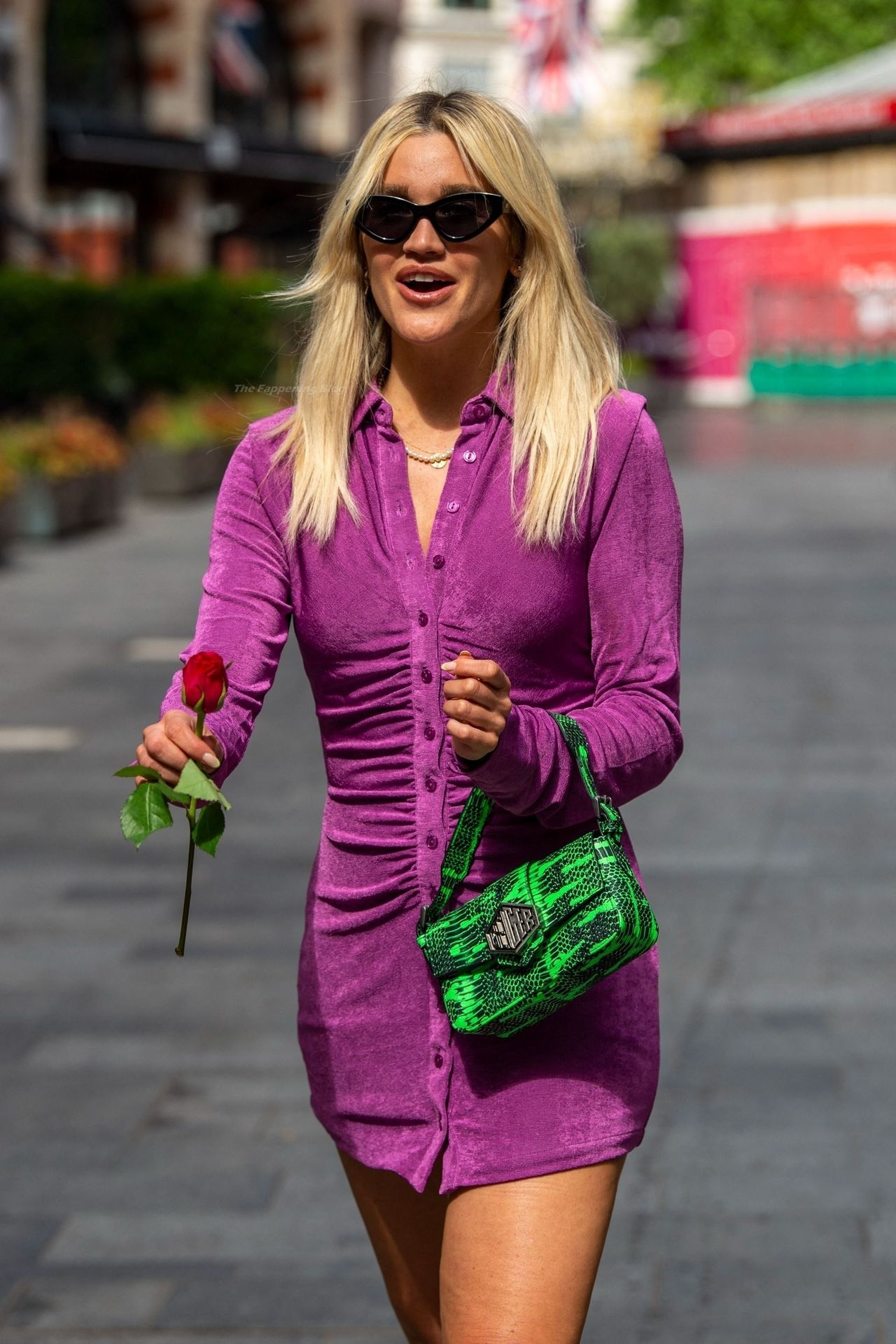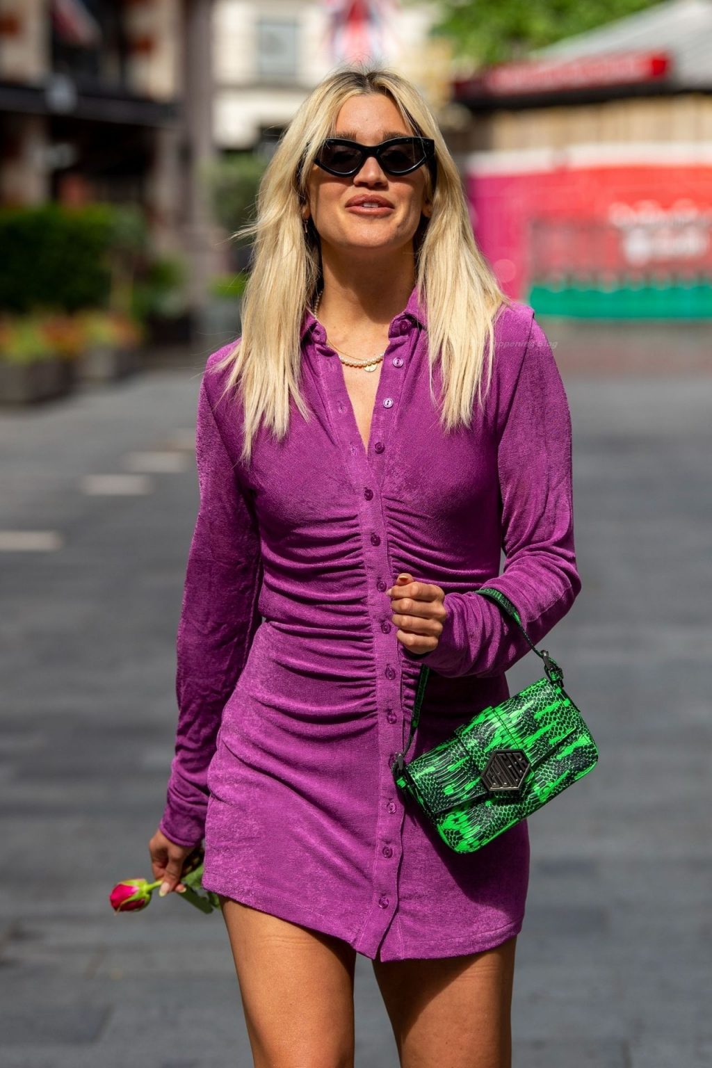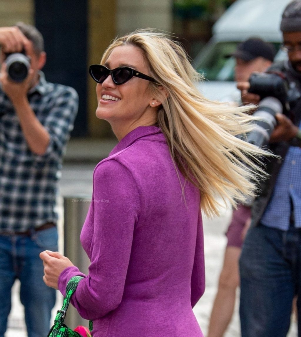 La présentatrice radio et ancienne Pussycat Doll Ashley Roberts est photographiée portant une magnifique mini robe violette avec des Dr. Martens et un sac à motif serpent vert vif alors qu’elle se dirige vers les studios de Heart Radio à Londres, le 07/06/2021.